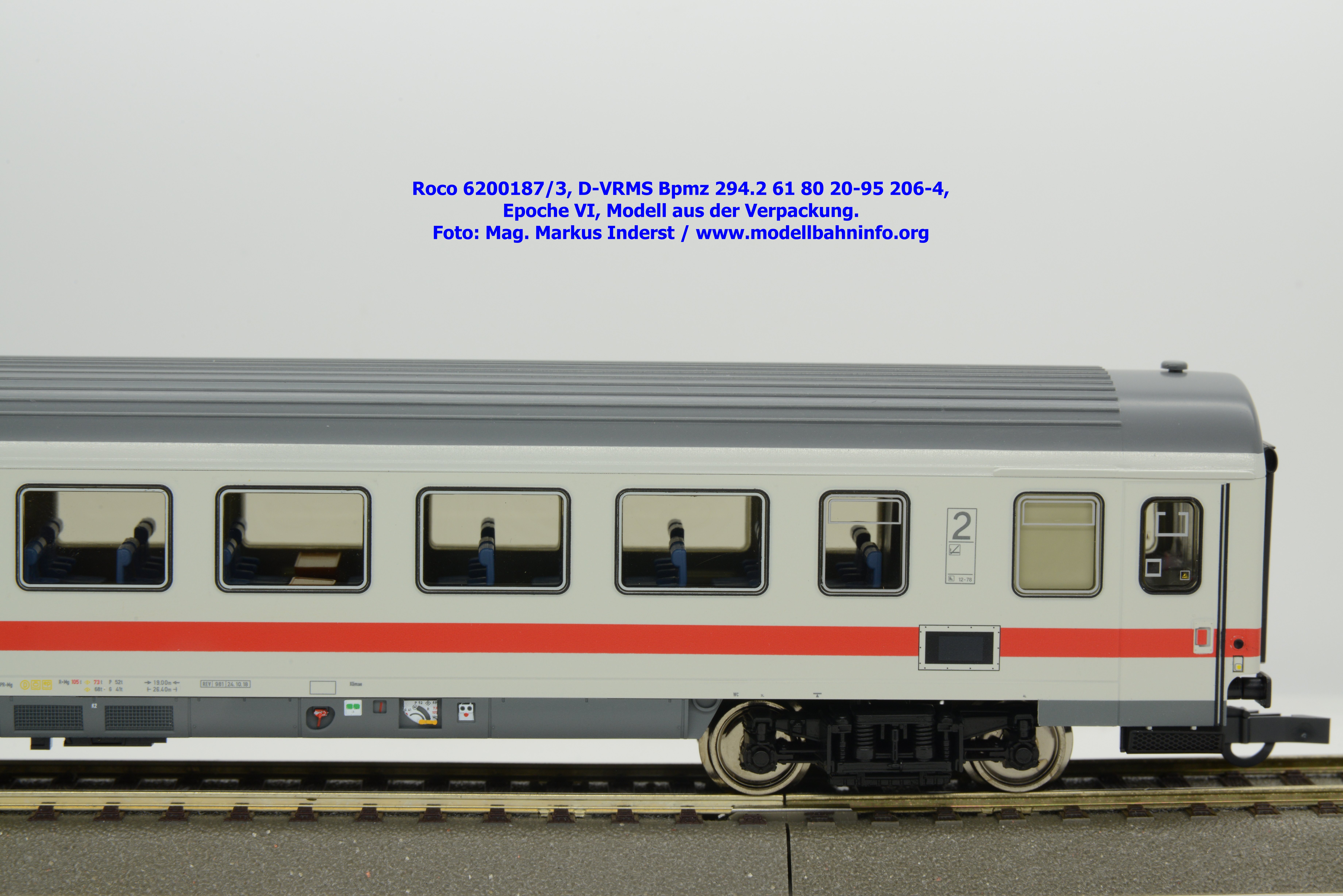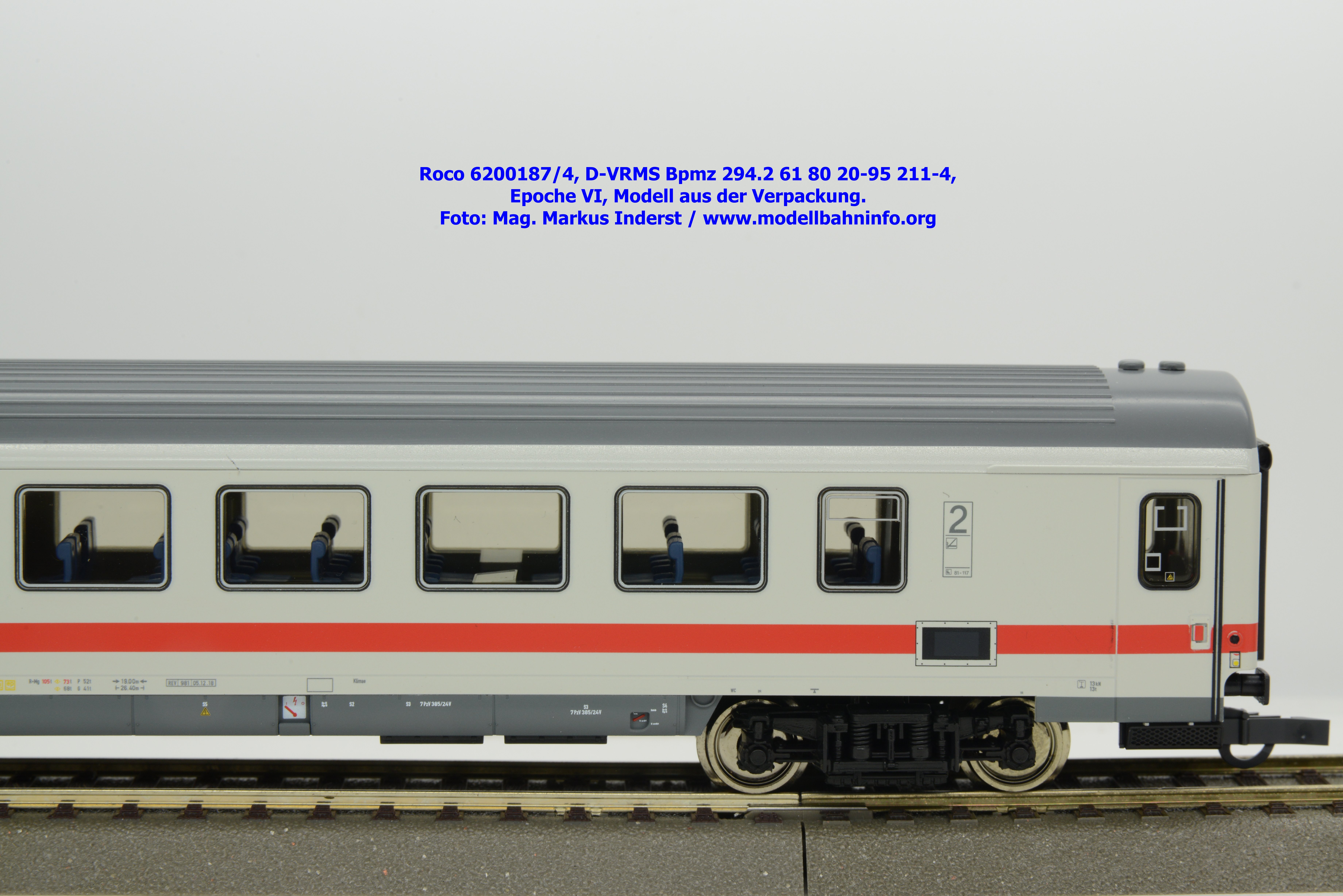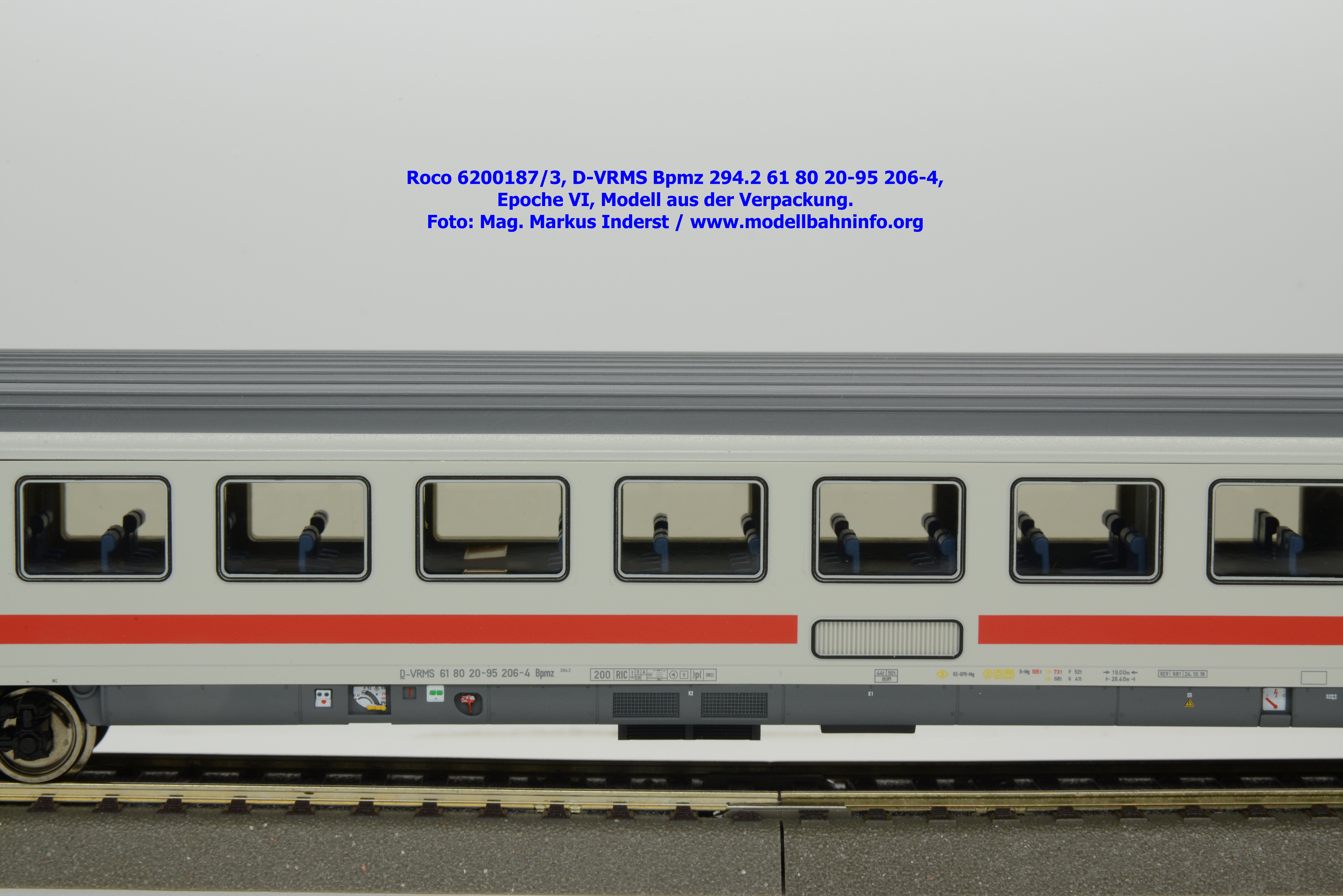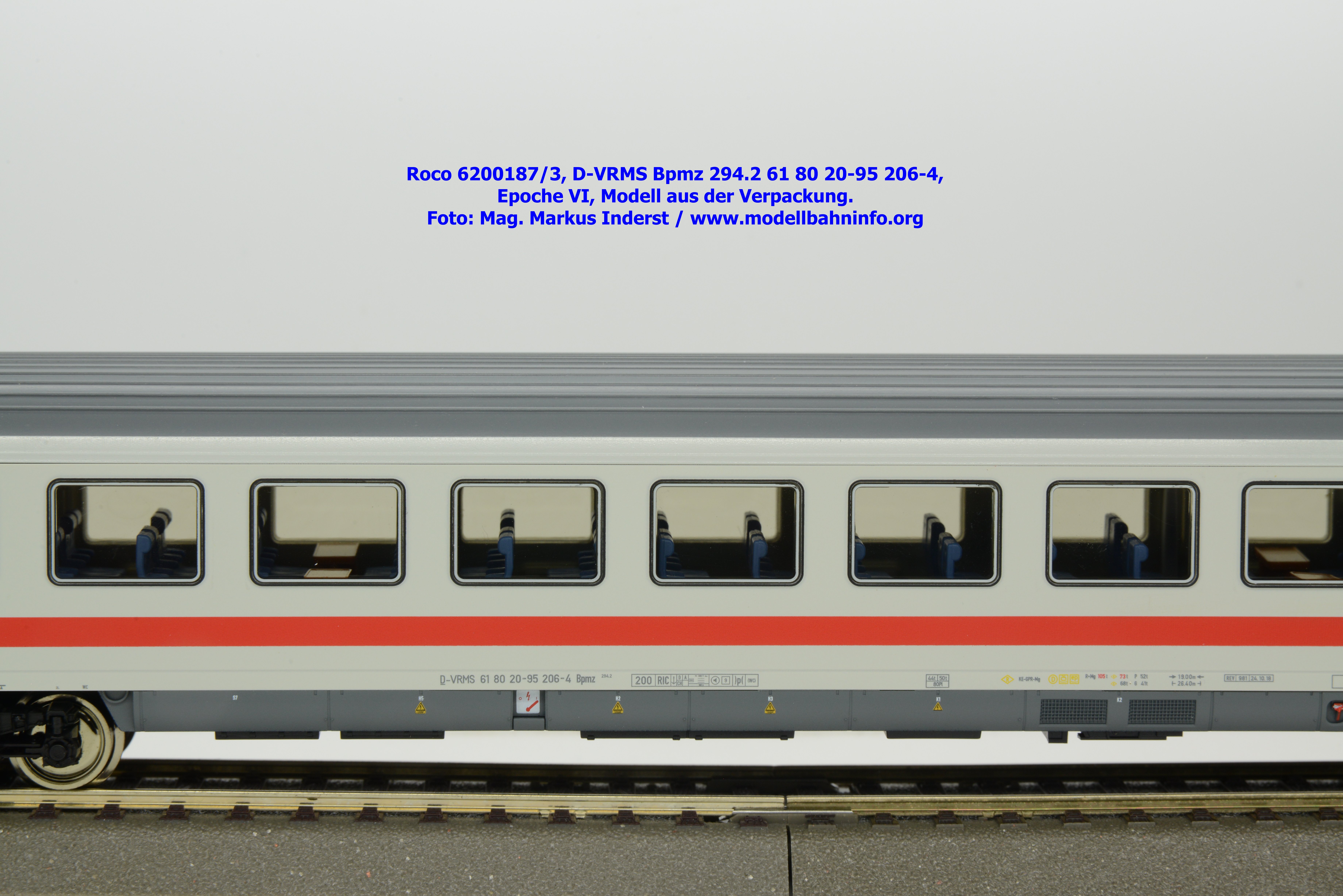 Dieses Modell unterscheidet sich lediglich nur die geänderte Wagenanschrift D-VRMS 61 80 20-95 206-4 und den angeschriebenen Untersuchungsdaten REV 981 24.10.18.