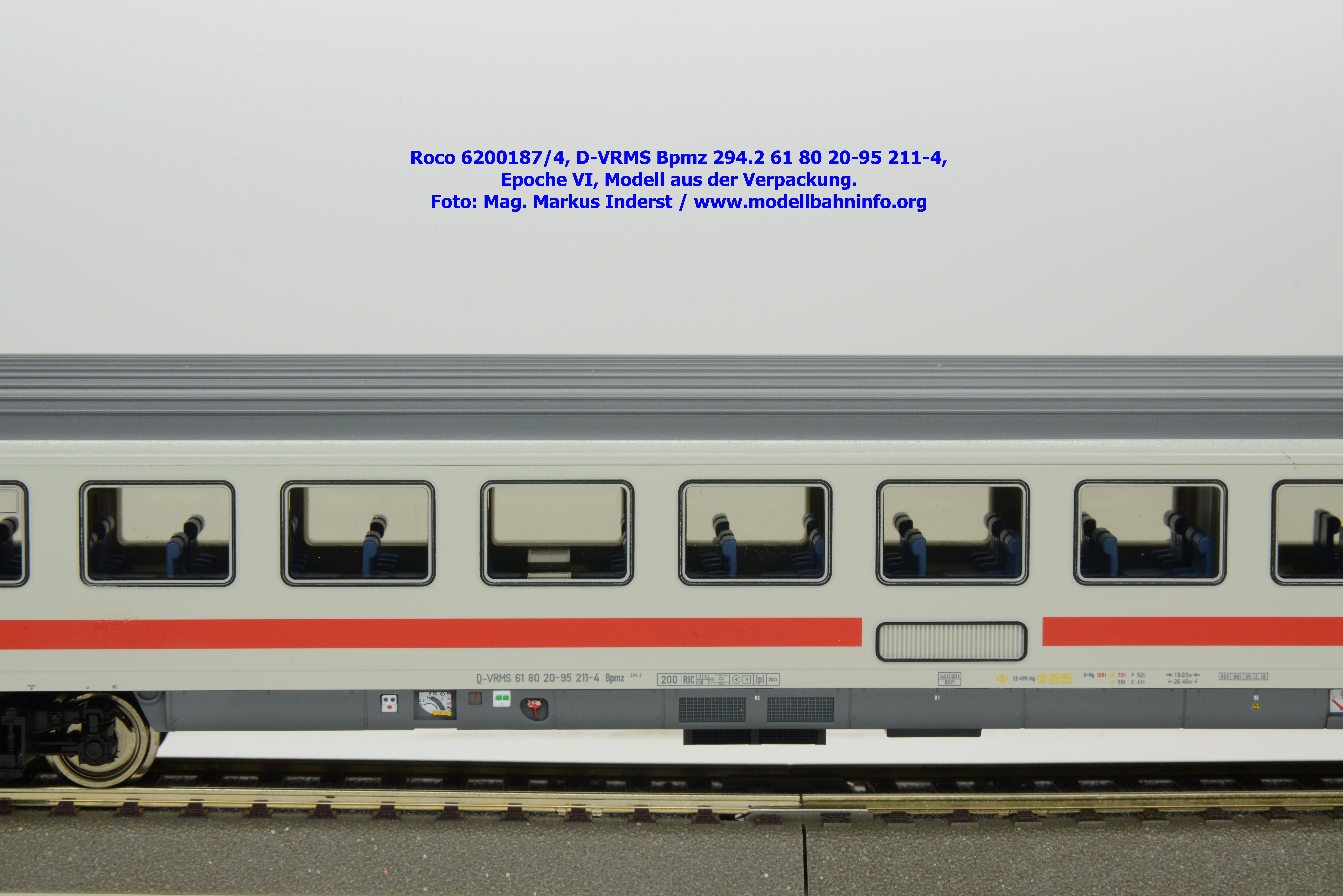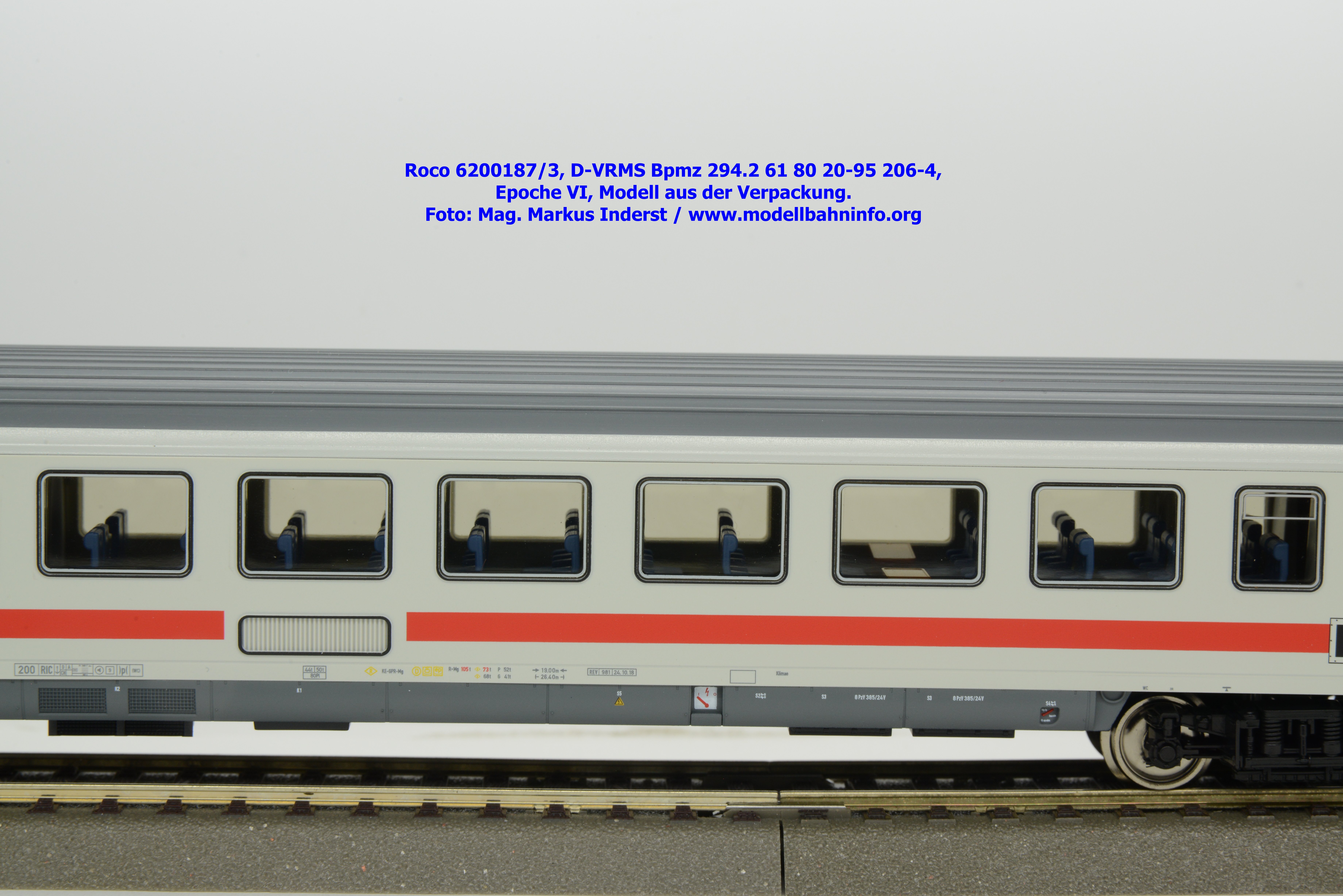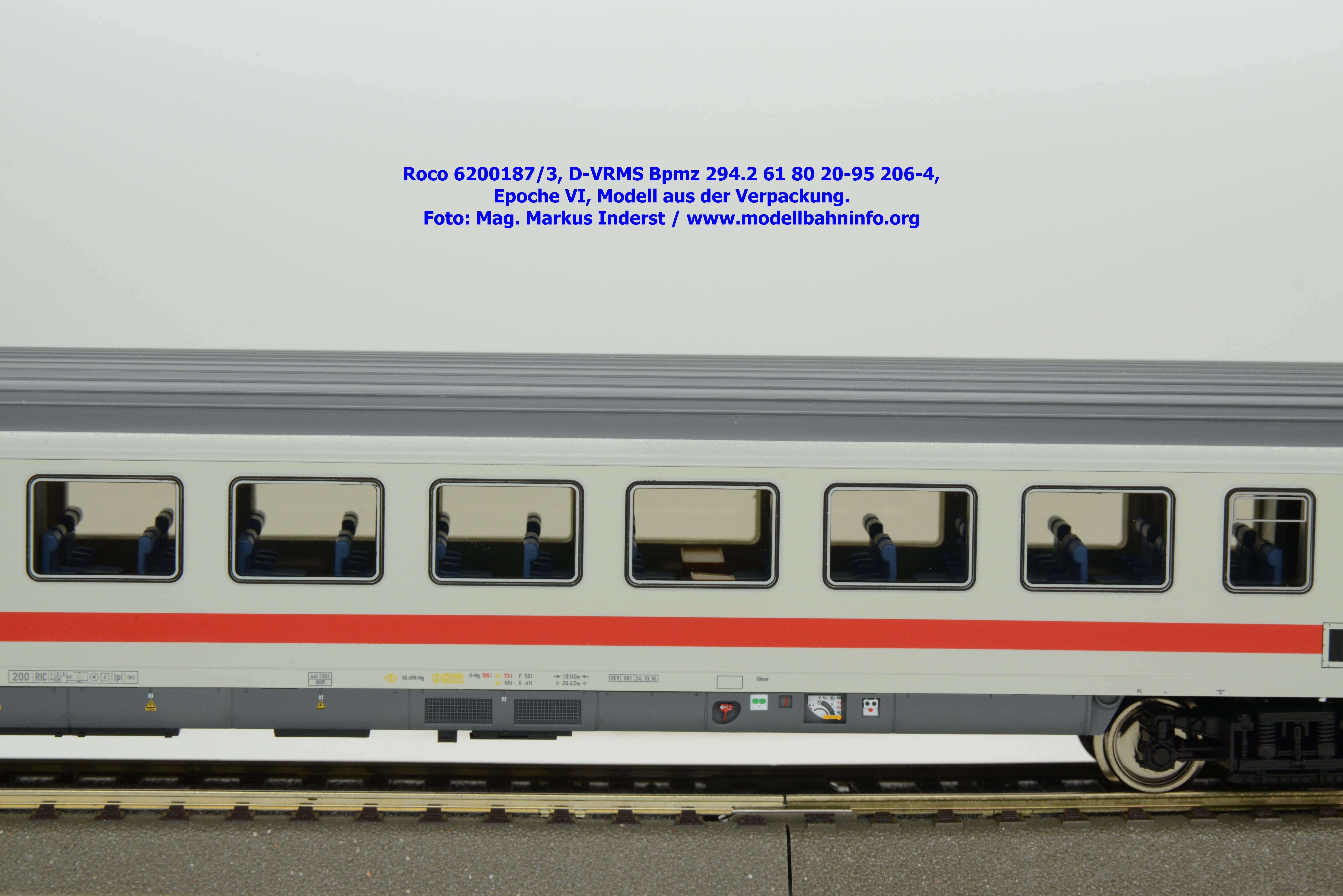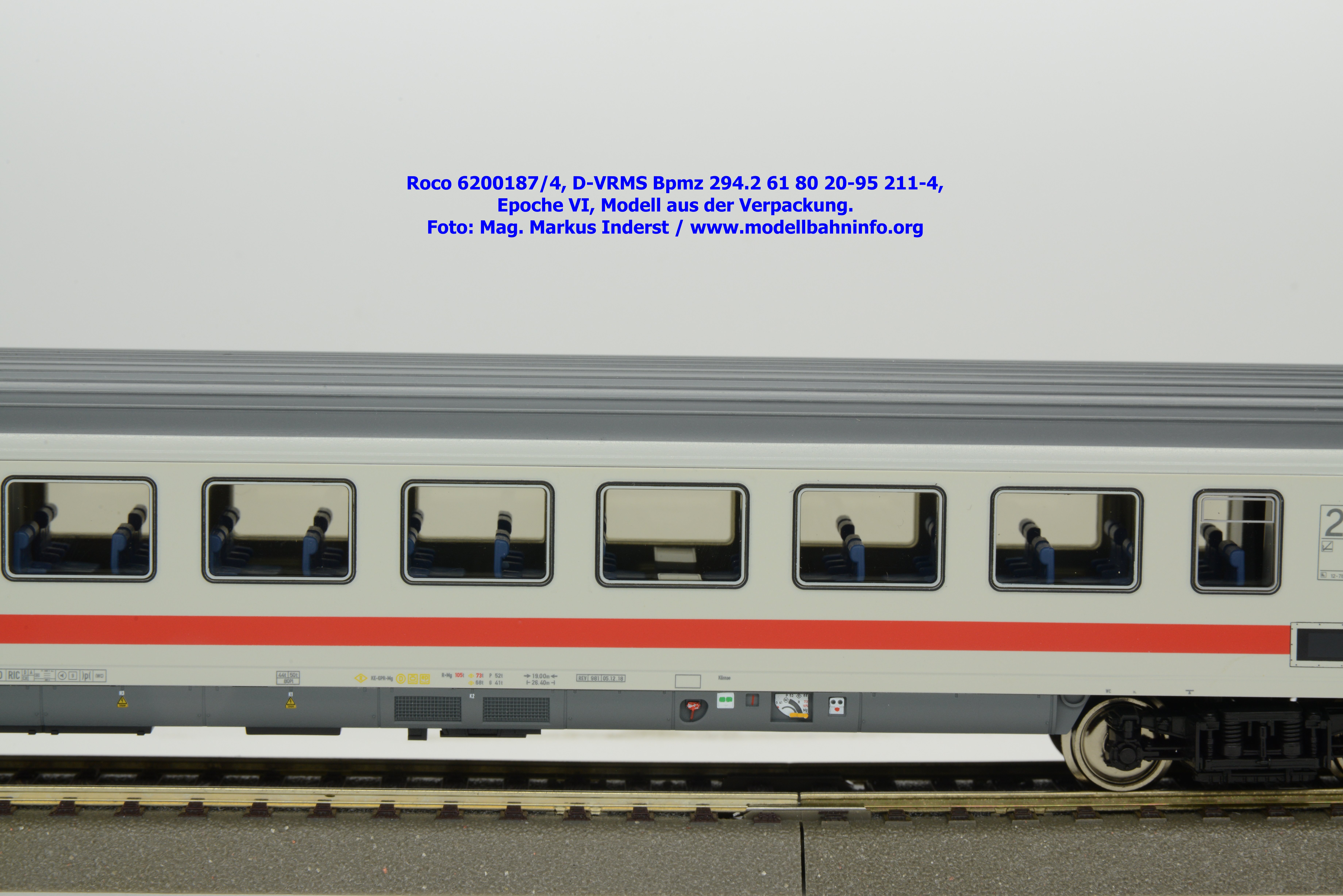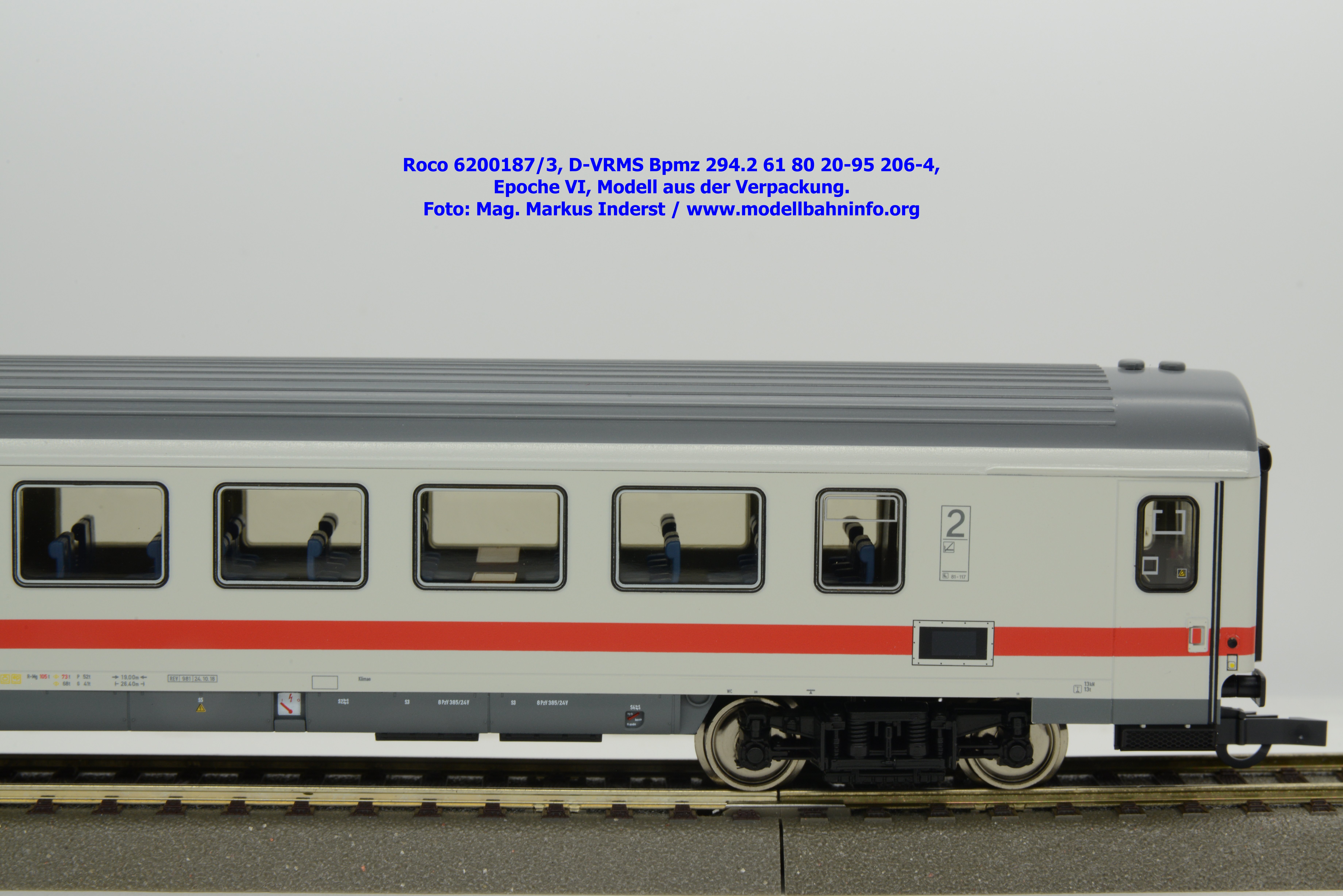 Dieses Modell unterscheidet sich lediglich nur die geänderte Wagenanschrift D-VRMS 61 80 20-95 206-4 und den angeschriebenen Untersuchungsdaten REV 981 24.10.18.