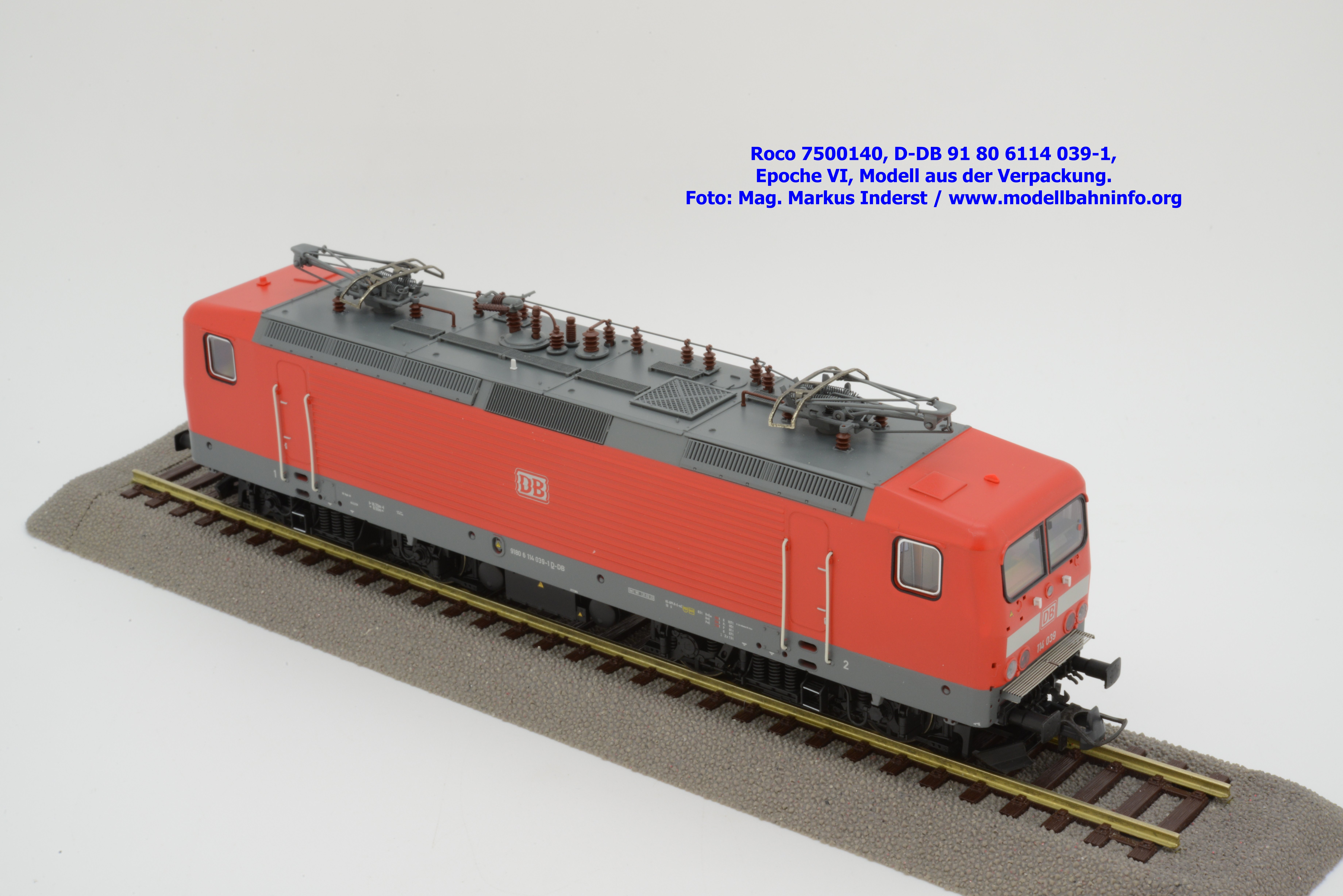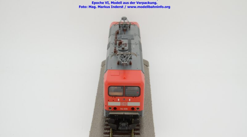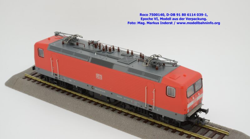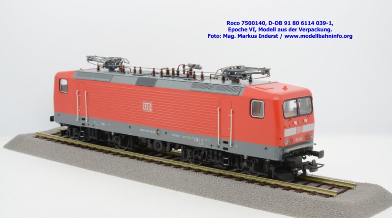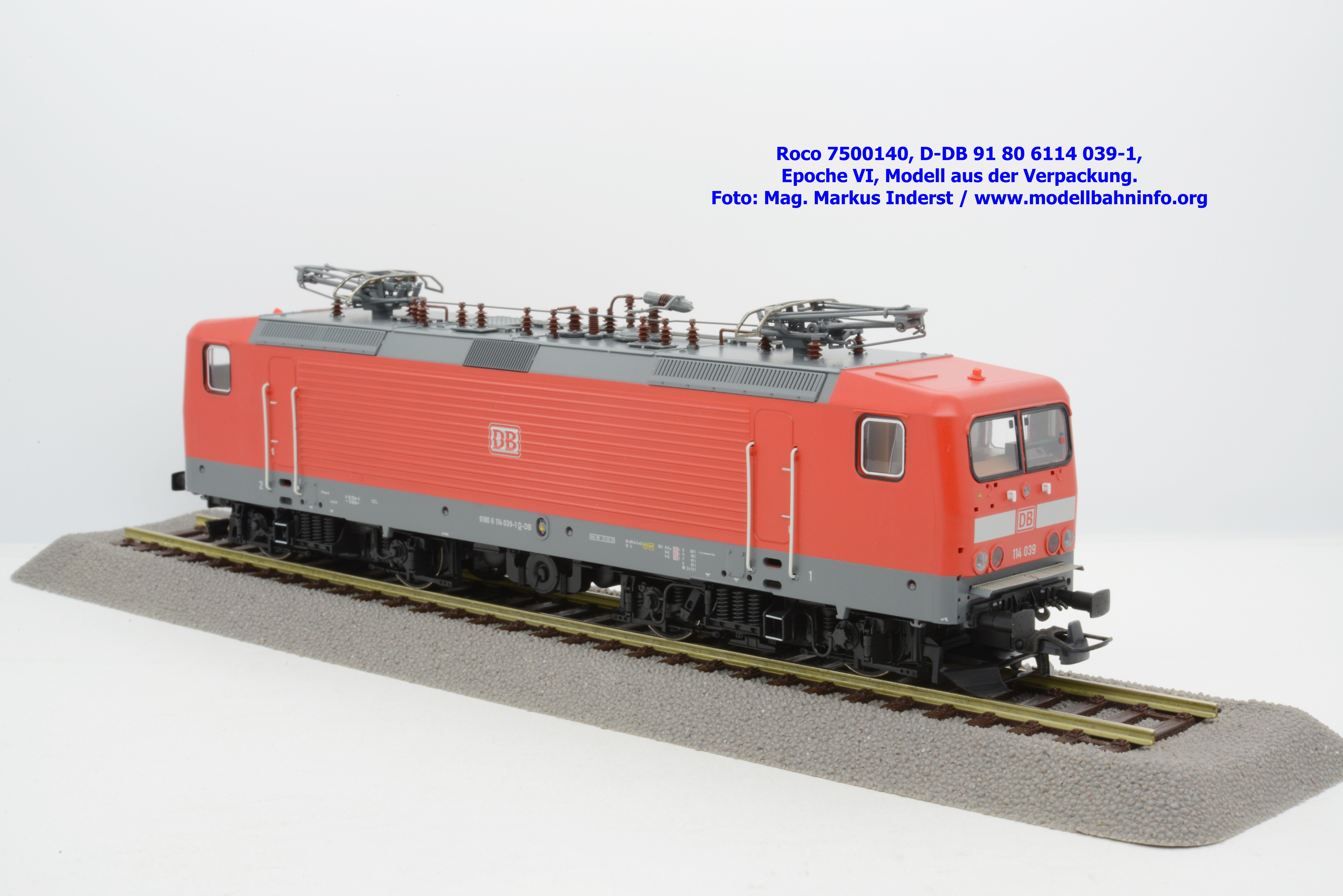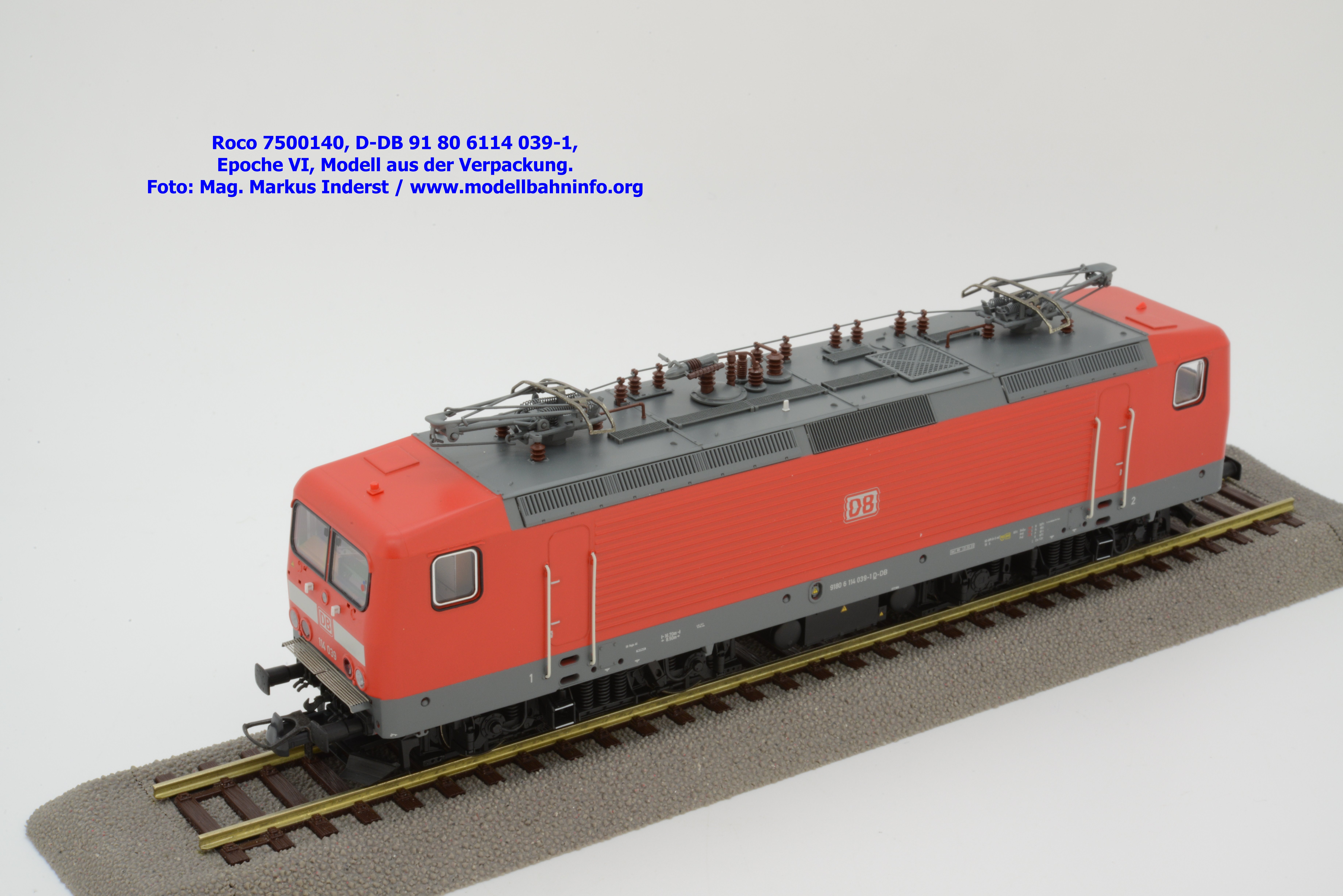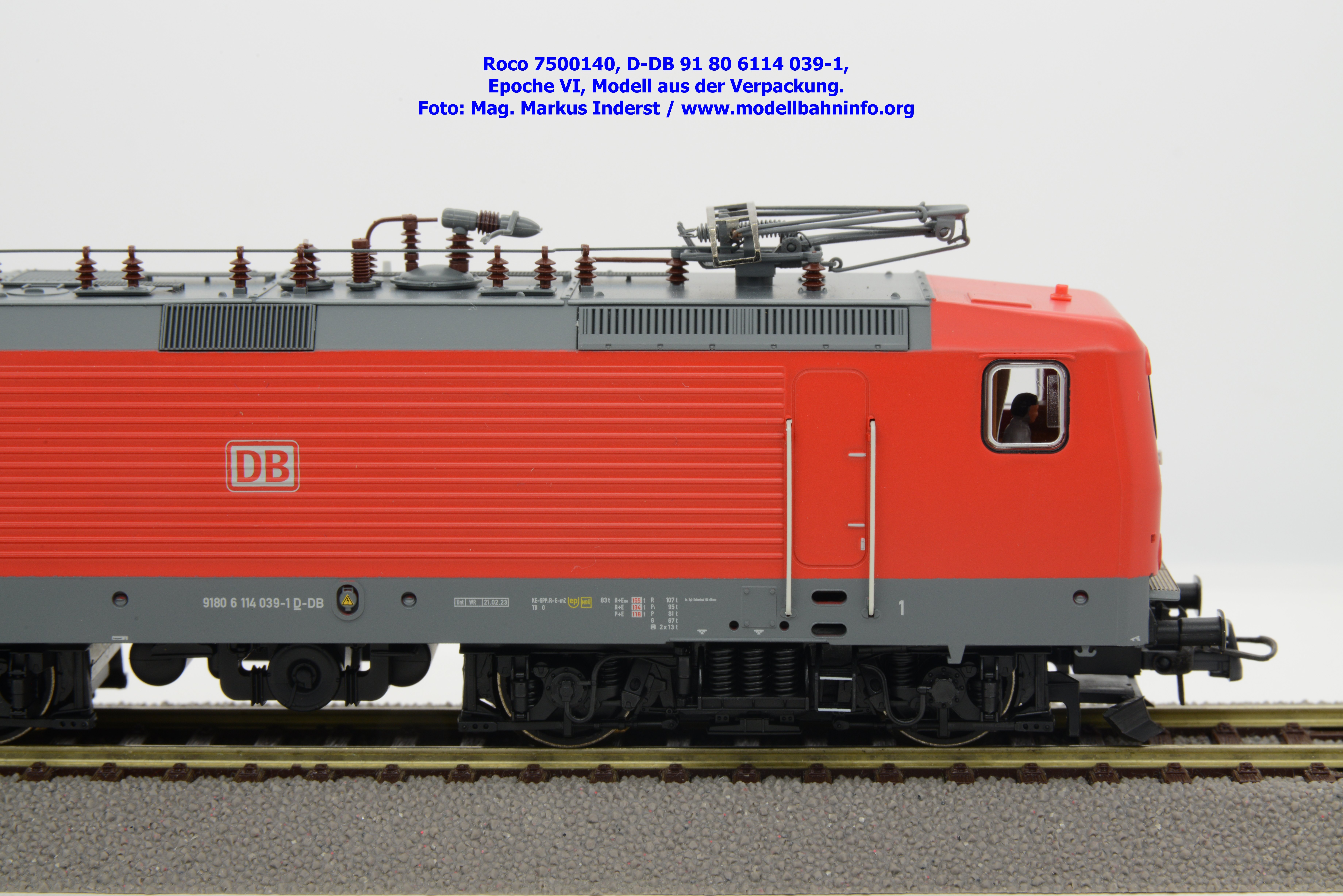 Roco hat in den Jahresneuheiten 2025 eine verkehrsrote Lok der Baureihe 114 mit Epoche VI-Beschriftung angekündigt. Die DB-Lok ist mit der Halterkennung D-DB und der NVR-Nummer 91 80 6114 039-1 bedruckt. Im Revisionsraster stehen die Untersuchungsdaten mit Unt WR 21.02.23. Organisatorisch ist die Lok der DB Regio AG zugewiesen. Die Produktion des Modell geht auf die Überlegung zurück, eine passende Lok für die neuen Doppelstockwagen der DB AG zu haben. Das Modell steht in drei Ausführungen zur Verfügung. Unter der Artikelnummer 7500140 ist die analoge Zweileiter-Gleichstrom-Ausführung verfügbar, die mit einem UVP von € 269,90 belegt ist. Die digitale Zweileiter-Gleichstrom-Ausführung wird unter der Artikelnummer 7510140 zum UVP von € 369,90 geführt, wobei die digitale Dreileiter-Wechselstrom-Ausführung unter der Artikelnummer 7520140 zu haben ist.