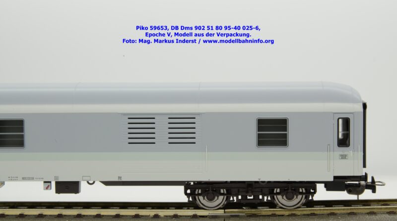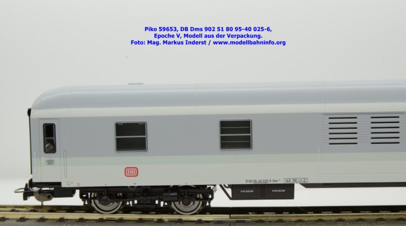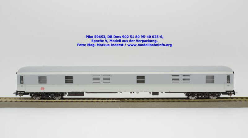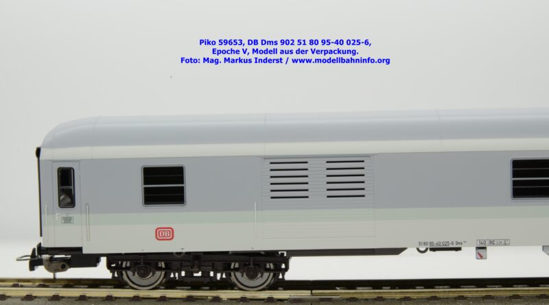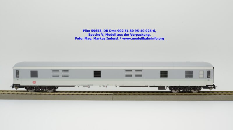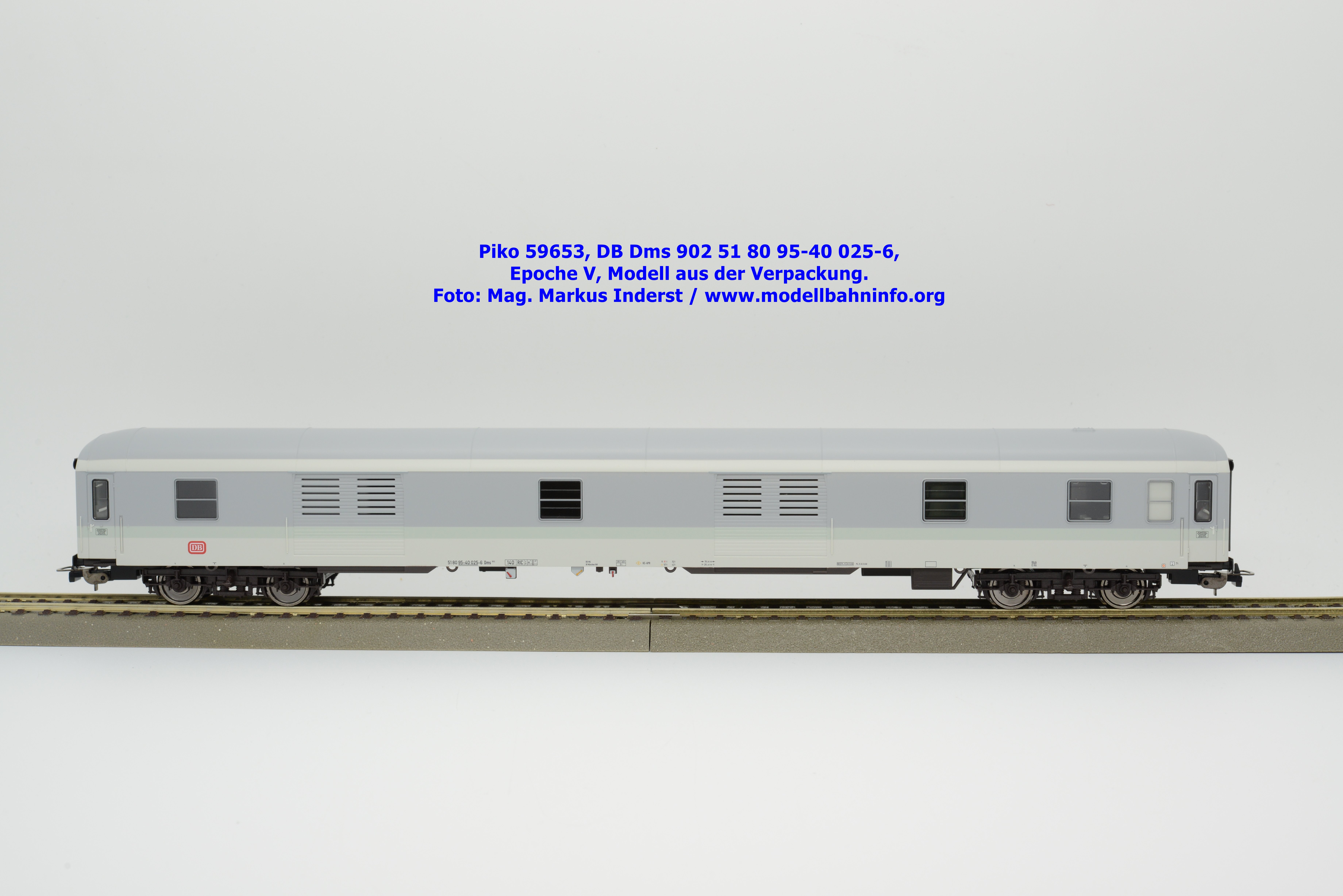 Bei den Gepäckwagen mit der Gattungsbezeichnung Dms 902 fertigt der Sonneberger Hersteller erstmals eine Farb- und Beschriftungsvariante in den DB-Produktfarben. Der 140 km/h schnelle Gepäckwagen ist mit der Wagennummer 51 80 95-40 025-6 bedruckt. Als Heimatbahnhof ist der Bahnhof München Hbf bzw. die gleichnamige Bundesbahndirektion angegeben. Die Untersuchungsdaten sind mit der Anschrift REV FL X 22.12.92 angeschrieben. Der neue Gepäckwagen wird zum UVP von € 61,99.