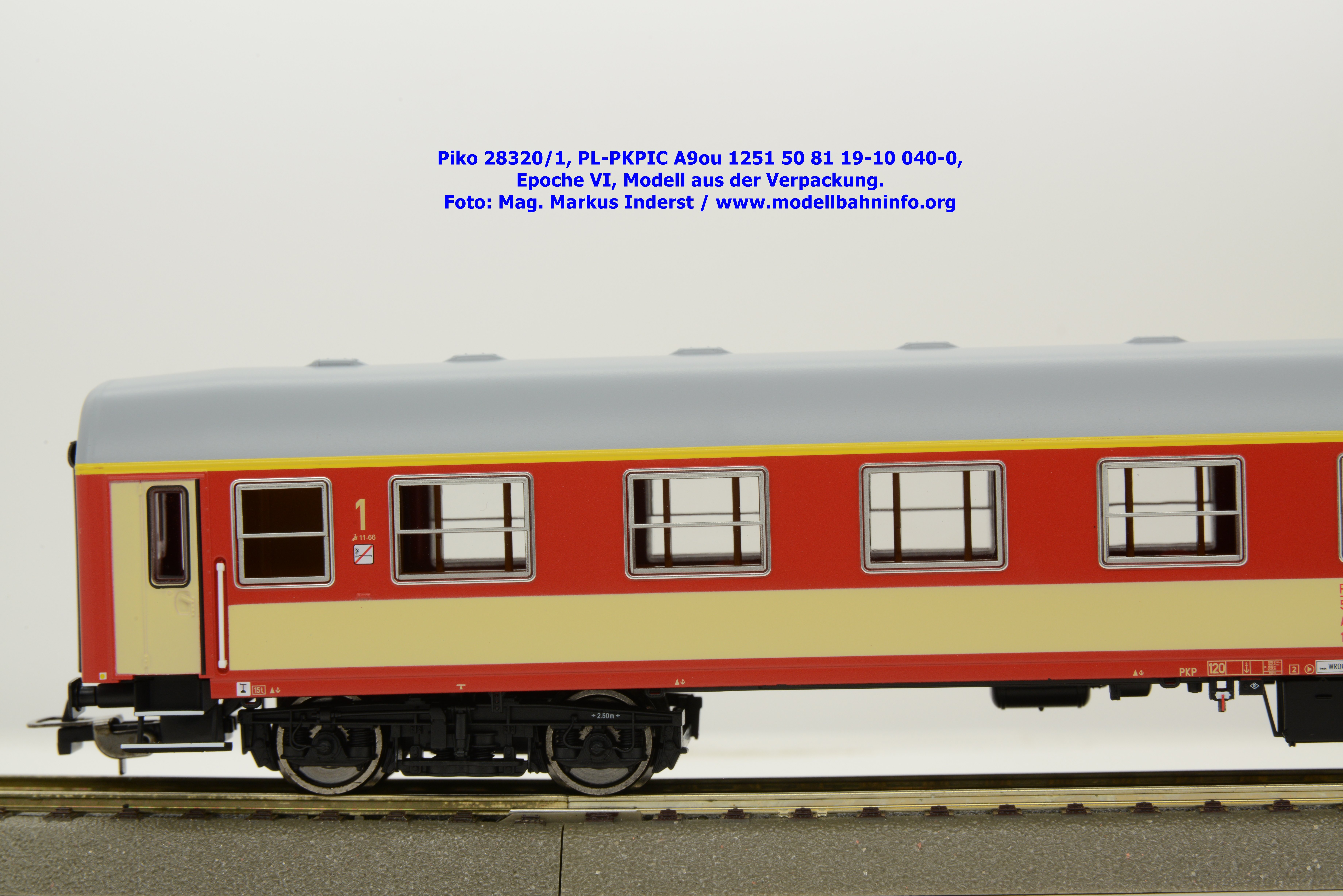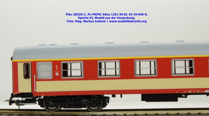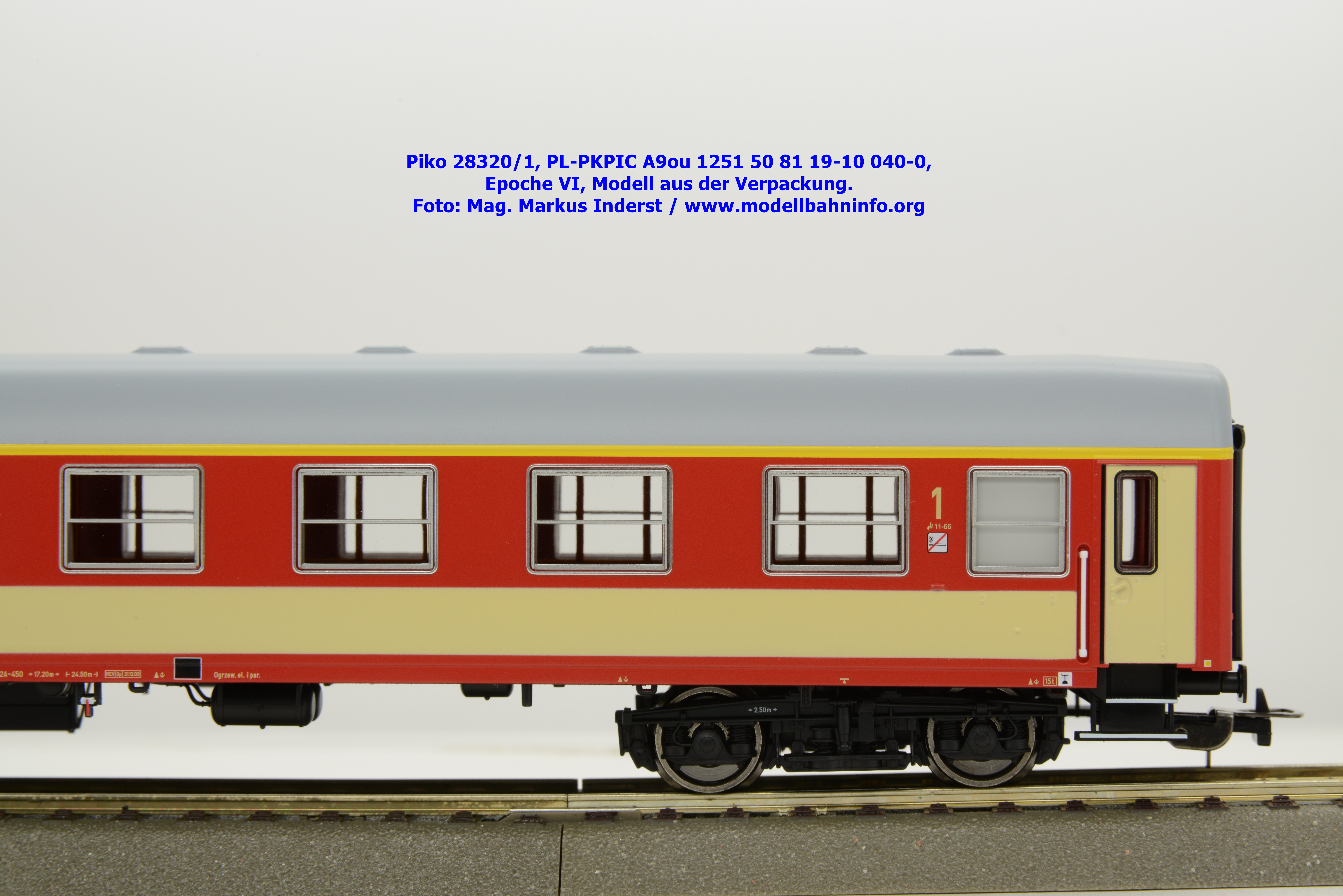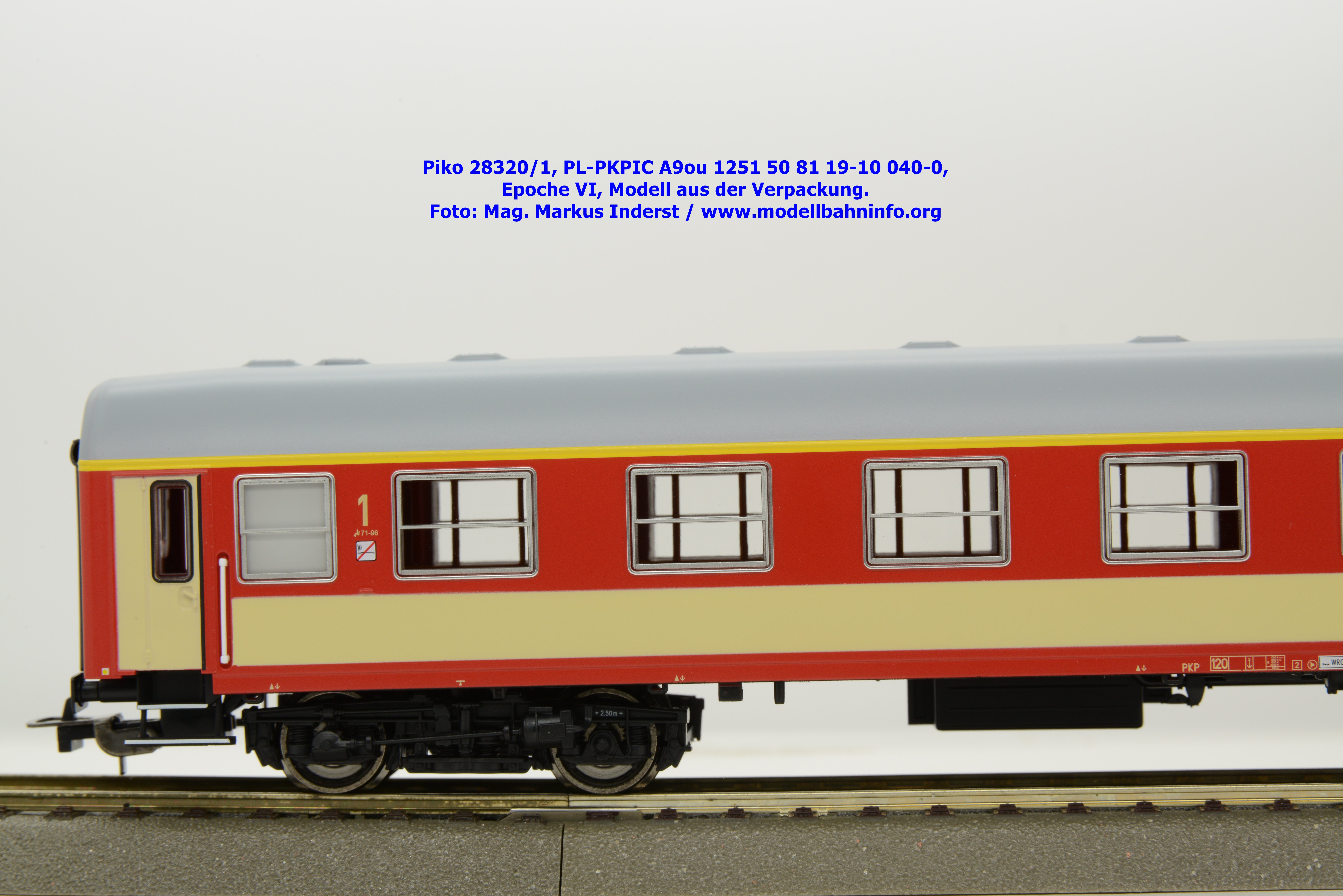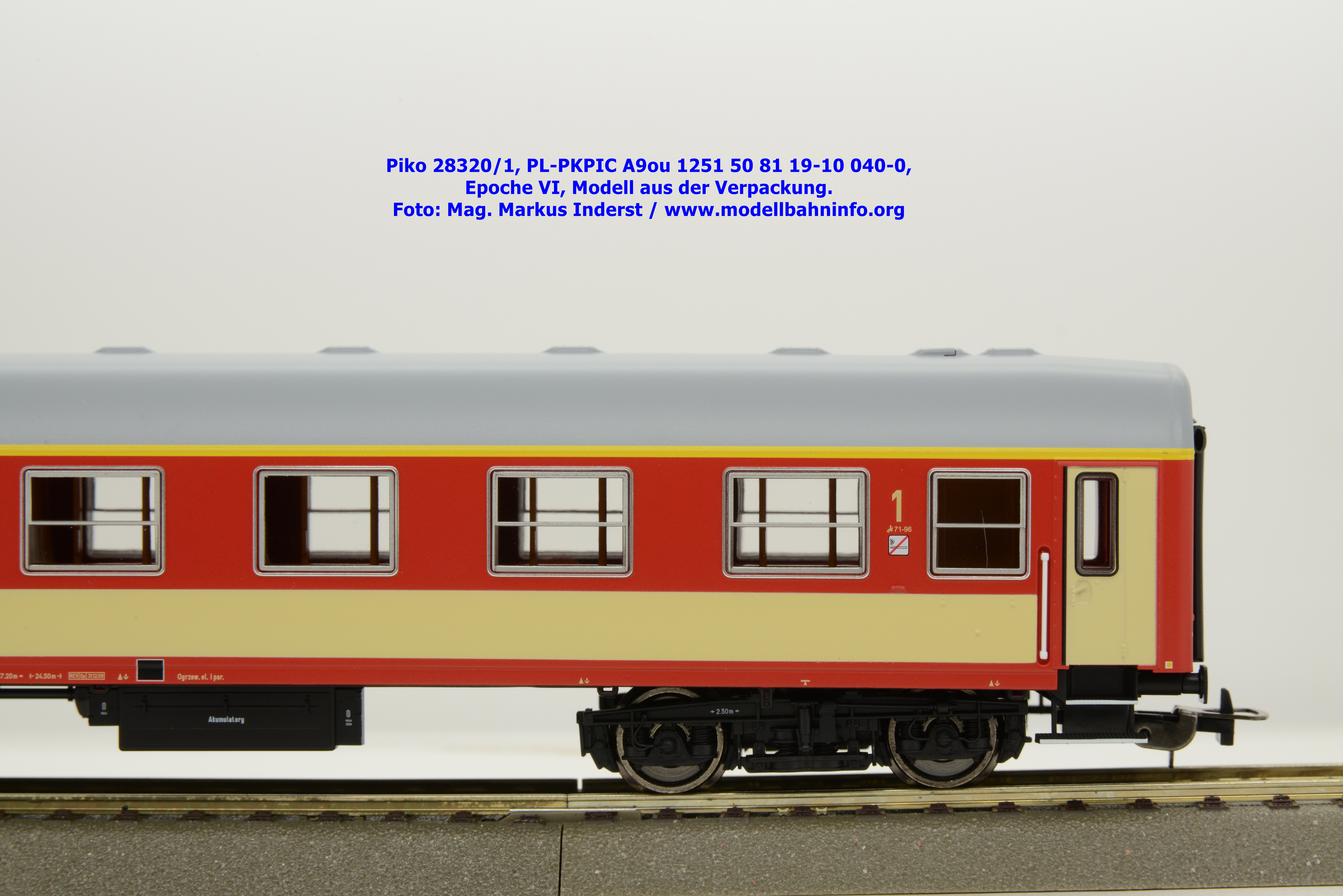 Der dazu passende Wagen der 1. Wagenklasse weist dasselbe Farbschema auf, ist jedoch mit der Gattungsbezeichnung A9ou, dem Halterkürzel PL-PKPIC und der Wagennummer 50 51 19-78 255-3 bedruckt. Heimatbahnhof ist wiederum Krakow. Im Revisionsraster stehen die Angaben REV Op 30.06.10. Der UVP beträgt € 54,99.
