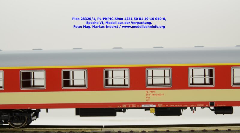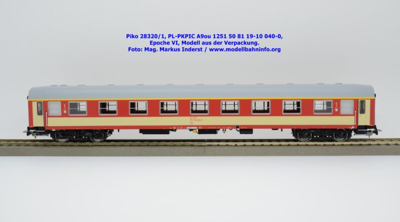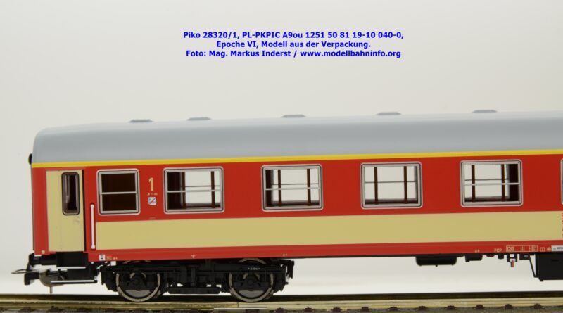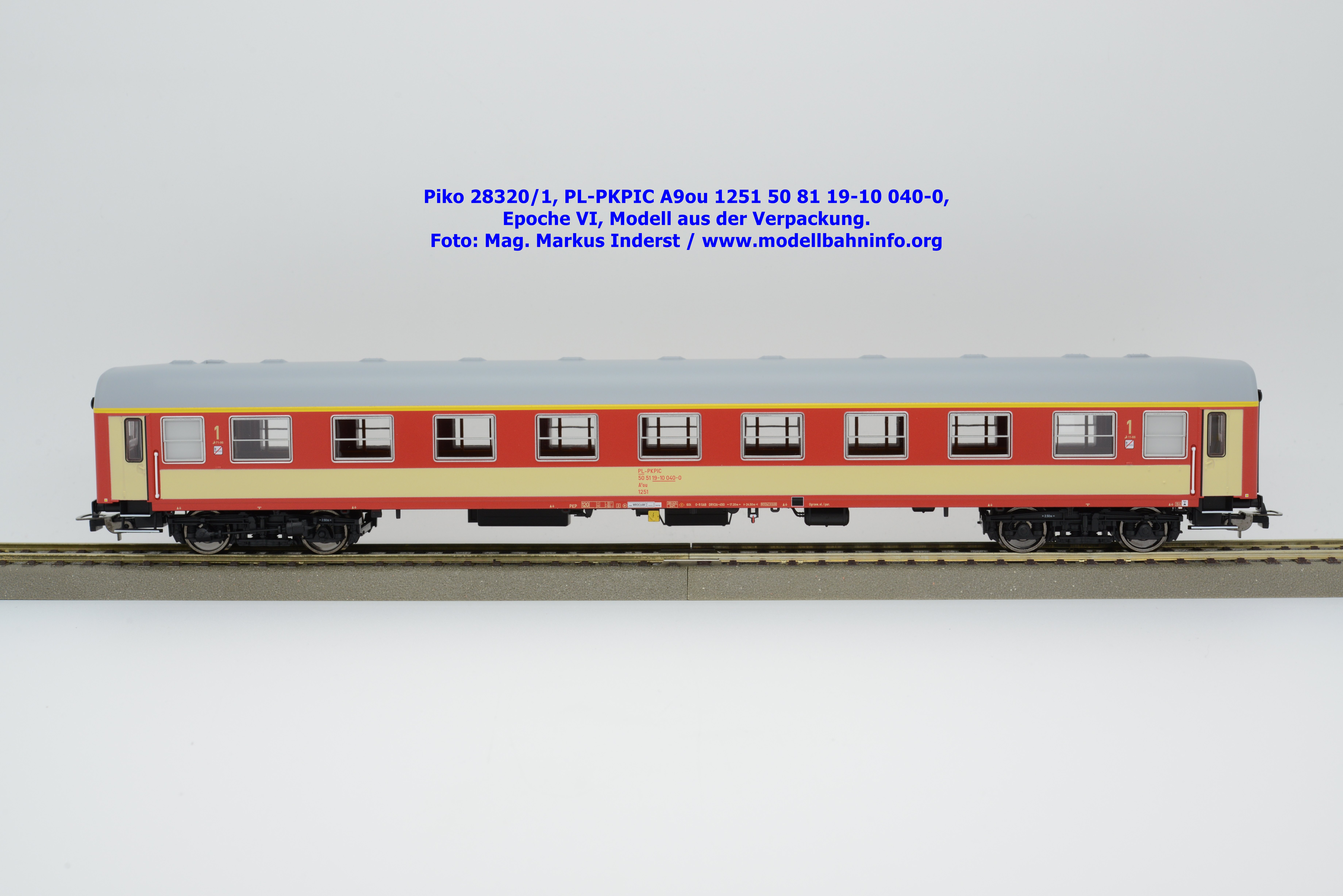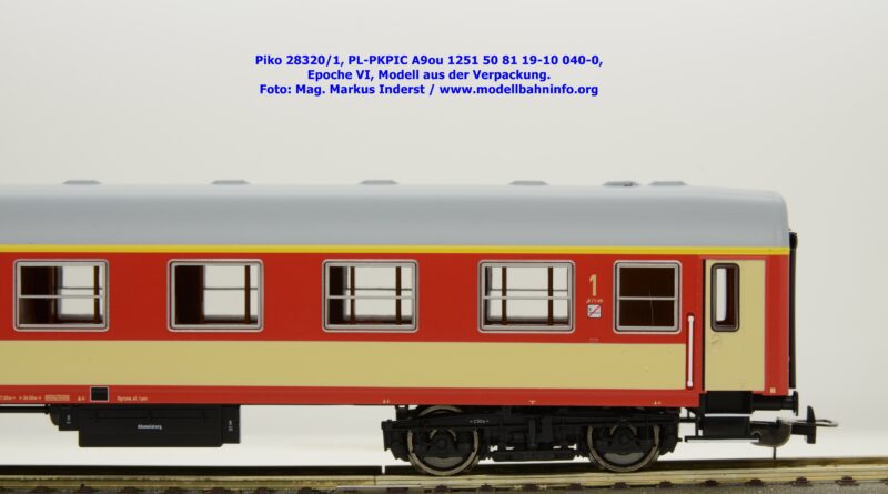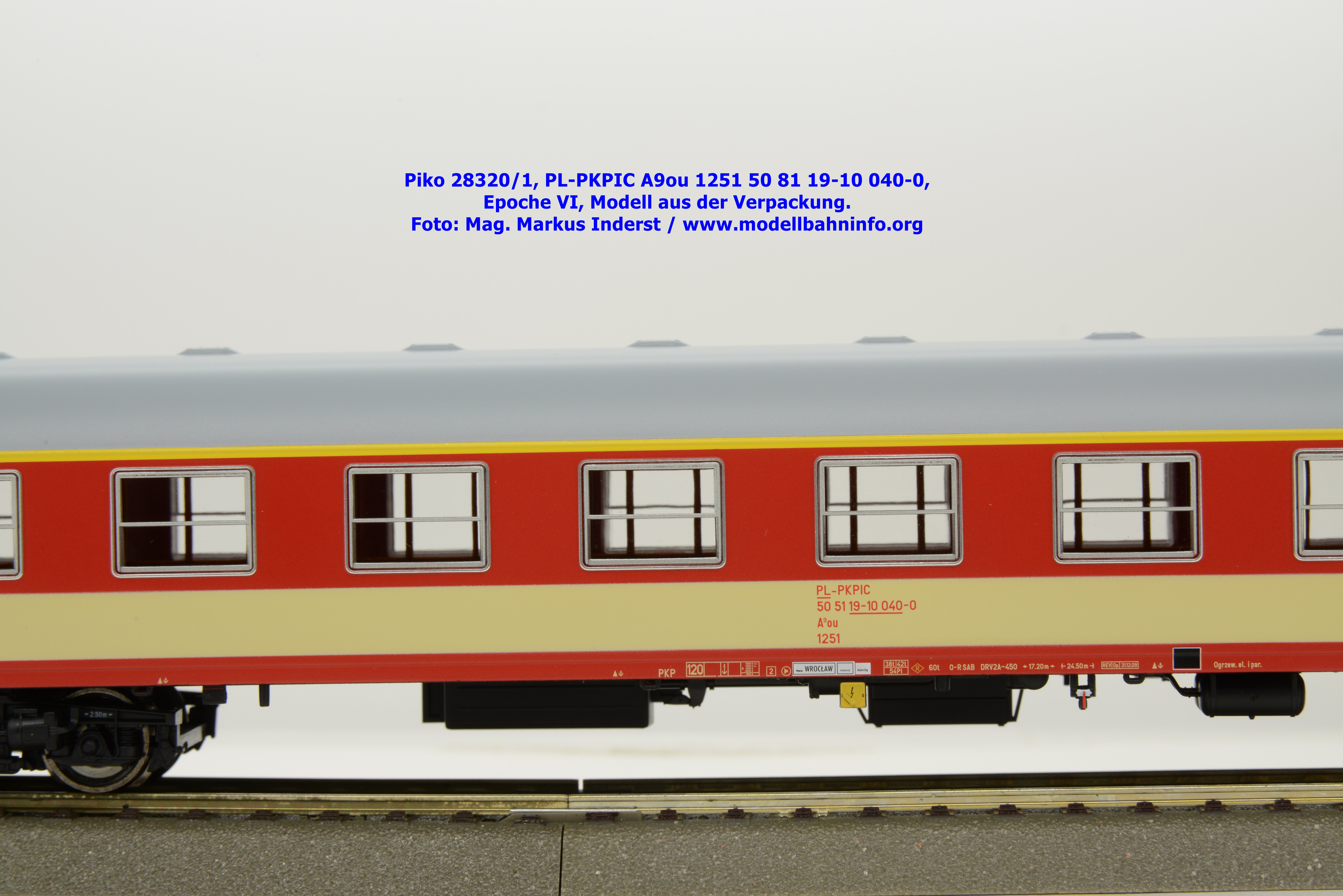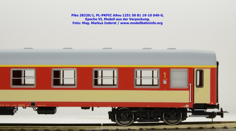Der dazu passende Wagen der 1. Wagenklasse weist dasselbe Farbschema auf, ist jedoch mit der Gattungsbezeichnung A9ou, dem Halterkürzel PL-PKPIC und der Wagennummer 50 51 19-78 255-3 bedruckt. Heimatbahnhof ist wiederum Krakow. Im Revisionsraster stehen die Angaben REV Op 30.06.10. Der UVP beträgt € 54,99.