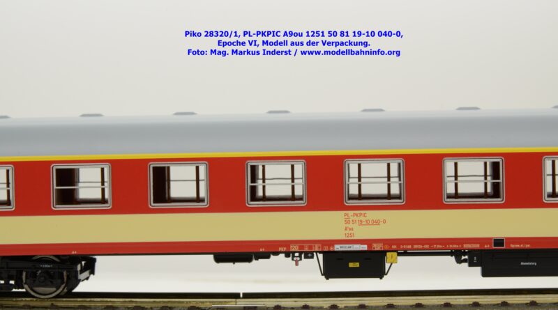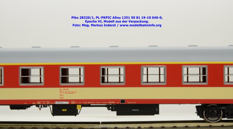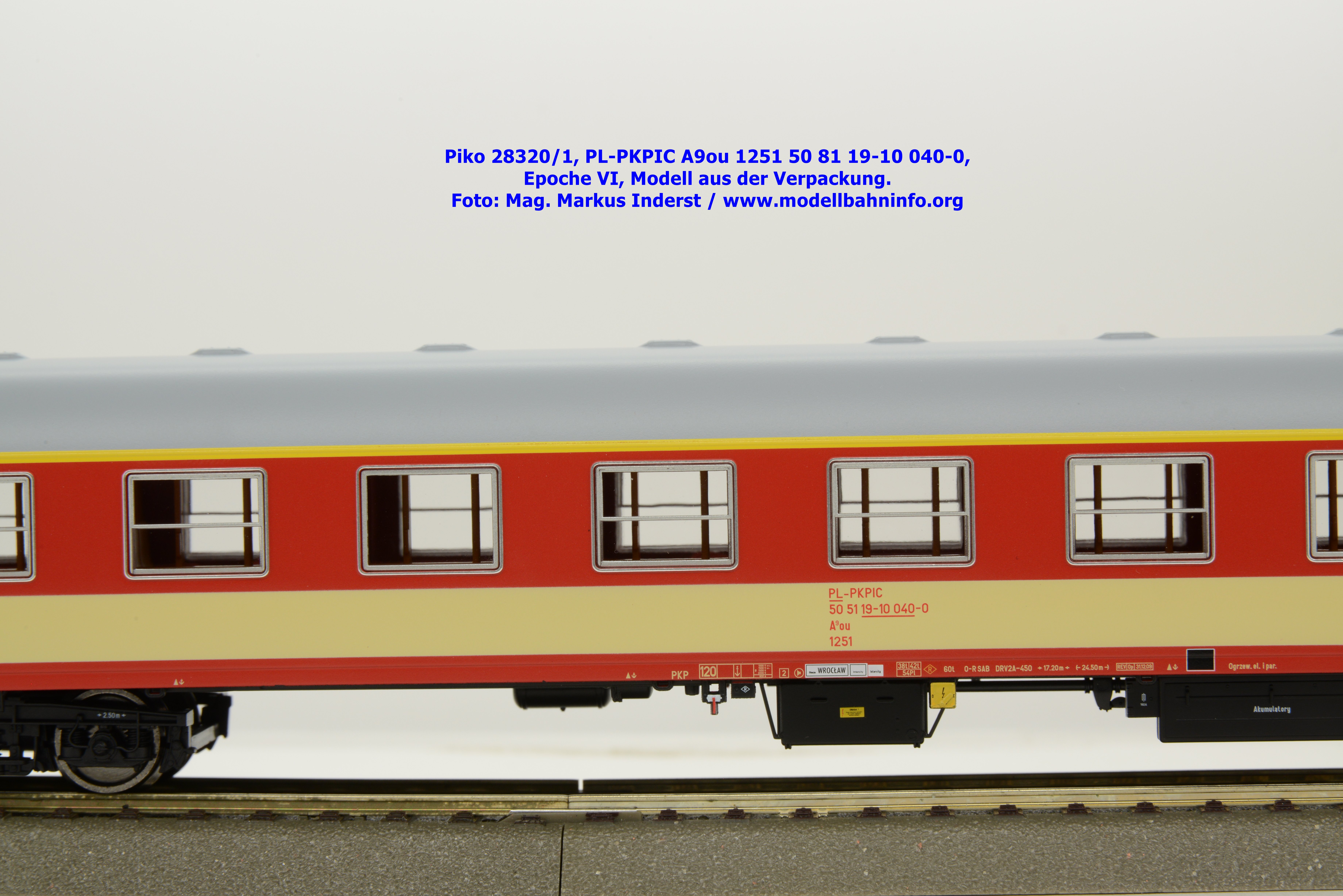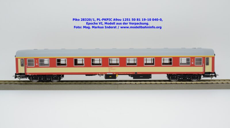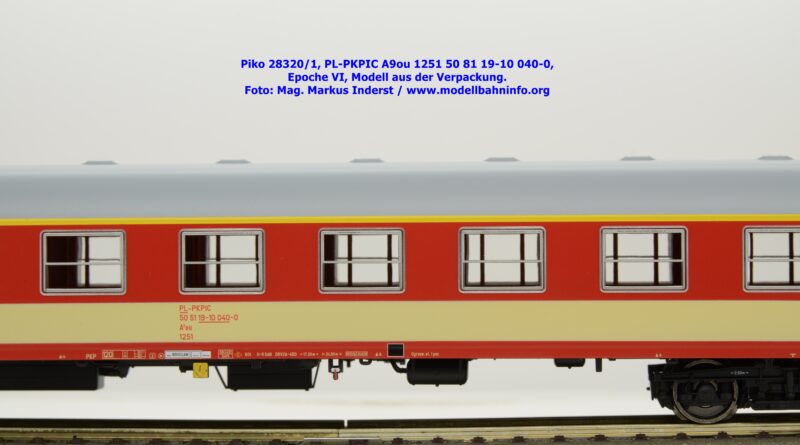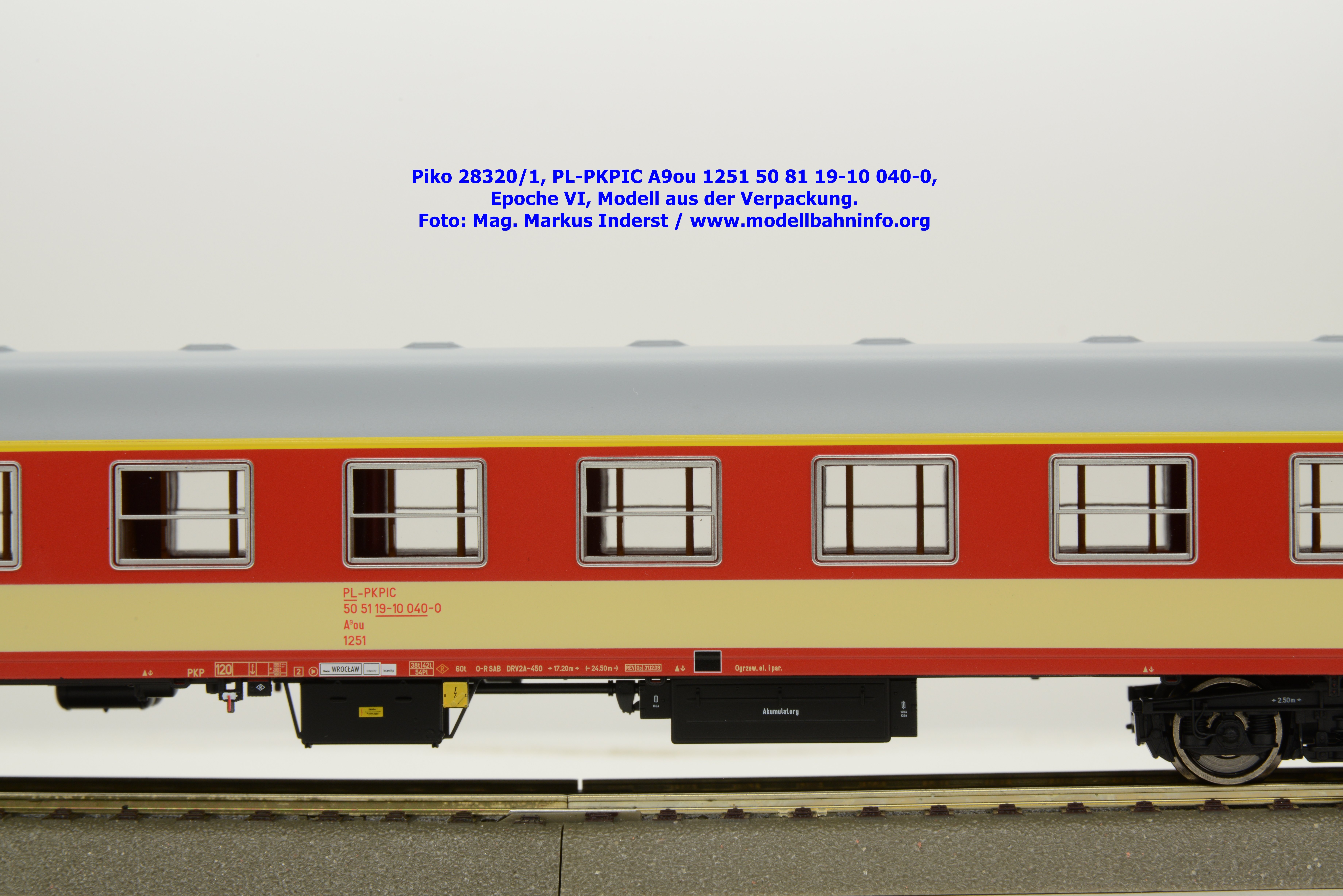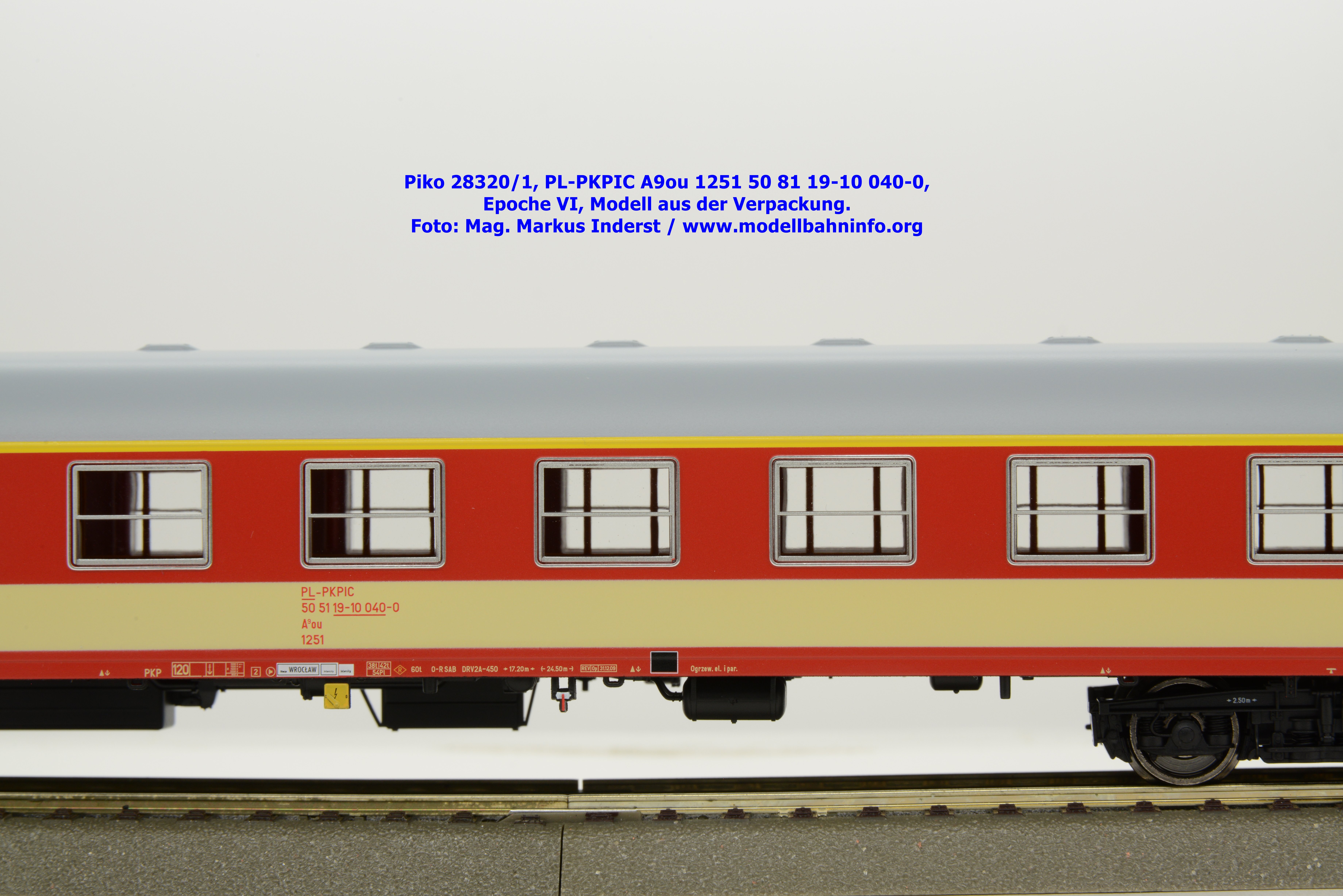 Der dazu passende Wagen der 1. Wagenklasse weist dasselbe Farbschema auf, ist jedoch mit der Gattungsbezeichnung A9ou, dem Halterkürzel PL-PKPIC und der Wagennummer 50 51 19-78 255-3 bedruckt. Heimatbahnhof ist wiederum Krakow. Im Revisionsraster stehen die Angaben REV Op 30.06.10. Der UVP beträgt € 54,99.