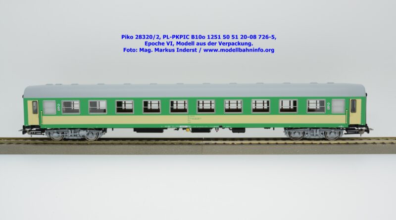 Dieses Wagenset beinhaltet zwei Schnellzugwagen der 2. Wagenklasse und mit der Gattungsbezeichnung B10ou. Die Halterkennung lautet dabei auf PL-PKPIC. Der UVP wurde mit € 120,– angegeben.