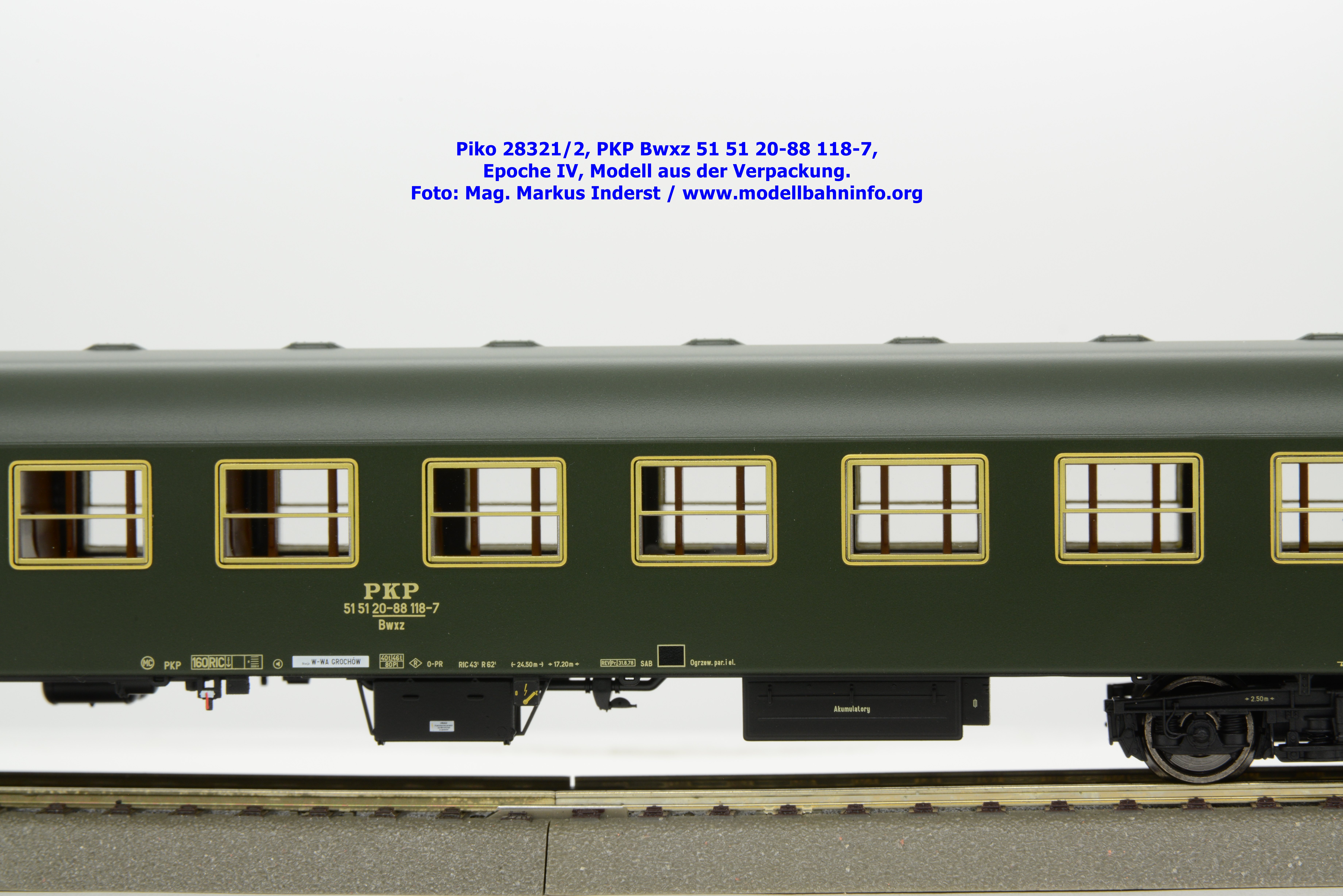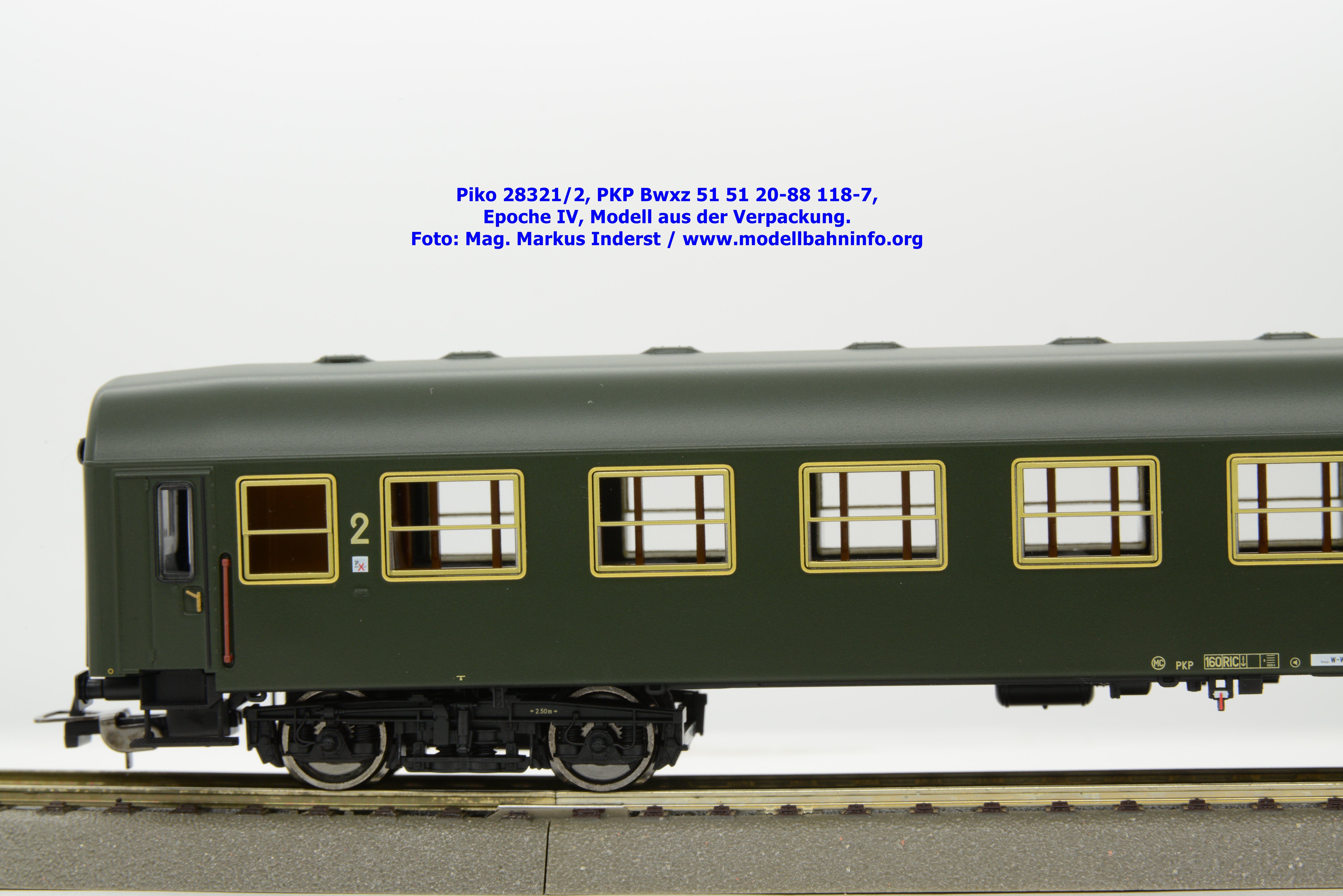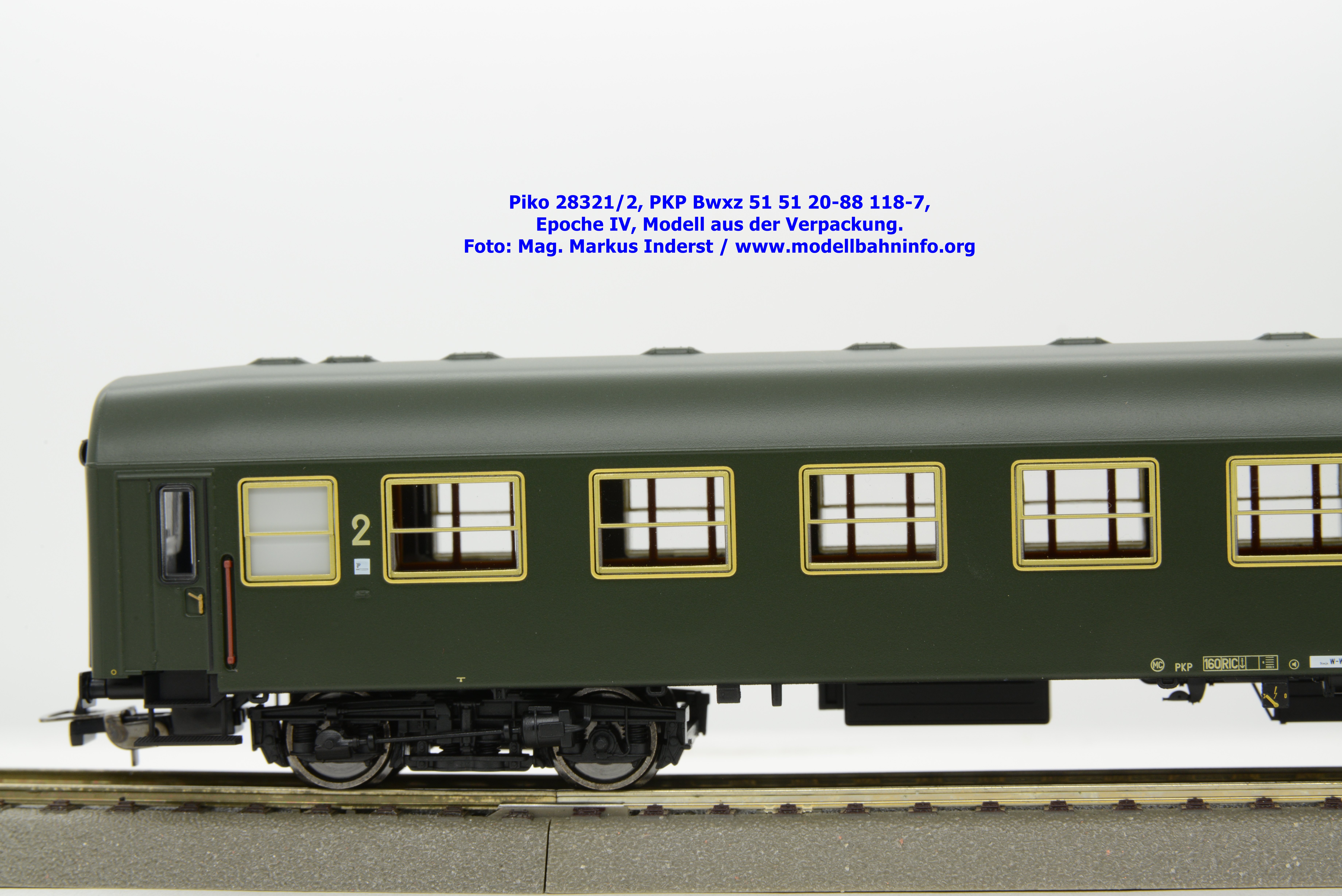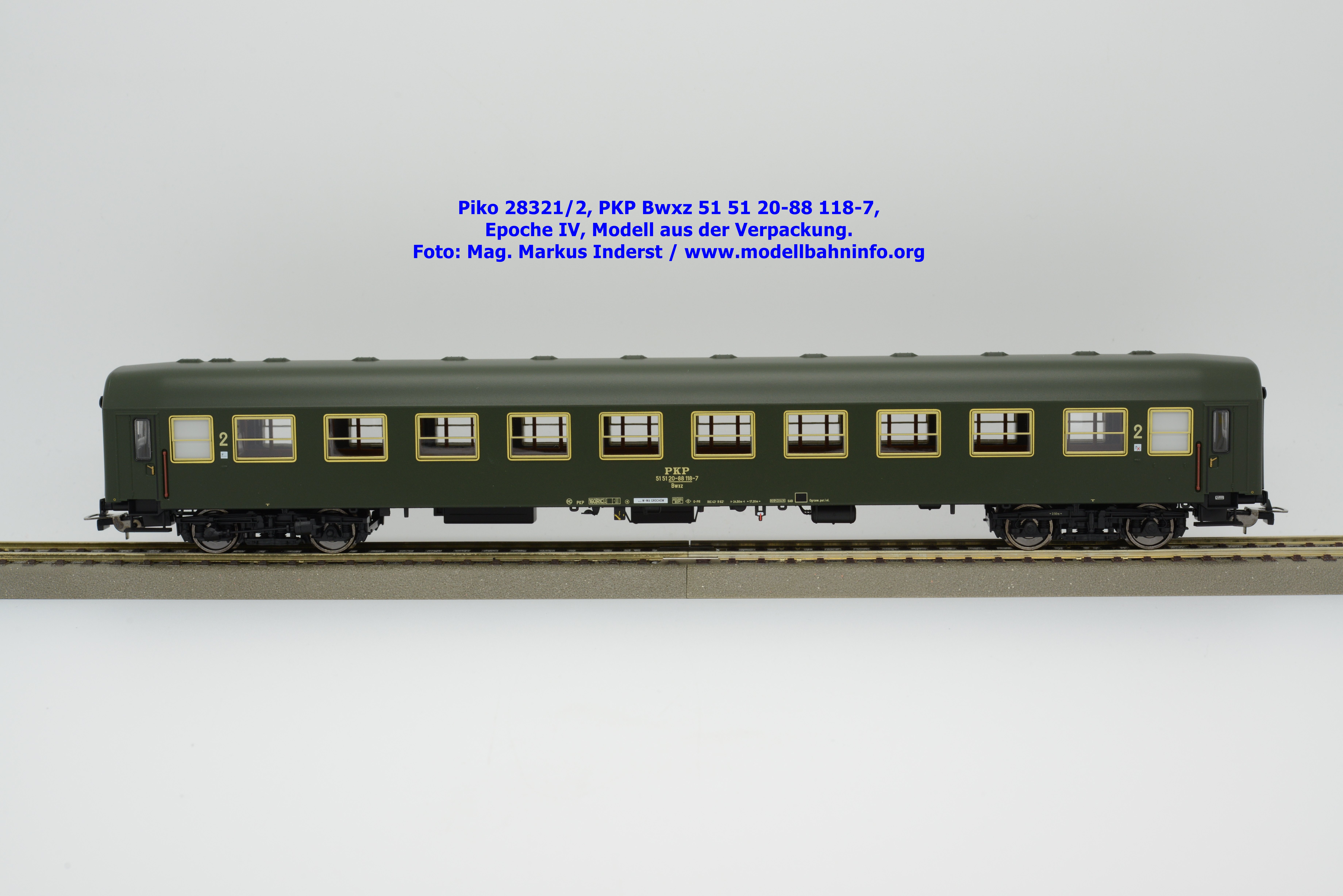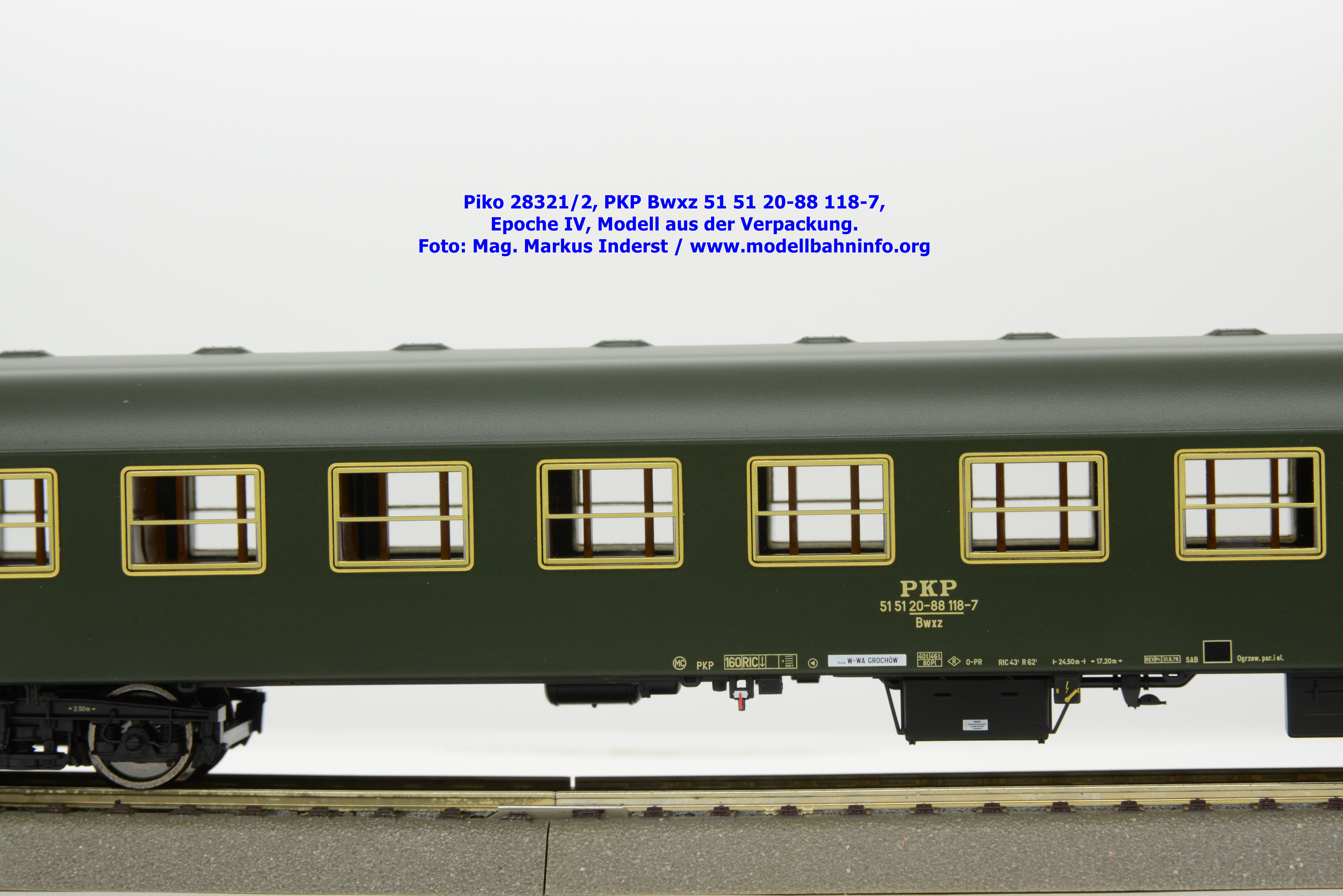 Für den internationalen Zugverkehr stehen diese beiden auslandsfähigen Schnellzugwagen der PKP zur Verfügung. Beide Wagen sind in dunkelgrüner Farbgebung ausgeführt und gehören der Epoche IV an. Somit passen beide Modelle zu den bisherigen Modellauflagen des Herstellers, wobei auch hierbei auf das Verhältnis von 1. zu 2. Klasse Wagen geachtet werden soll. Wie alle RIC-fähigen Schnellzugwagen sind auch diese der Heimatdienststelle Warschau-Grochów zugewiesen. Beide Wagen weisen den UVP von € 143,– auf.