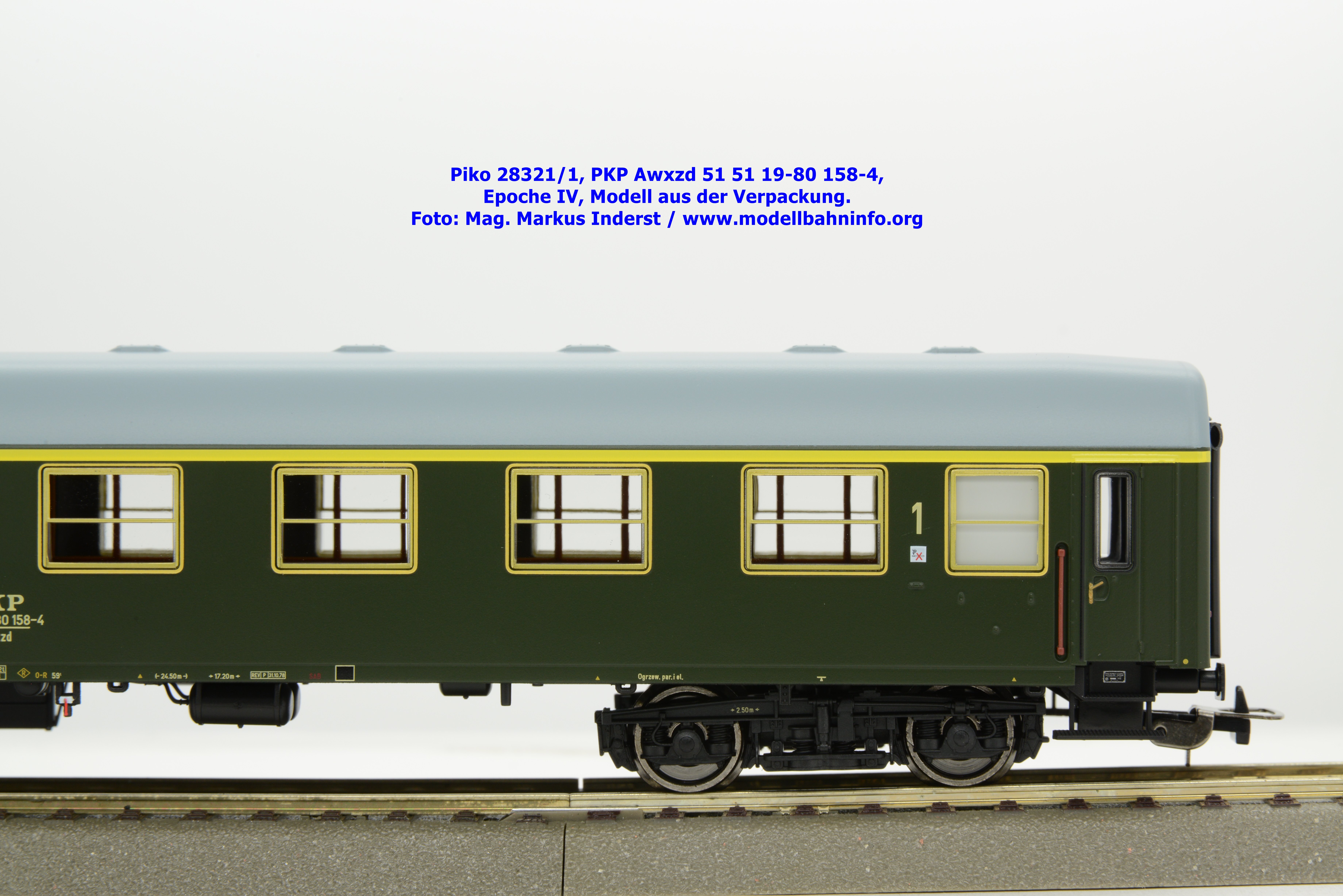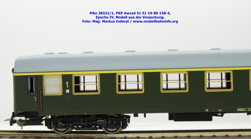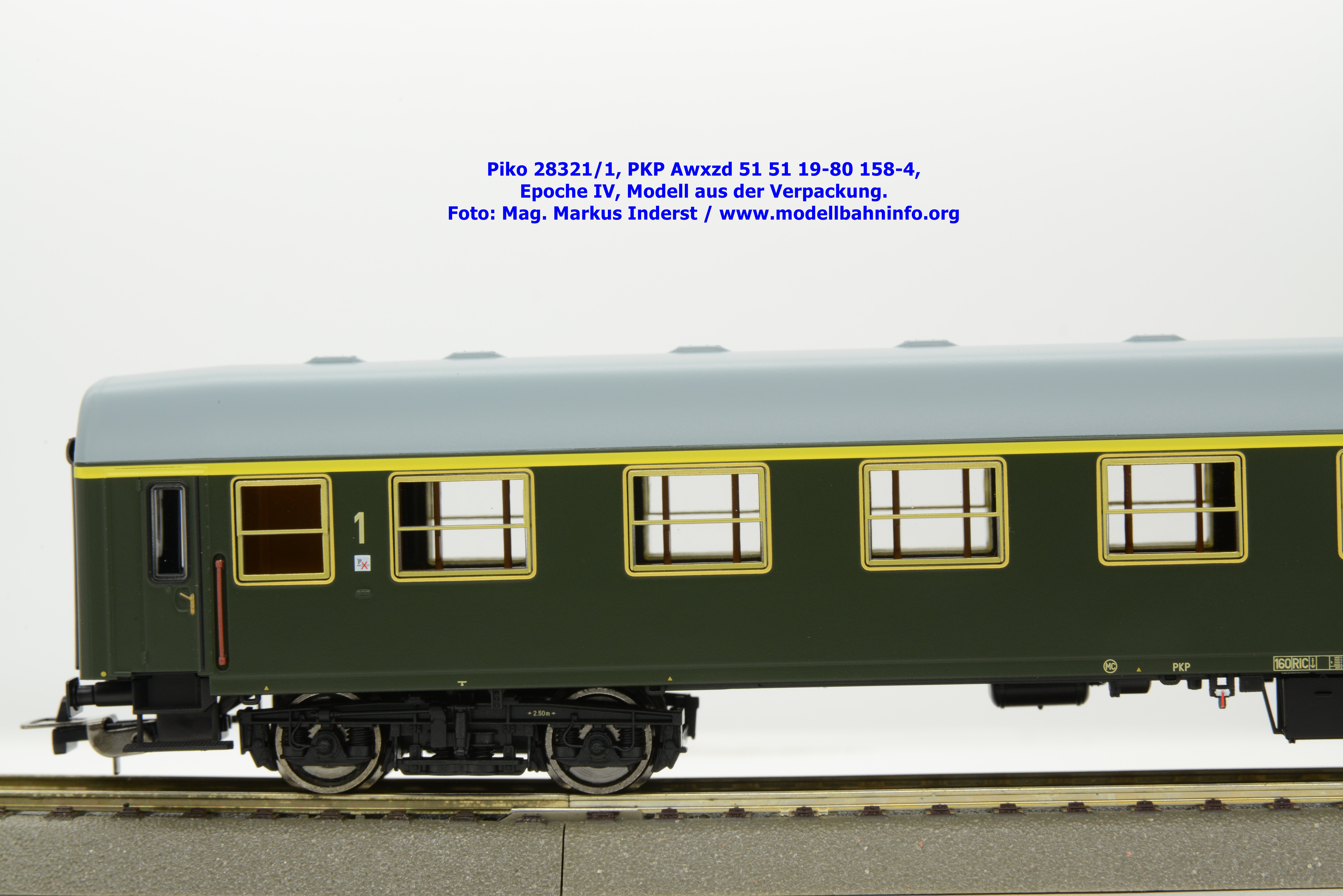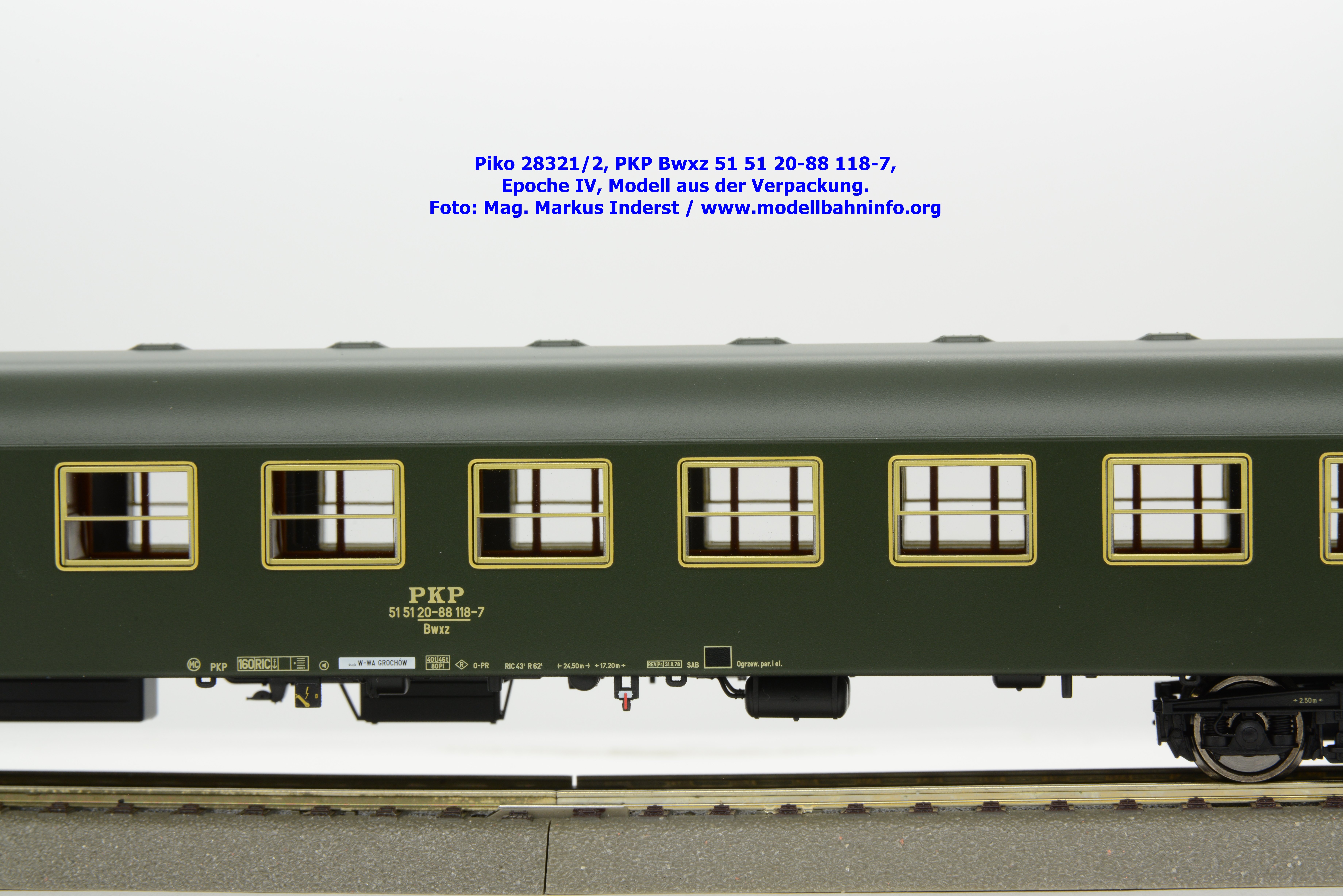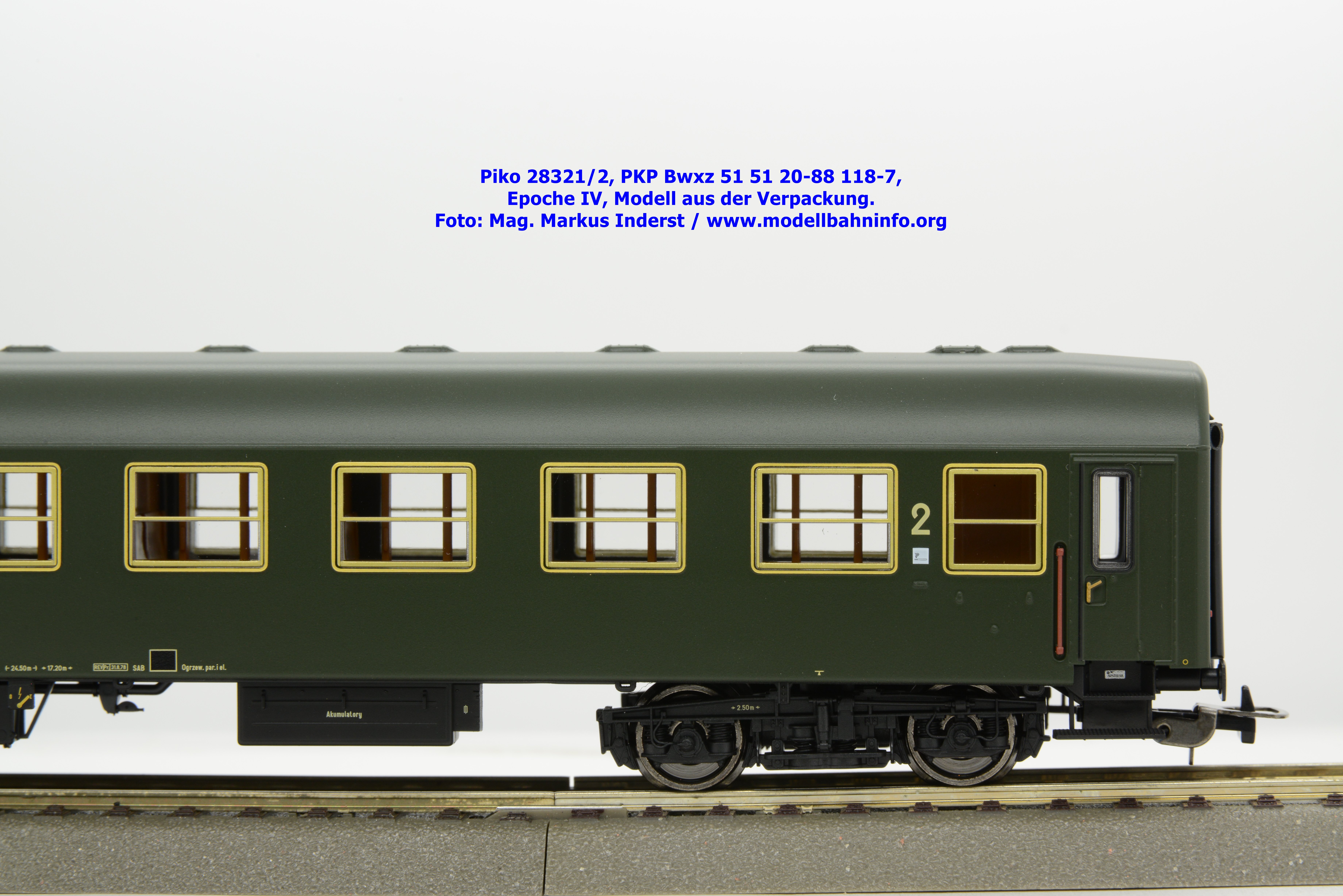 Für den internationalen Zugverkehr stehen diese beiden auslandsfähigen Schnellzugwagen der PKP zur Verfügung. Beide Wagen sind in dunkelgrüner Farbgebung ausgeführt und gehören der Epoche IV an. Somit passen beide Modelle zu den bisherigen Modellauflagen des Herstellers, wobei auch hierbei auf das Verhältnis von 1. zu 2. Klasse Wagen geachtet werden soll. Wie alle RIC-fähigen Schnellzugwagen sind auch diese der Heimatdienststelle Warschau-Grochów zugewiesen. Beide Wagen weisen den UVP von € 143,– auf.