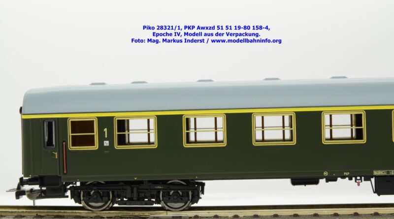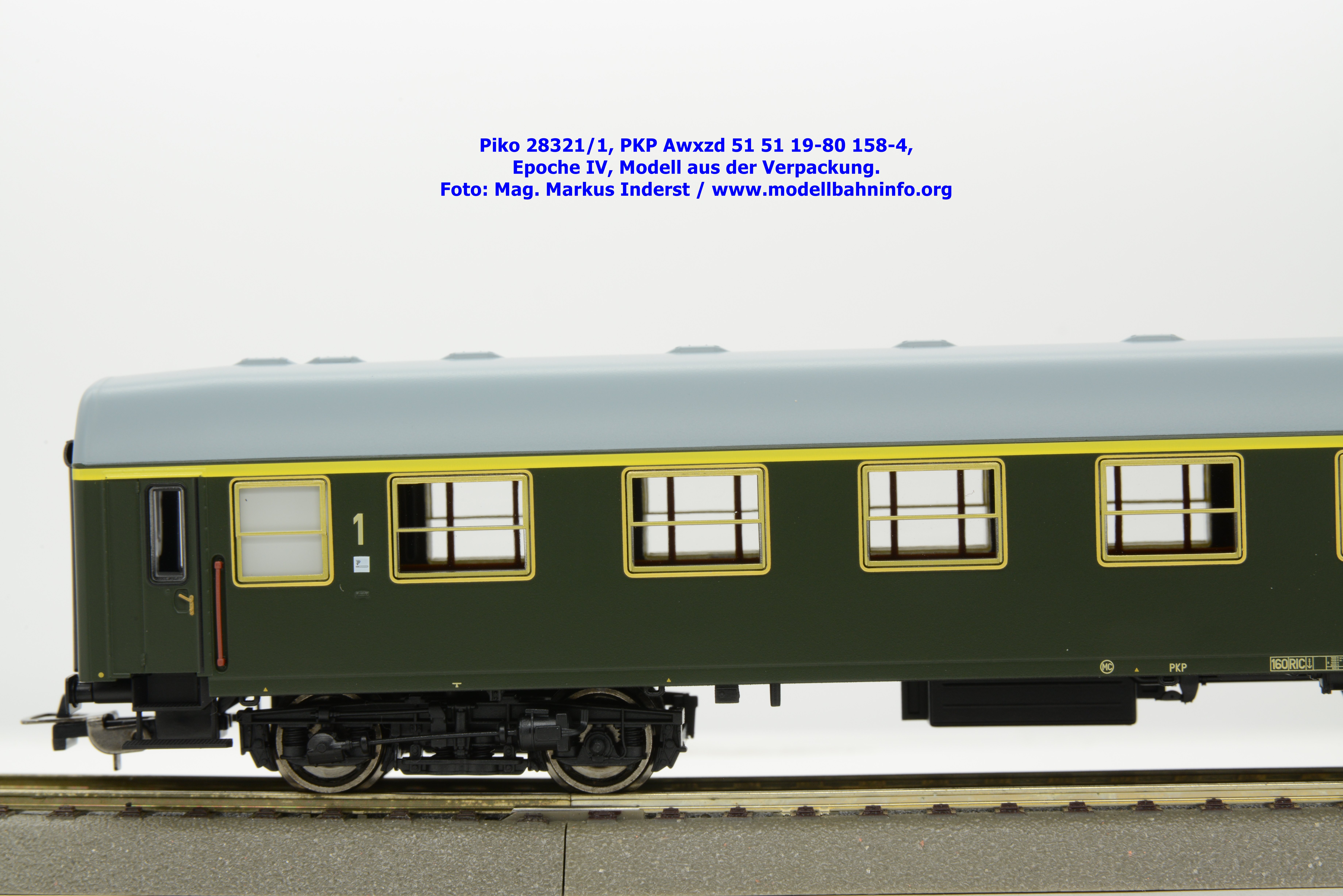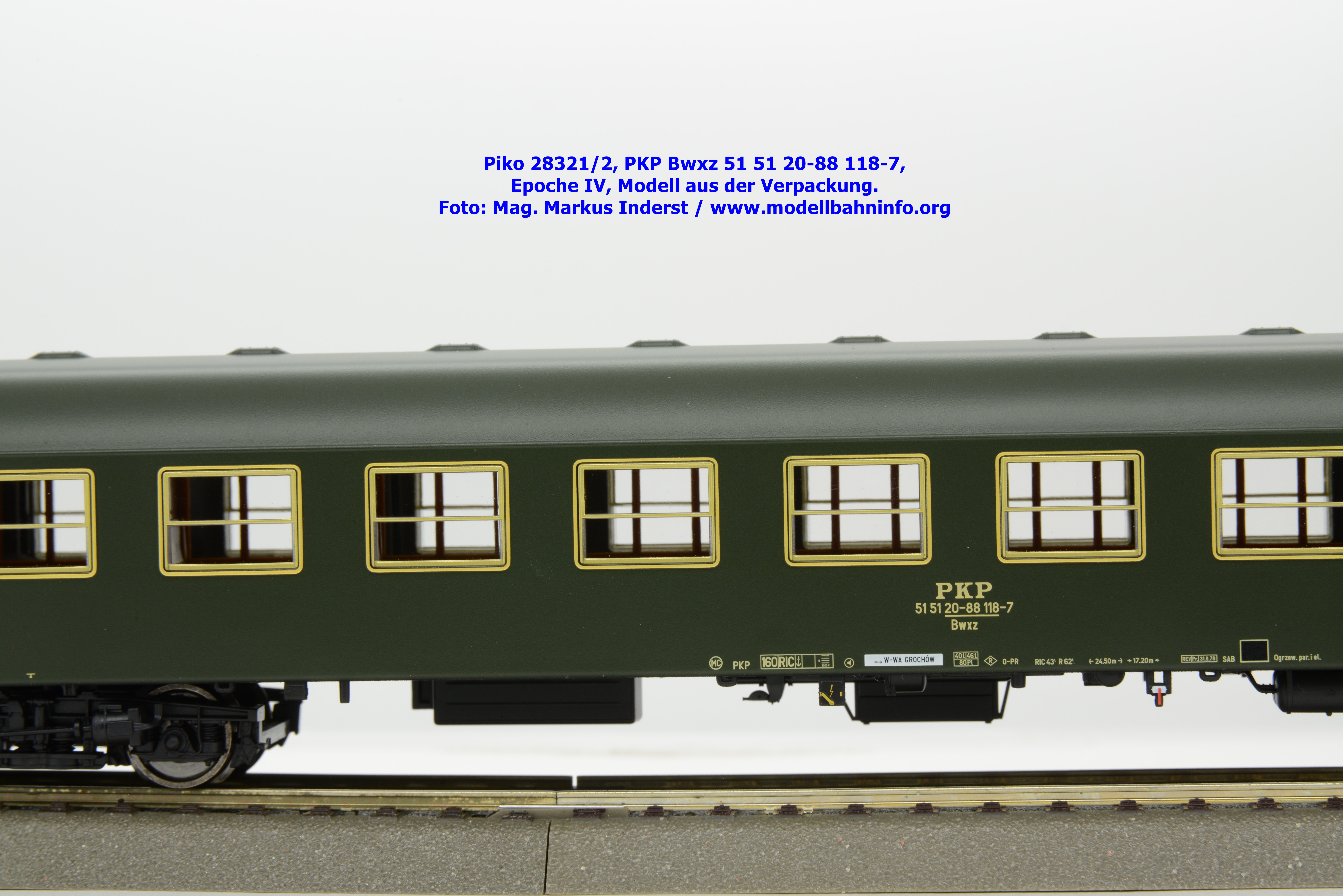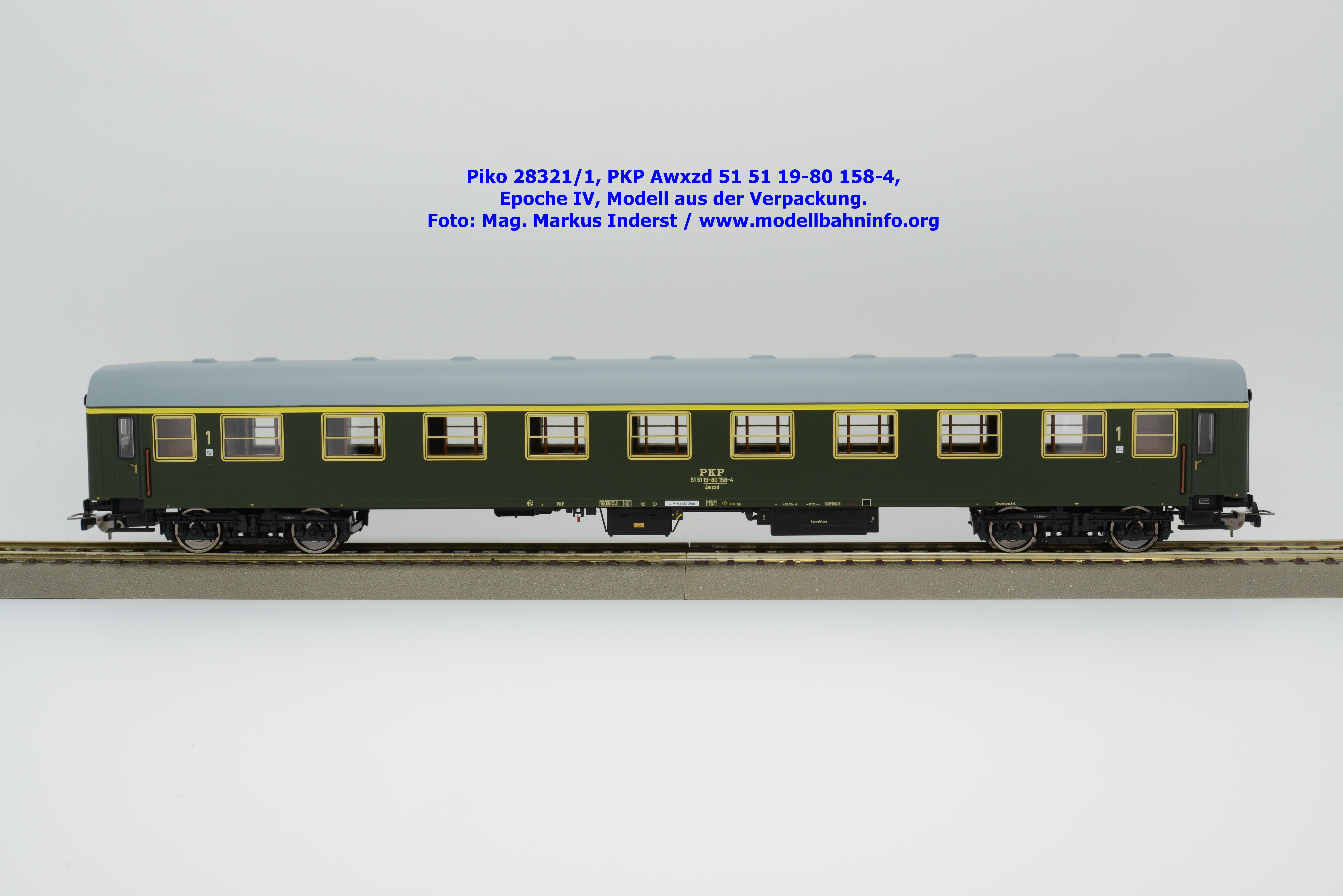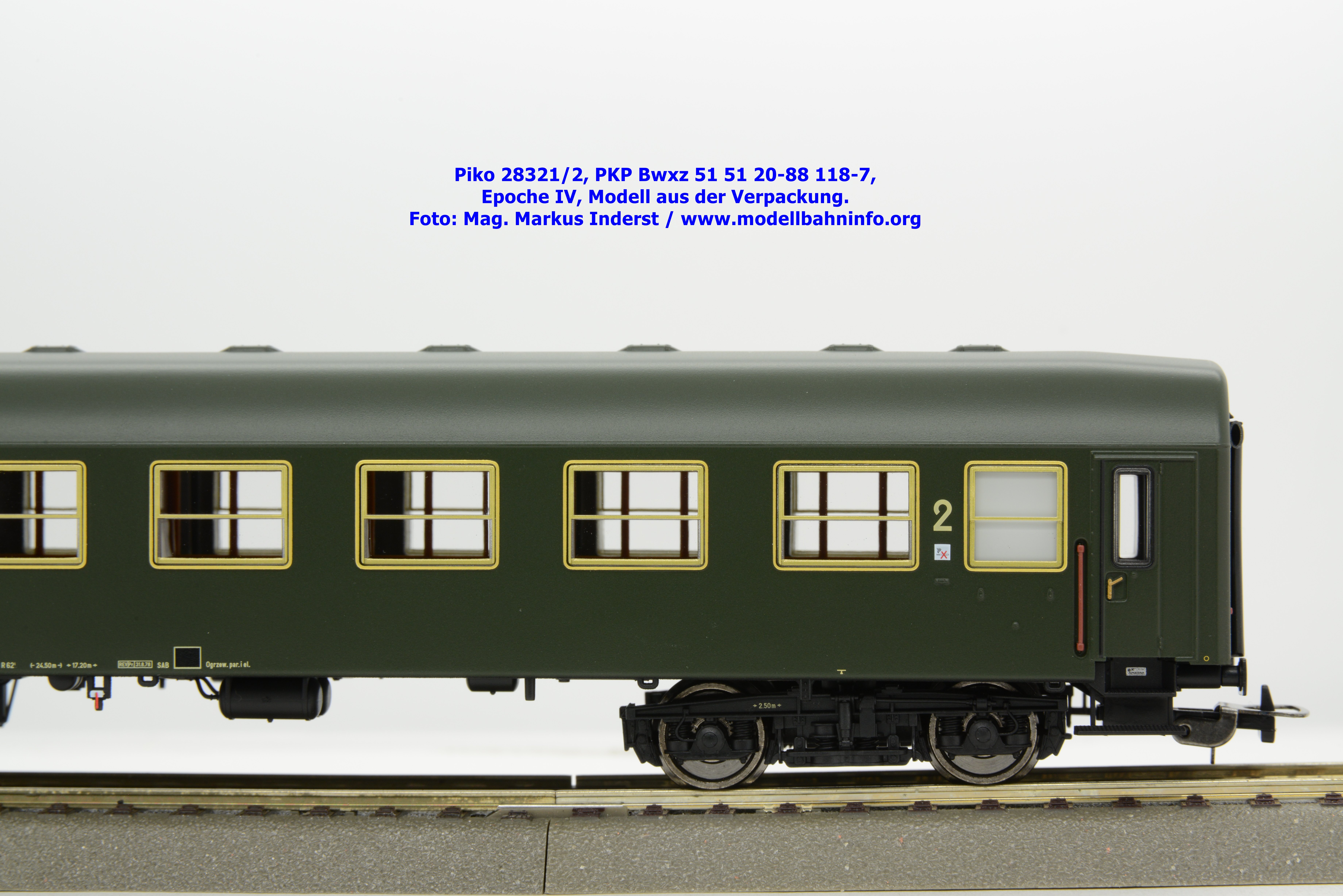 Für den internationalen Zugverkehr stehen diese beiden auslandsfähigen Schnellzugwagen der PKP zur Verfügung. Beide Wagen sind in dunkelgrüner Farbgebung ausgeführt und gehören der Epoche IV an. Somit passen beide Modelle zu den bisherigen Modellauflagen des Herstellers, wobei auch hierbei auf das Verhältnis von 1. zu 2. Klasse Wagen geachtet werden soll. Wie alle RIC-fähigen Schnellzugwagen sind auch diese der Heimatdienststelle Warschau-Grochów zugewiesen. Beide Wagen weisen den UVP von € 143,– auf.