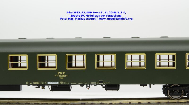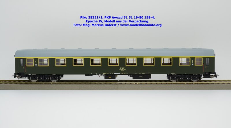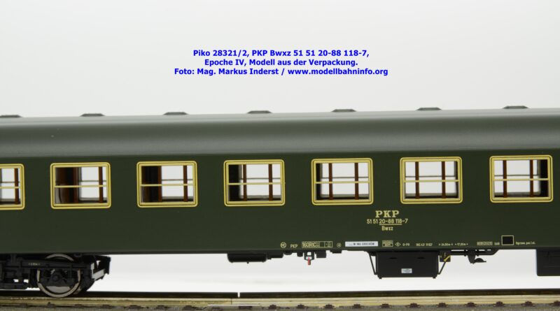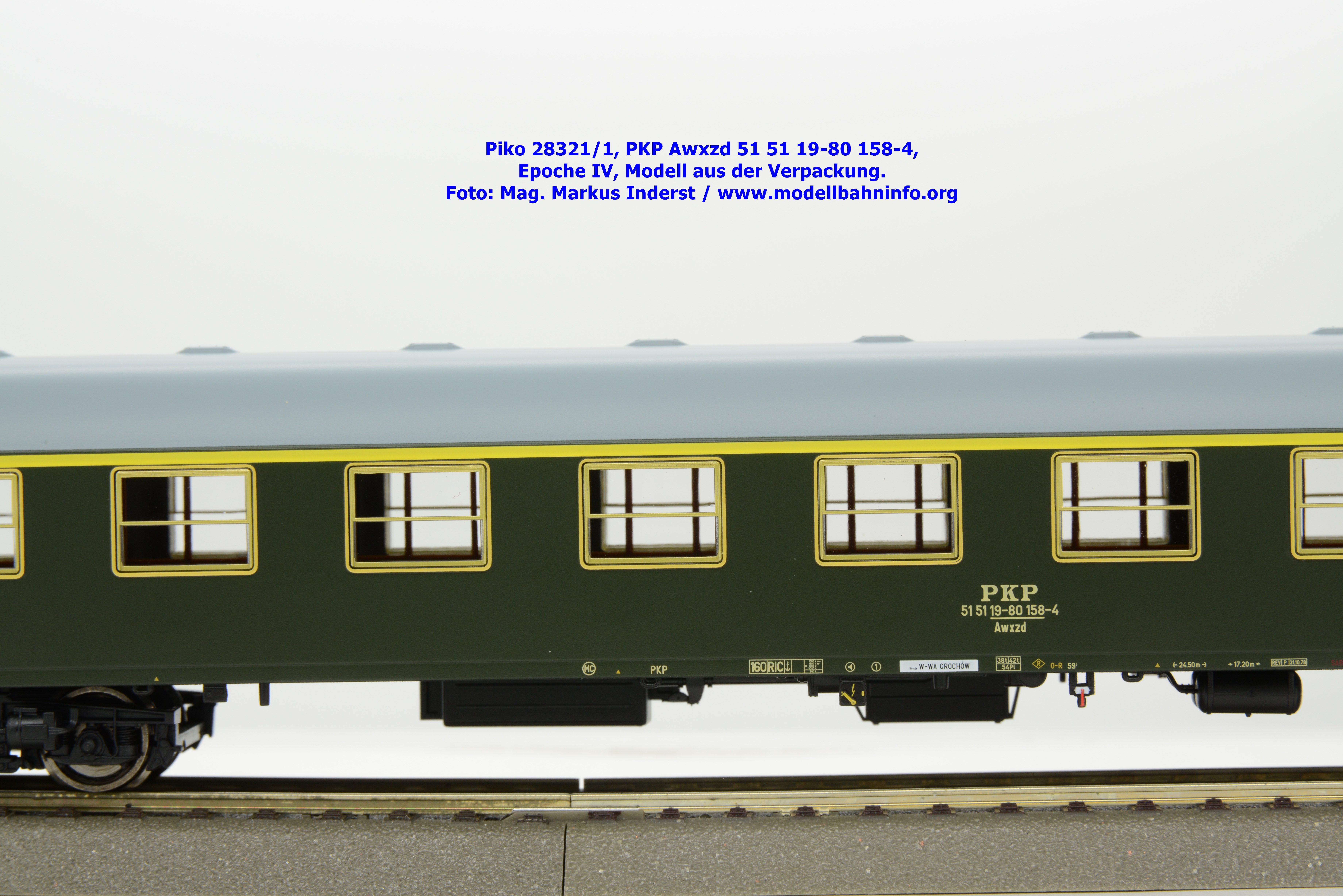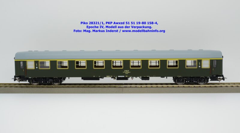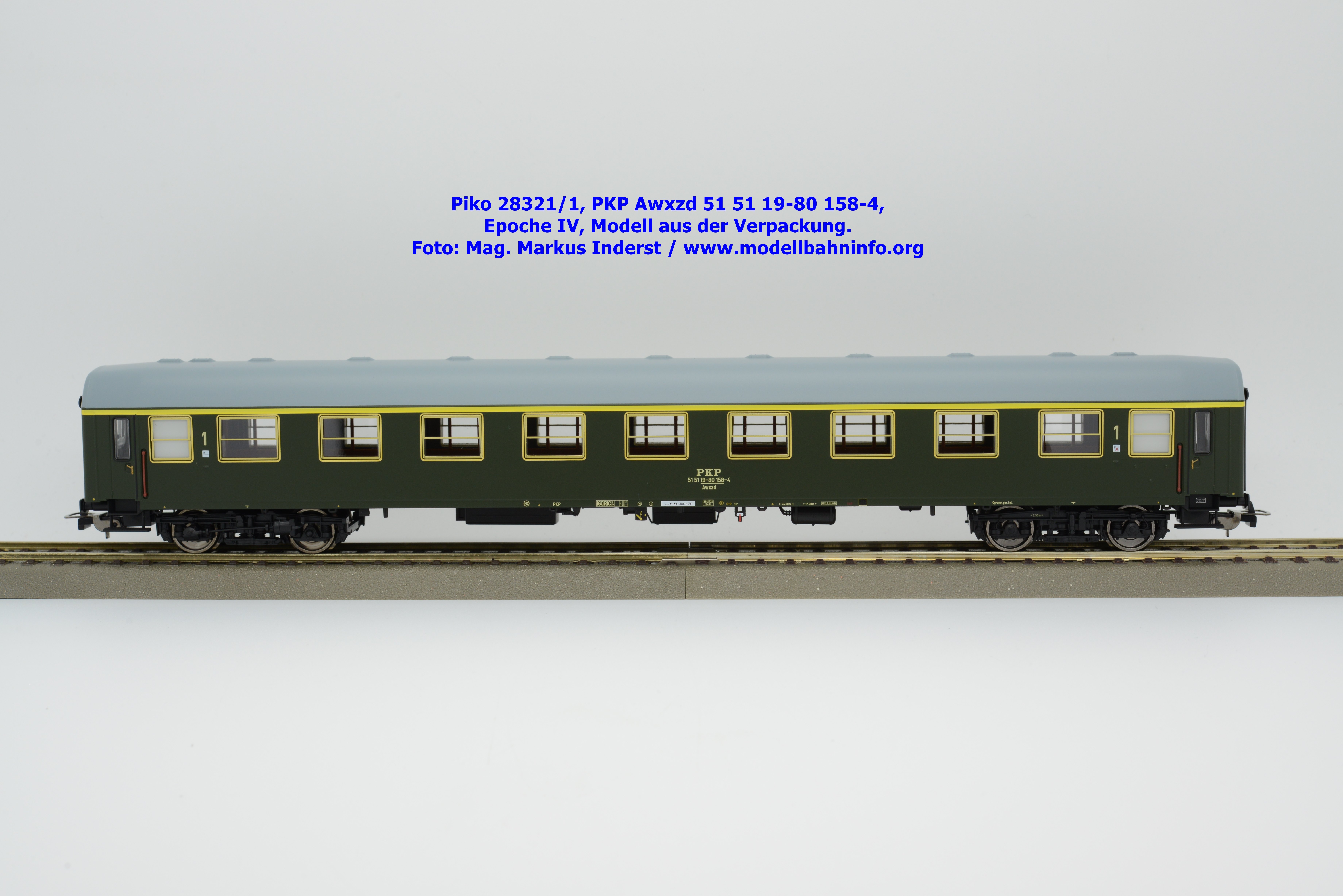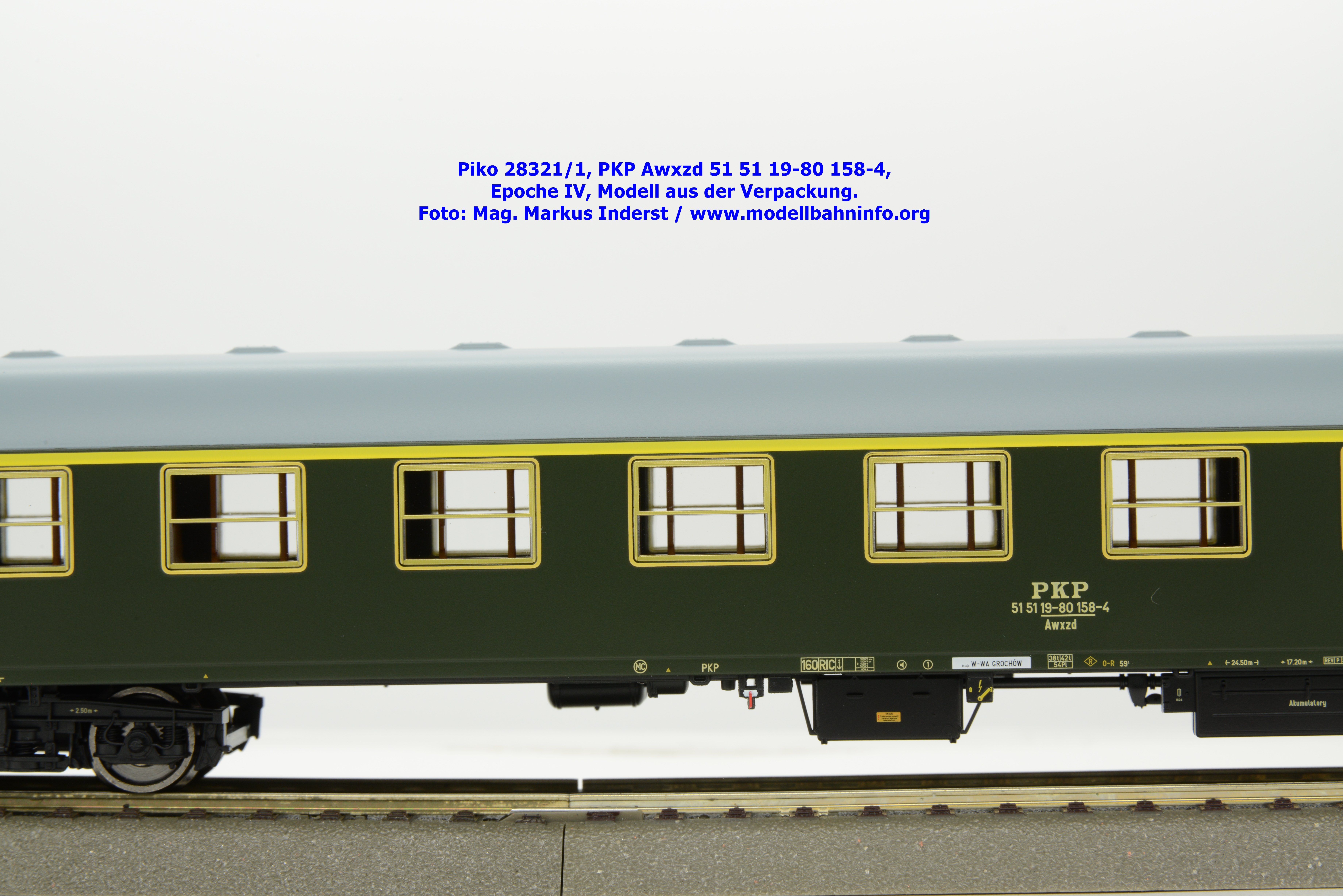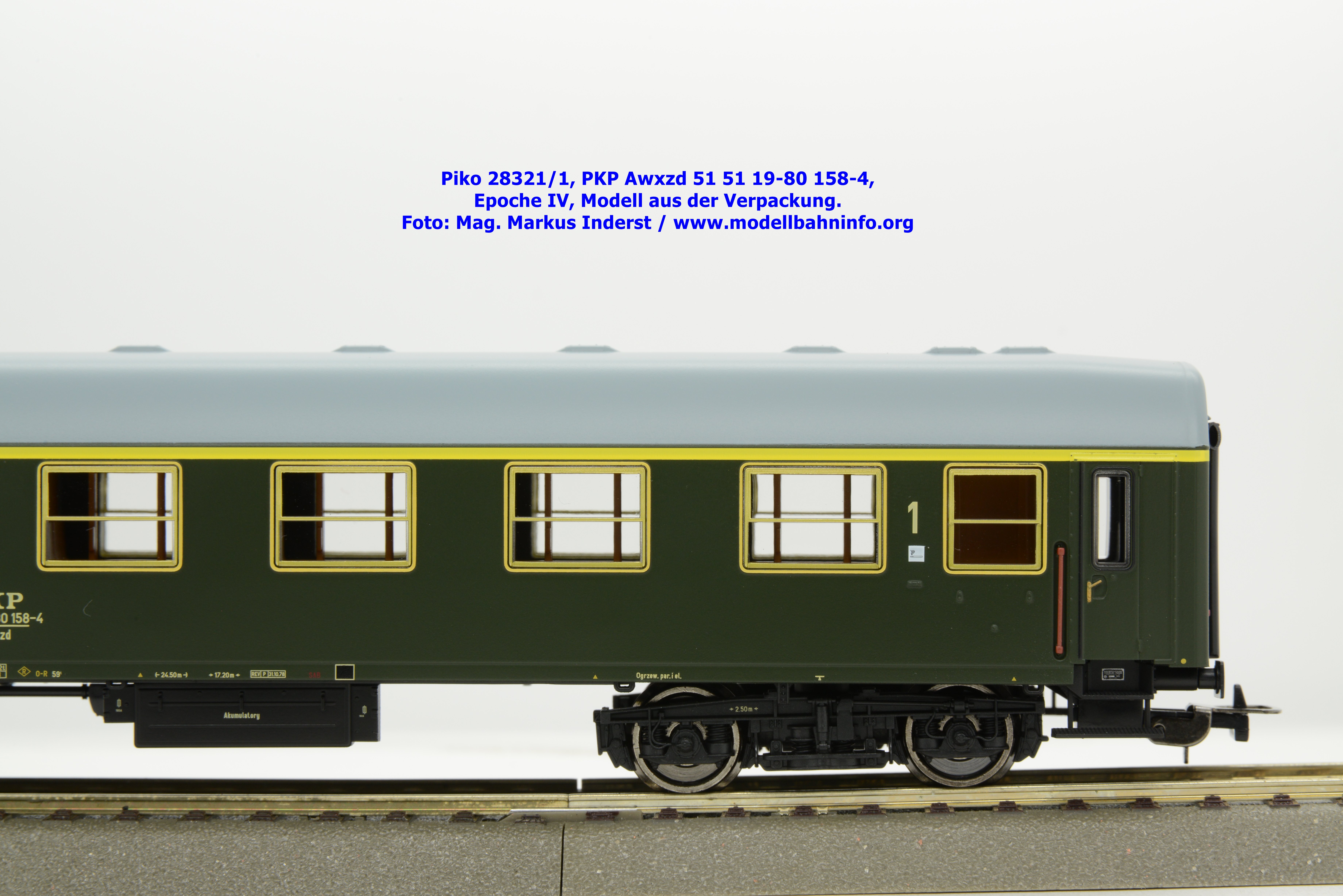Für den internationalen Zugverkehr stehen diese beiden auslandsfähigen Schnellzugwagen der PKP zur Verfügung. Beide Wagen sind in dunkelgrüner Farbgebung ausgeführt und gehören der Epoche IV an. Somit passen beide Modelle zu den bisherigen Modellauflagen des Herstellers, wobei auch hierbei auf das Verhältnis von 1. zu 2. Klasse Wagen geachtet werden soll. Wie alle RIC-fähigen Schnellzugwagen sind auch diese der Heimatdienststelle Warschau-Grochów zugewiesen. Beide Wagen weisen den UVP von € 143,– auf.