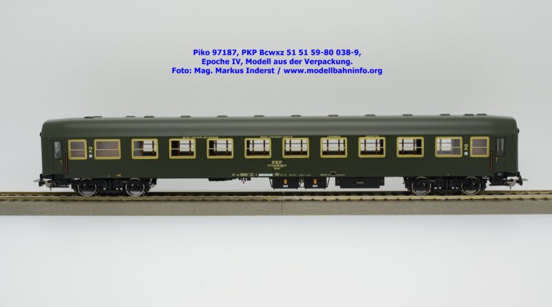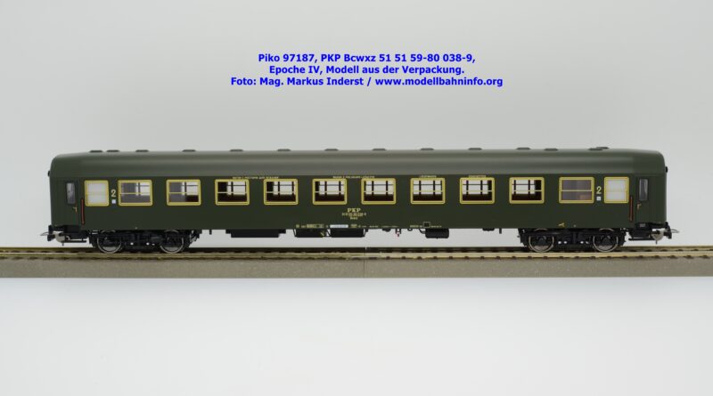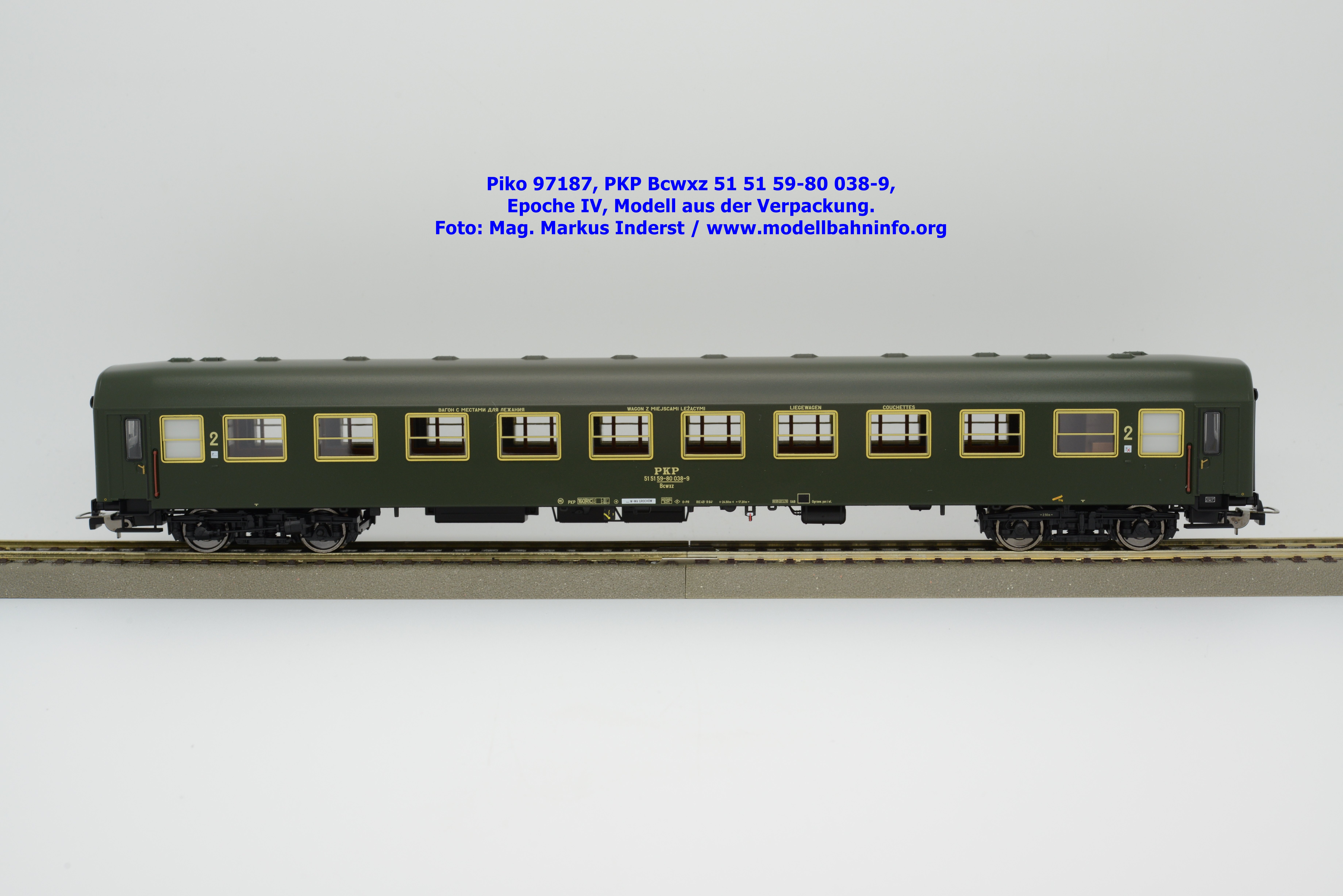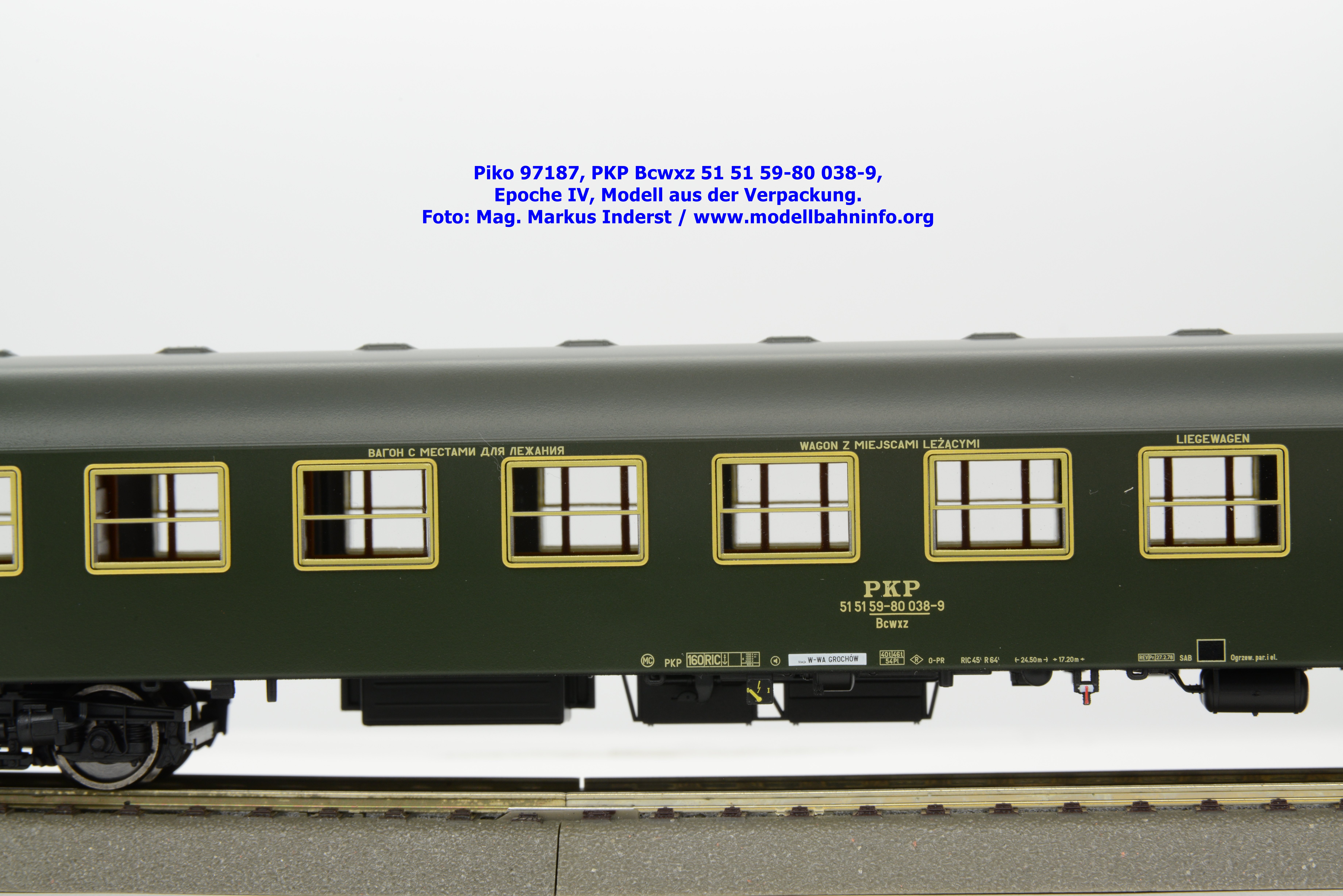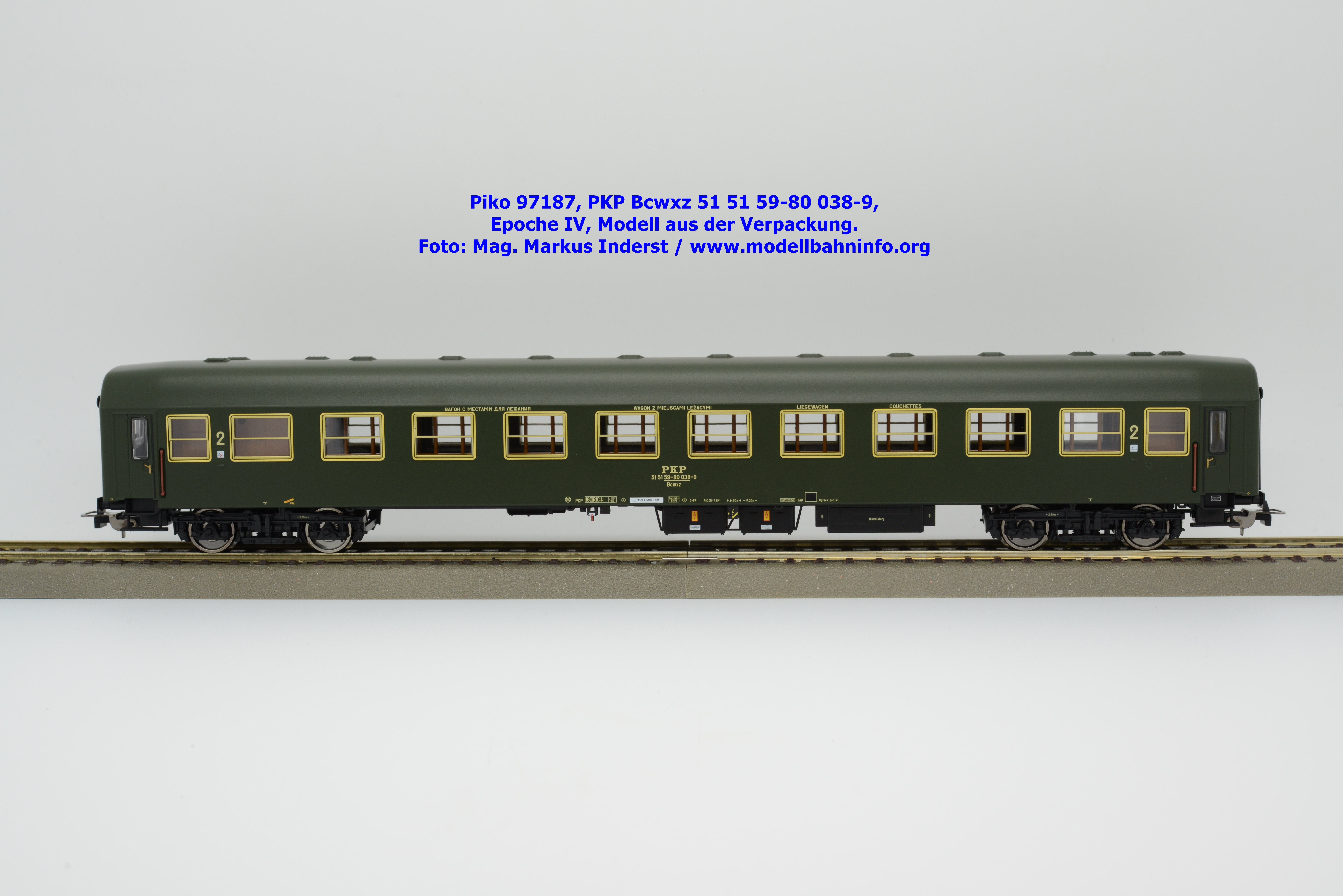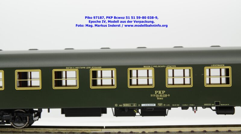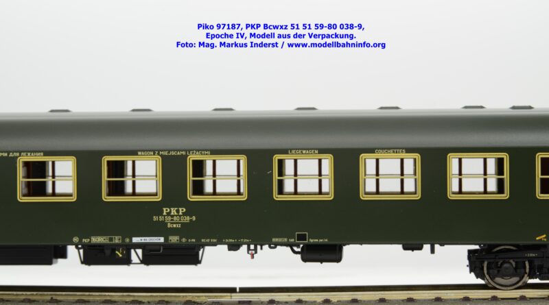 Der 2. Klasse Liegewagen wurde im Rahmen der neuen PKP-Modelle als Einzelwagen angekündigt und orientiert sich in der Aufmachung am vorigen Wagenset. Der grün lackierte Liegewagen ist mit der Gattungsbezeichnung Bcwxz und der Wagennummer 51 51 59-80 038-9 bedruckt. Heimatbahnhof ist wiederum Warschau-Grochów. Im Revisionsraster steht das Untersuchungsdatum REV Pr 27. 2.78. Das Modell ist zum UVP von € 71,99.