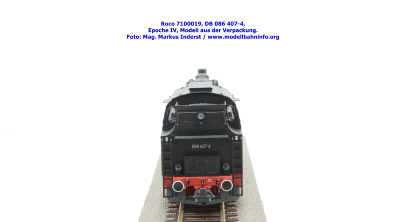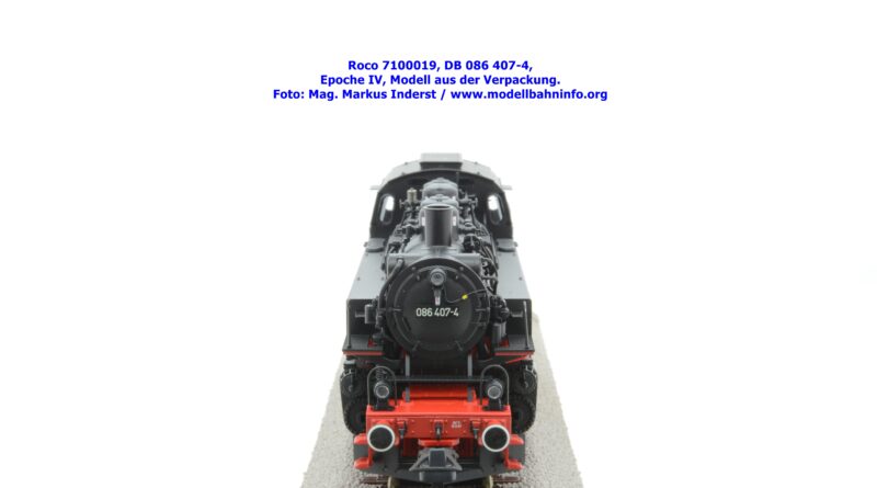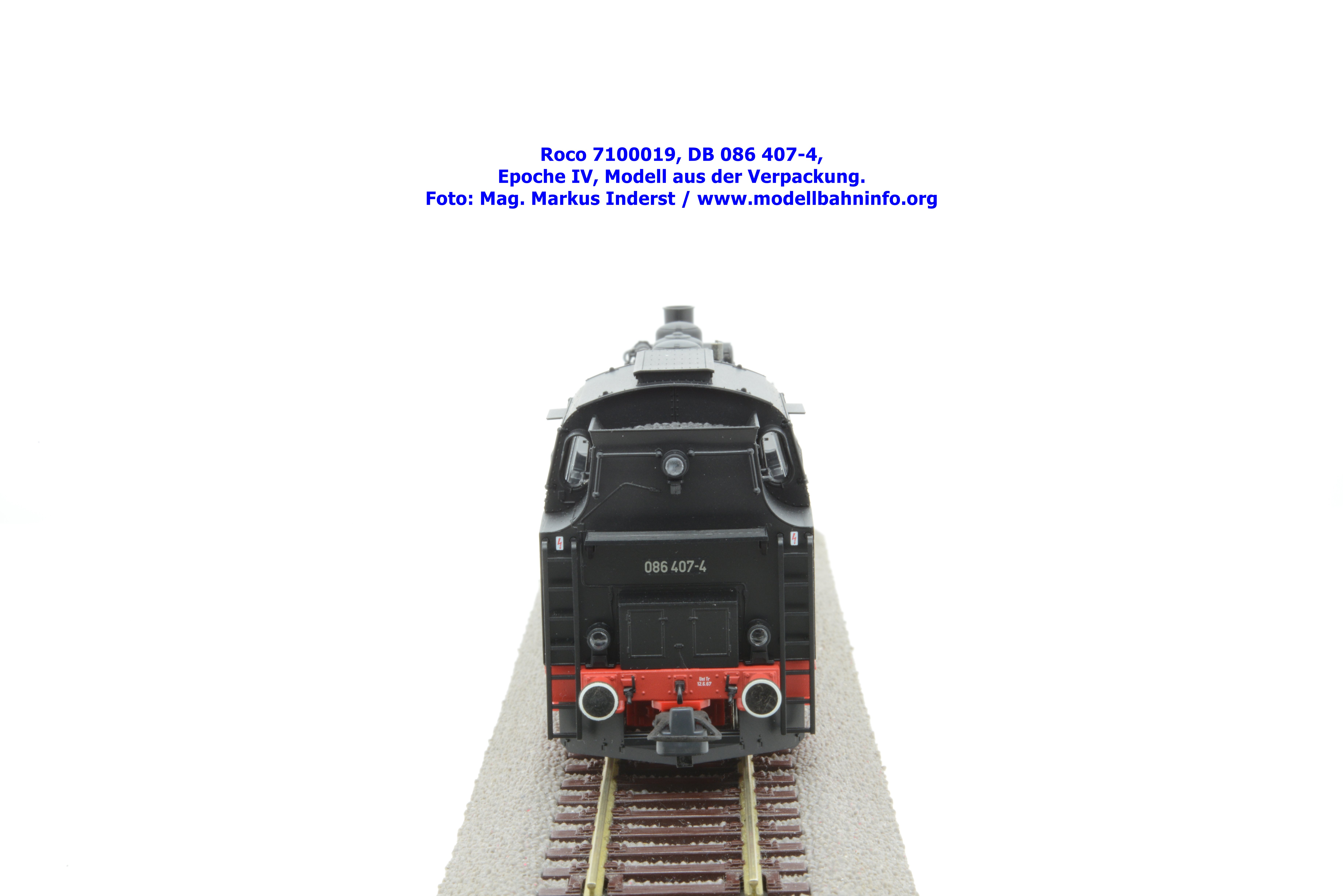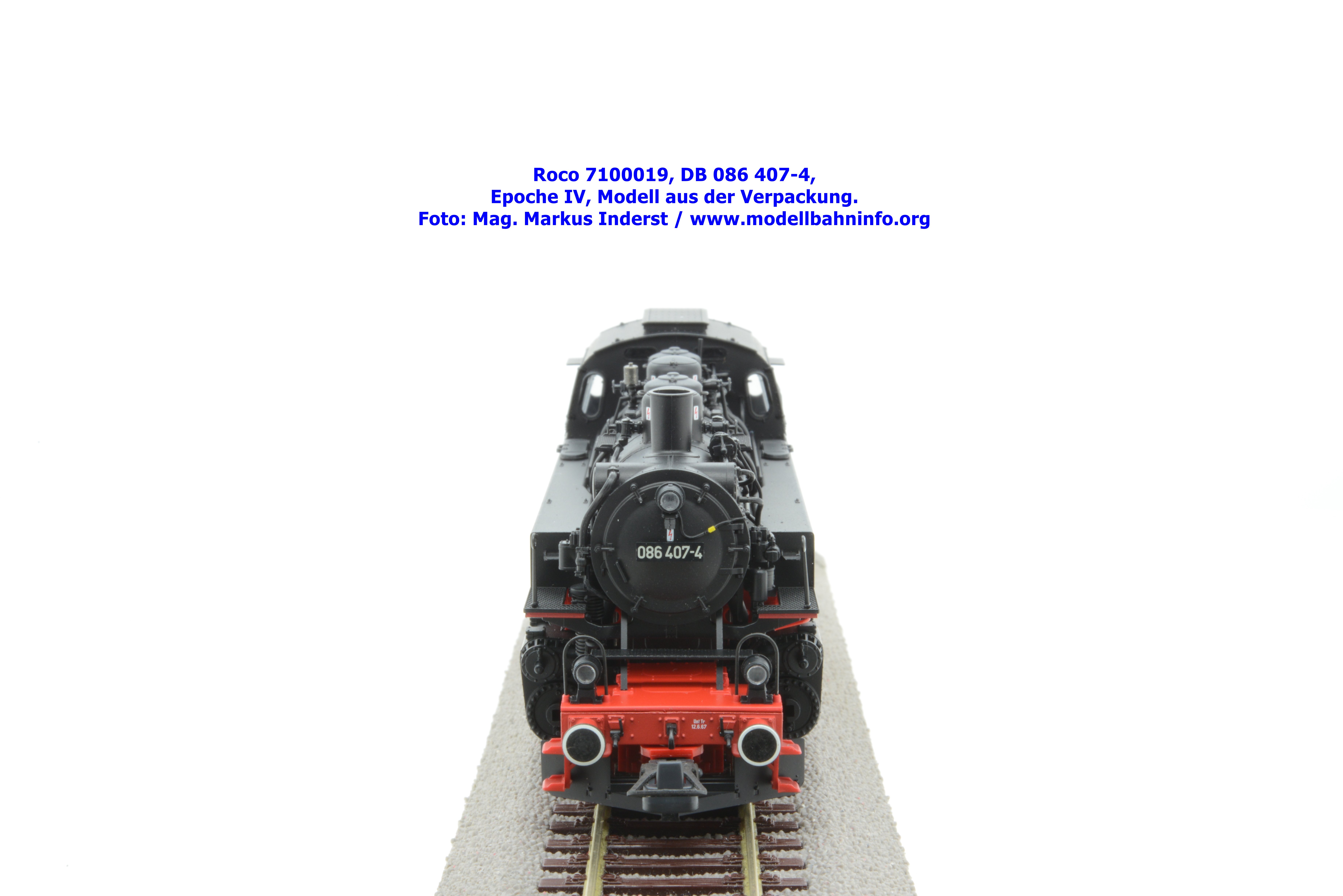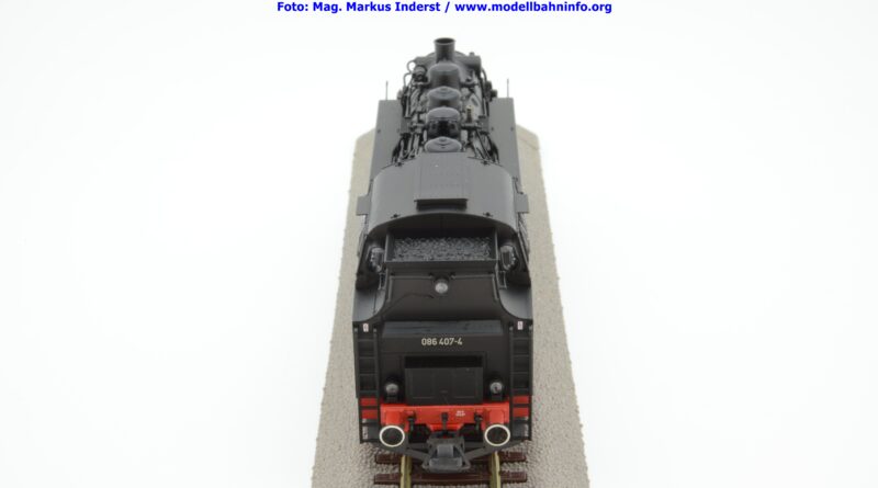 Mit dem vorliegenden Modell der 086 4097-4 der Deutschen Bundesbahn hat Roco erneut Sortimentspflege betrieben und eine weitere Formvariante dieser bekannten Tenderlokomoitive geschaffen. Die Änderungen betreffen erstmals die Ausführung mit geschweißten DB-Ersatzwasserkästen und den Schneepflug, dann den geschweißten Aufsatz beim Kohlekasten, die DB-Reflexlampen und die Ausführung der Vor- bzw. Nachlaufachse mit neun Speichen. Roco hat als Erstmodell eben die 086 407-4 als Modell nachgebildet, welche beim Bw Hof in der BD Regensburg zu Hause war. Die Untersuchungsaten der Lok stehen auf dem Vorschuh und sind mit „Unt. Tr 12. 6.67“. Roco hat die Formvariante wie gewohnt in drei Ausführungen produziert. Die analoge Gleichstrom-Ausführung ist unter der Artikelnummer 7100019 und zum UVP von € 369,90. Die digitale Zweileiterausführung wird unter der Artikelnummer 7110019 und zum UVP von € 469,90 geführt, die digitale Dreileiter-Wechselstrom-Ausführung wird unter der Artikelnummer 7120019 geführt.