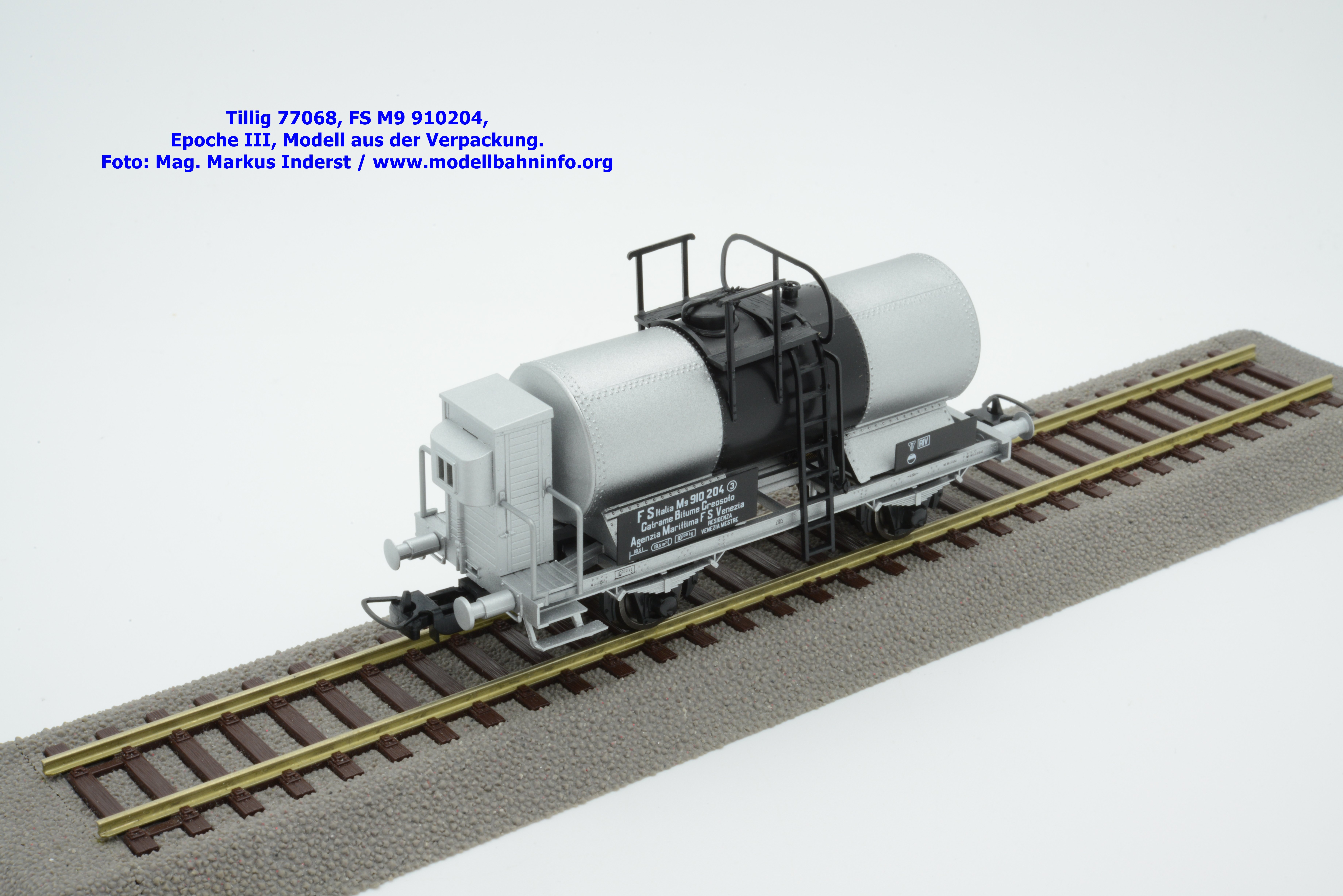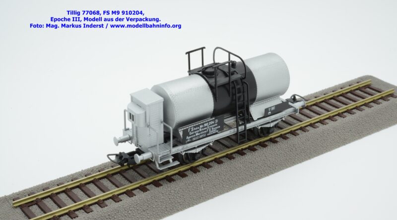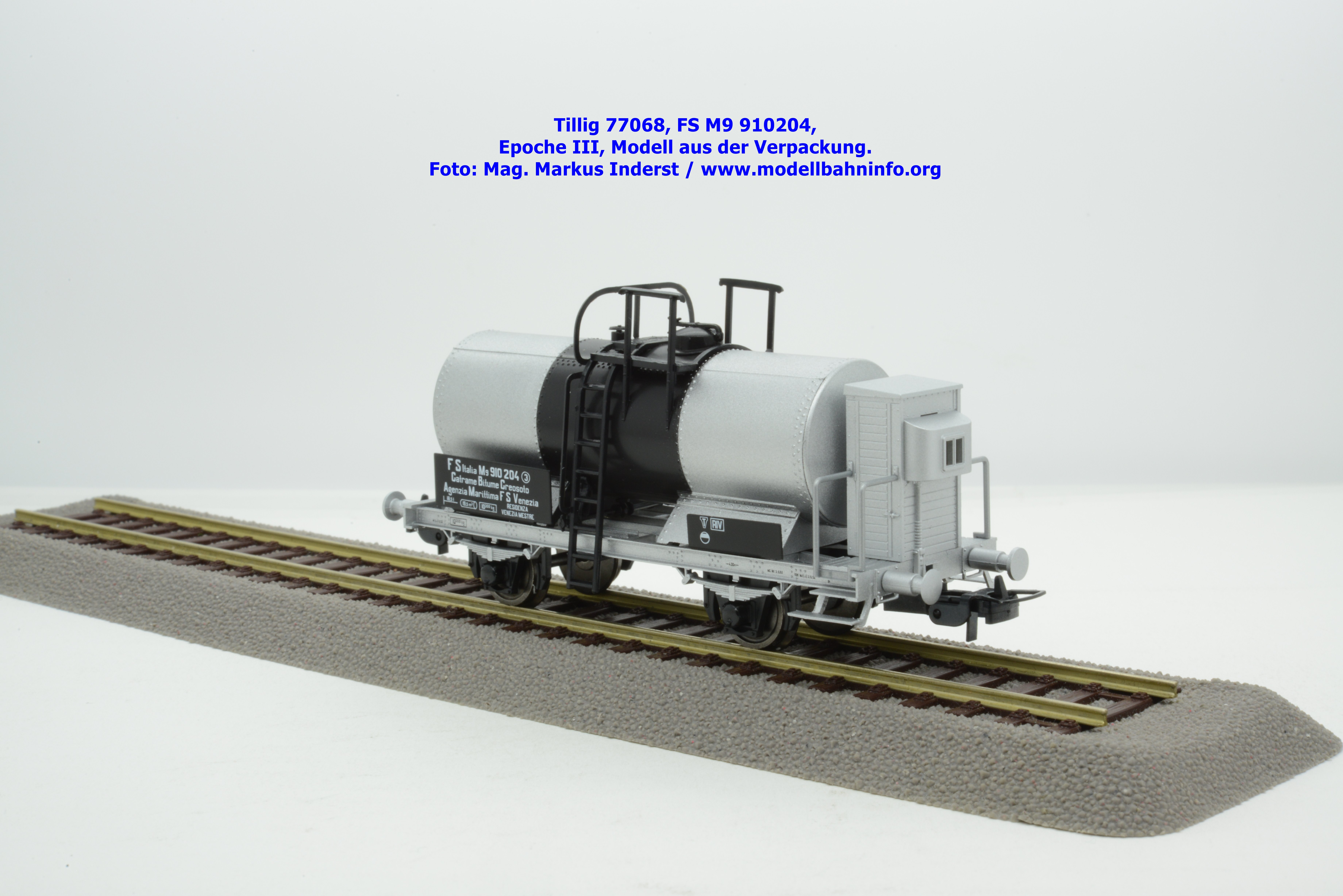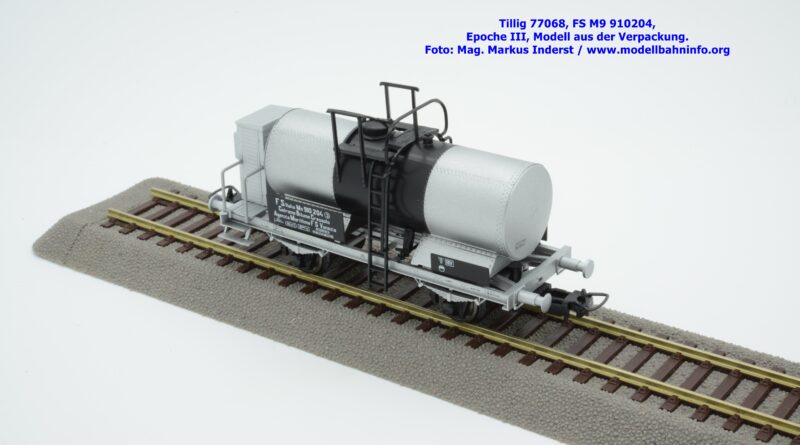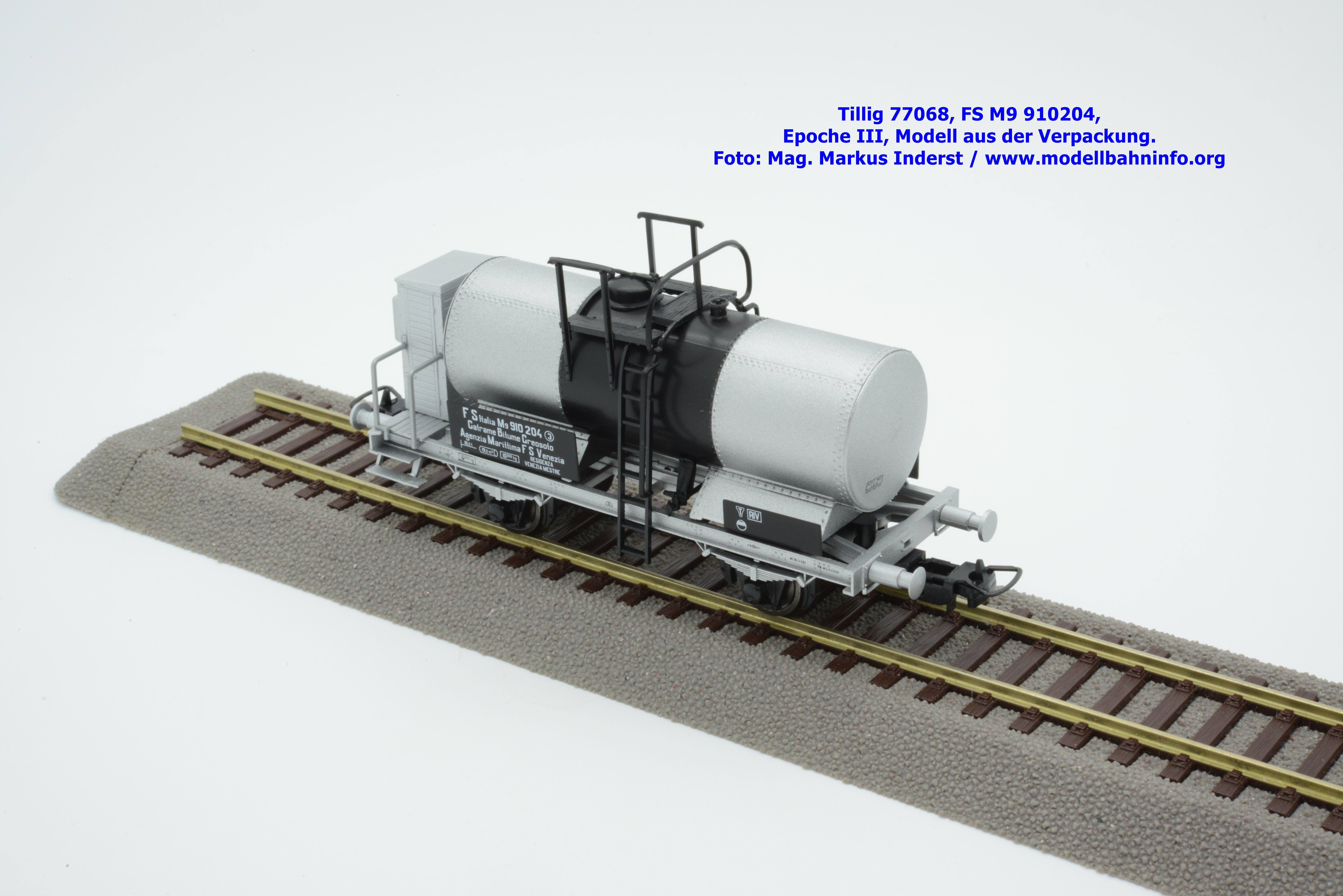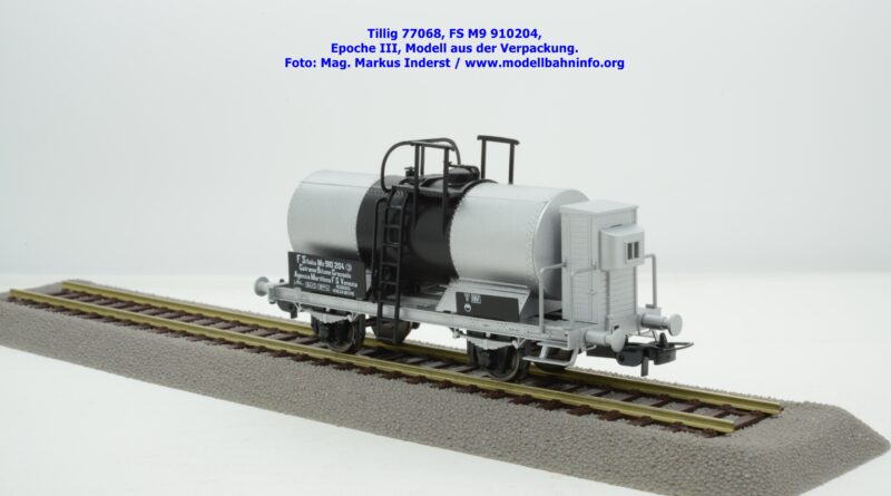 Die Herbstneuheiten 2025 beinhalten einen zweiachsigen Kesselwagen älterer Bauform für die Italienischen Staatsbahnen FS. Der Kesselwagen ist mit den Anschriften M9 910204 versehen und dient scheinbar dem Transport von Bitumen. Als Heimatbahnhof ist Venedig angeschrieben. Im Revisionsraster stehen die Untersuchungsdaten mit MC 80 3. 5.53. Der Wagen ist dem RIV-Austauschverhältnis unterstellt. Das Modell ist zum UVP von € 44,90 belegt.