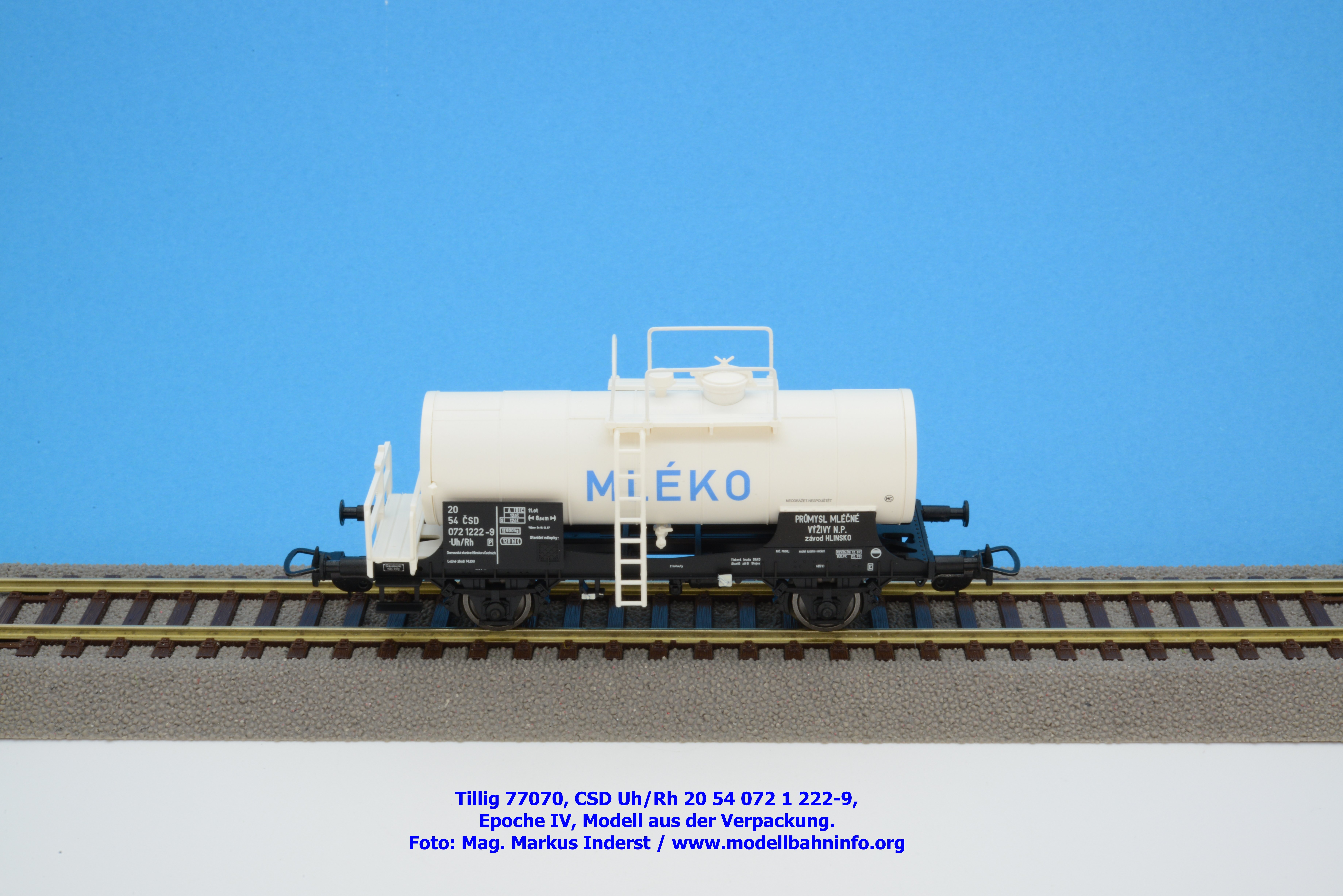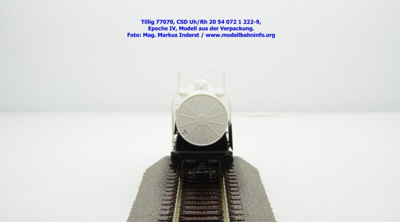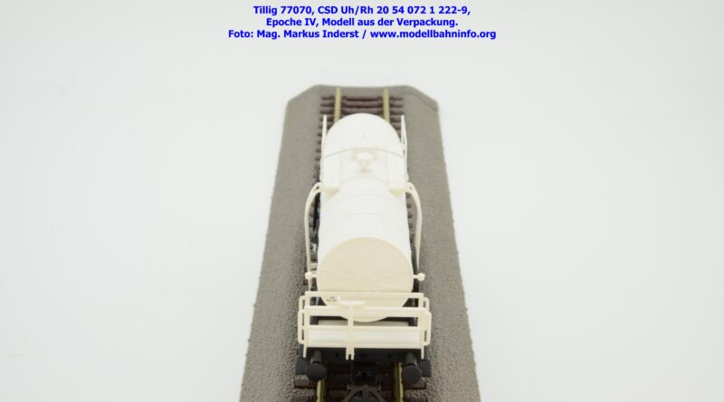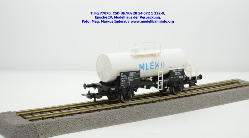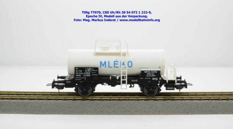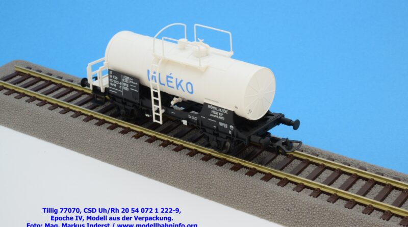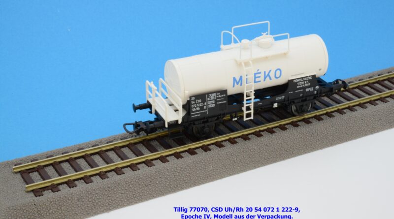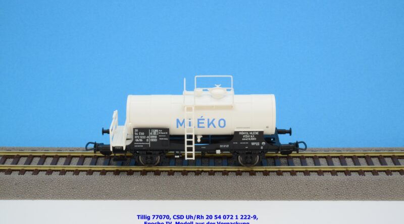 Im Neuheitenprogramm findet sich ein Kesselwagen der CSD, der ausschließlich für den Transport von Milch Verwendung findet. Ein derartiges Modell hat Tillig bereits vor ca. zehn Jahren aufgelegt, das damalige Modell war in der Ausführung der Epoche III gehalten, zudem war der Wagen auch RIV-fähig. Die Farbe des Kessels war silbern. Das Pendant für die Epoche IV findet sich eben im Neuheitenprogramm 2025, wobei man anhand des abgedruckten Bildes den Eindruck gewinnt, ein ähnliches Modell mit silbernen Kessel zu bekommen. Jedoch ist der Tankaufbau in weißer Farbgebung gehalten und die Wagennnummer 20 54 072 1 222-9P mit der Gattungsbezeichnung Uh/Rh verweist auf einen Inlandswagen. Das erklärt dann auch das fehlende RIV-Abzeichen. Das solide Modell für den Milchtransport gelangte gegen Ende Jänner 2026 in den Fachhandel. Tillig hat für das Modell einen UVP von € 55,50 festgelegt.