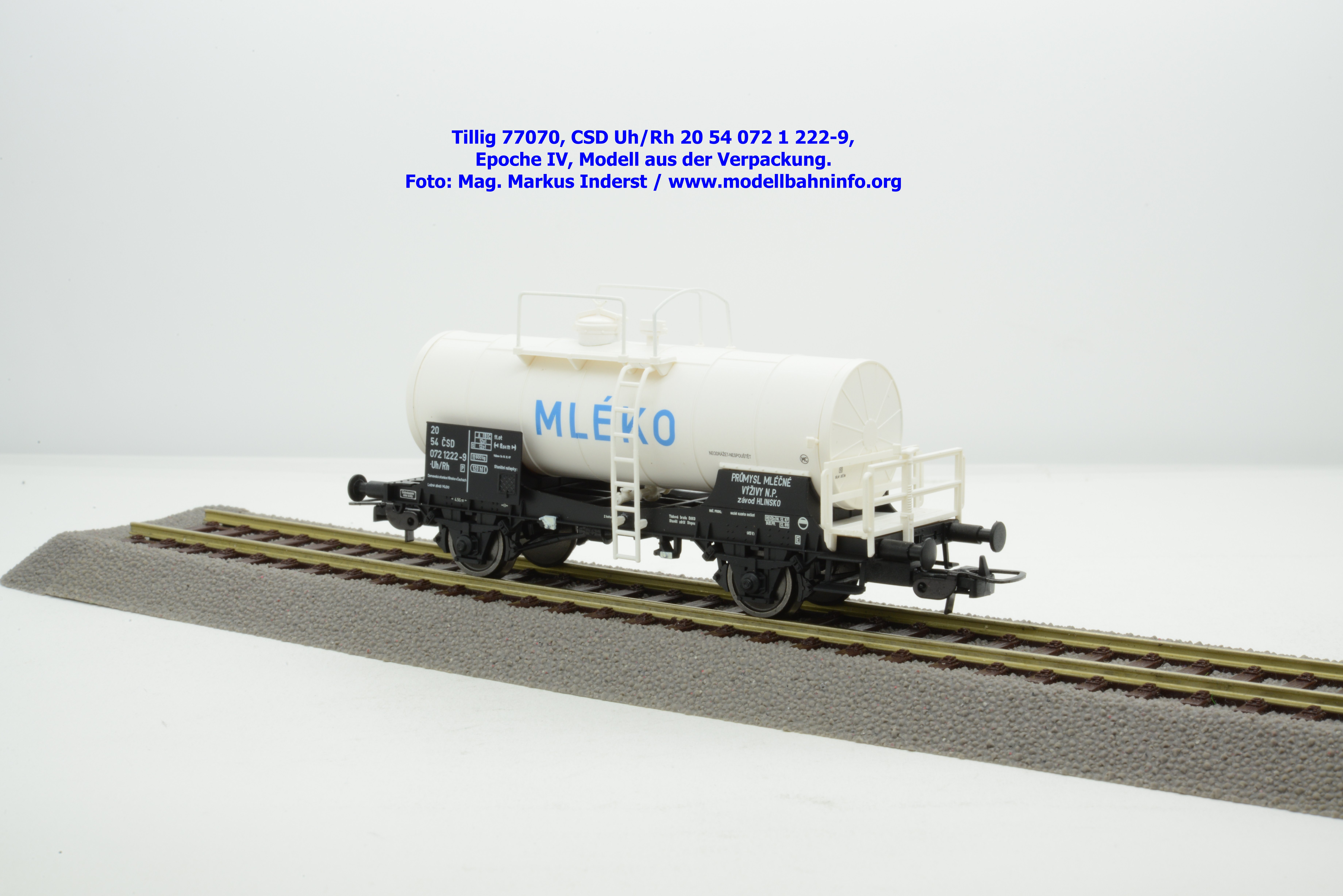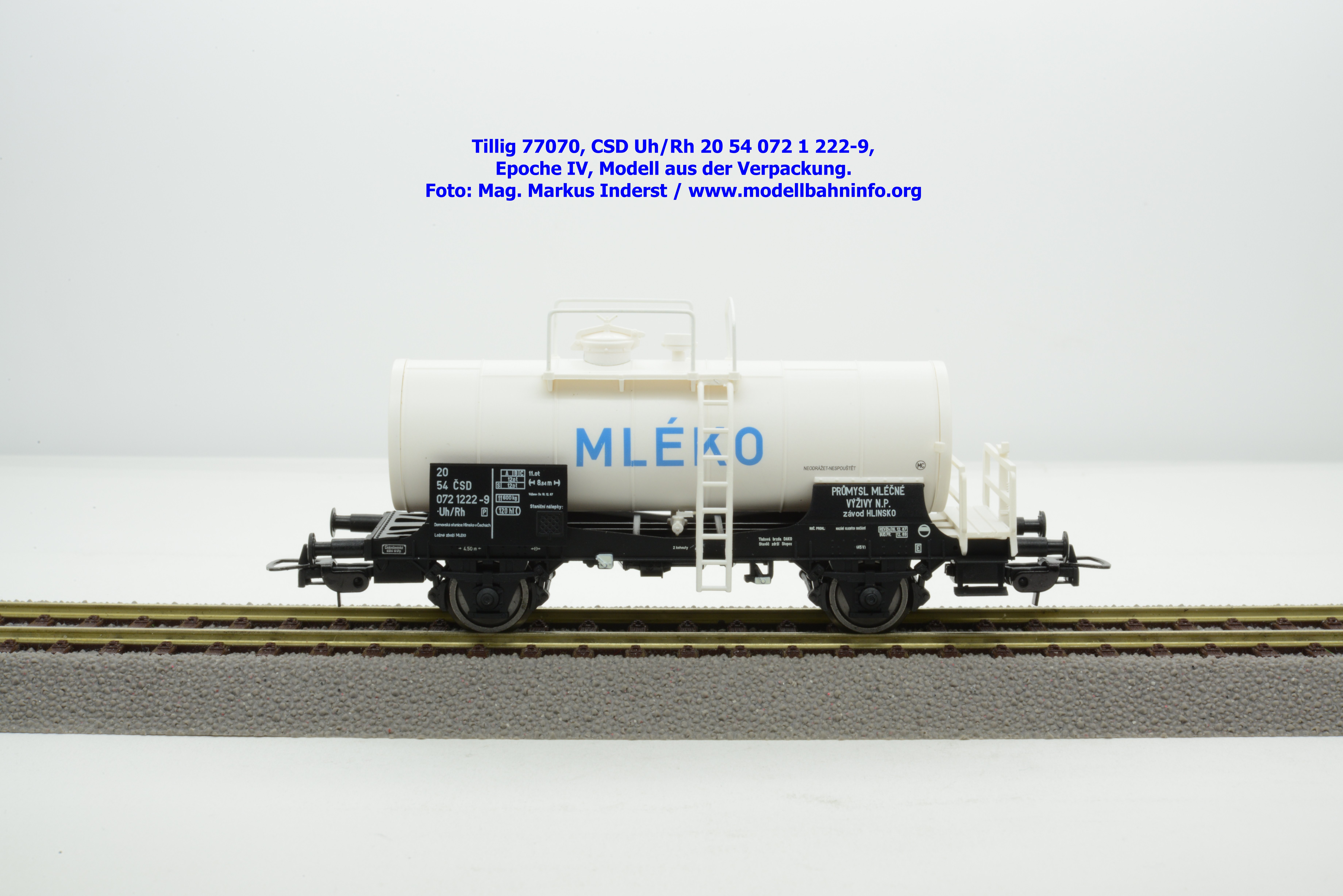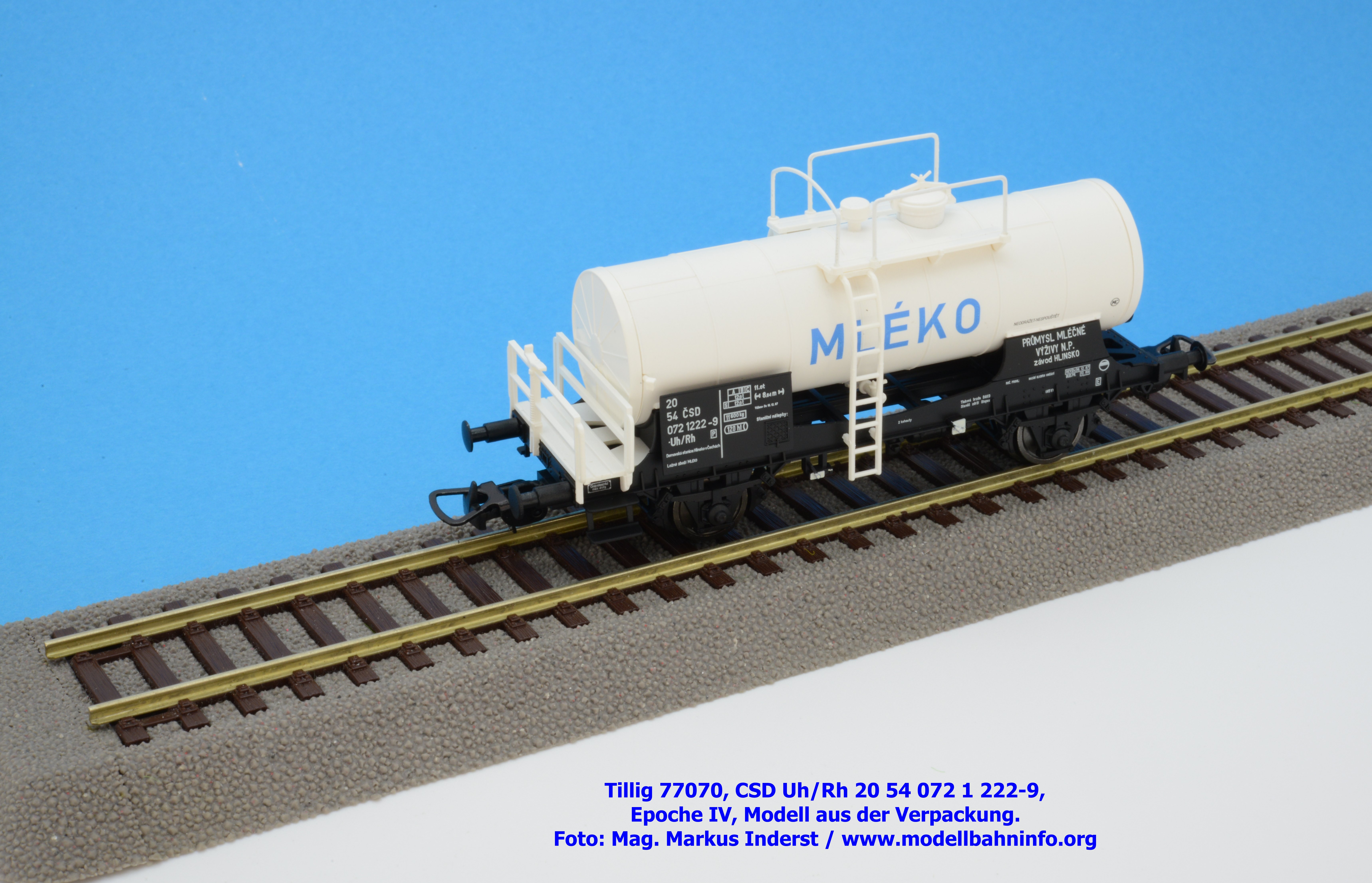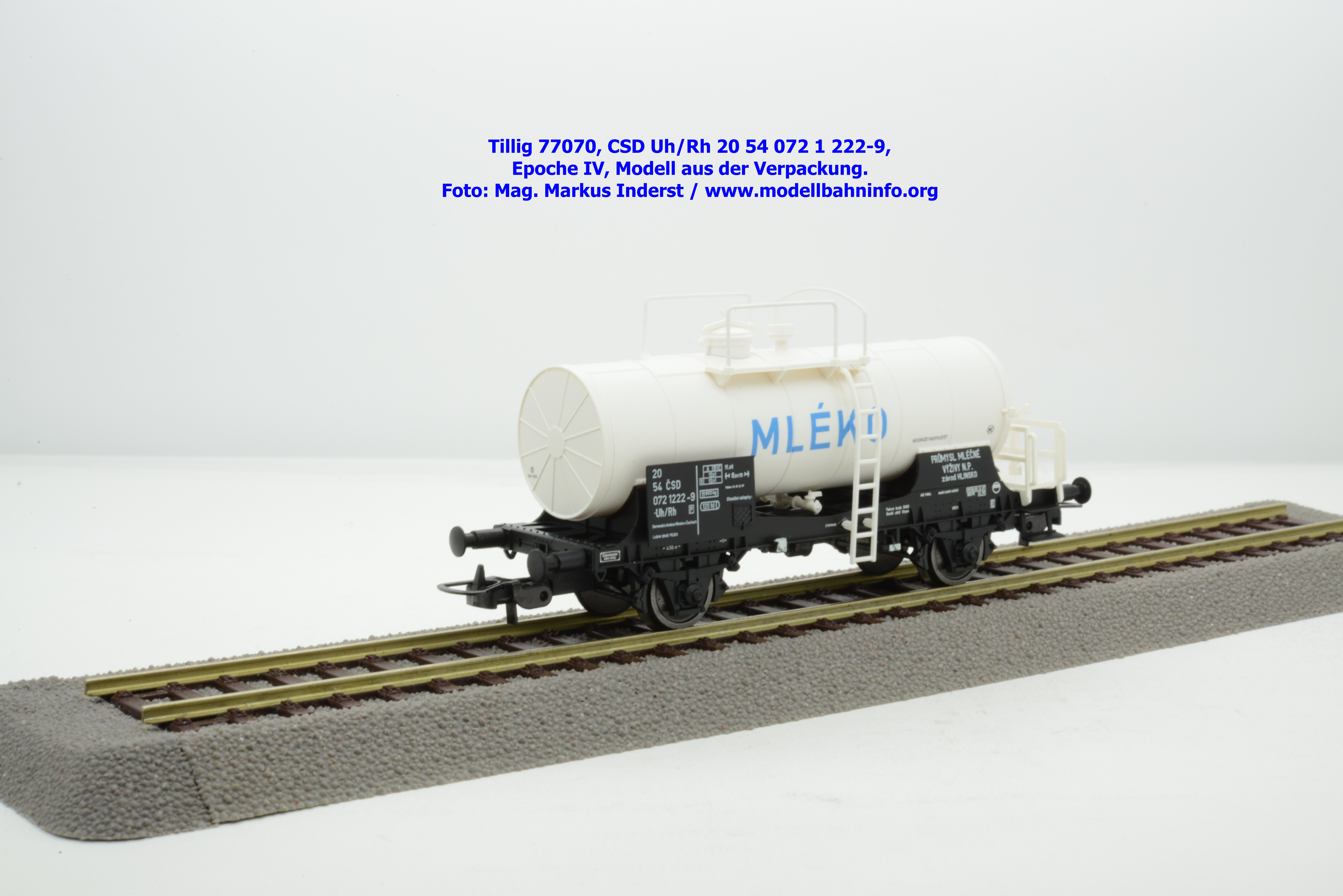 Im Neuheitenprogramm findet sich ein Kesselwagen der CSD, der ausschließlich für den Transport von Milch Verwendung findet. Ein derartiges Modell hat Tillig bereits vor ca. zehn Jahren aufgelegt, das damalige Modell war in der Ausführung der Epoche III gehalten, zudem war der Wagen auch RIV-fähig. Die Farbe des Kessels war silbern. Das Pendant für die Epoche IV findet sich eben im Neuheitenprogramm 2025, wobei man anhand des abgedruckten Bildes den Eindruck gewinnt, ein ähnliches Modell mit silbernen Kessel zu bekommen. Jedoch ist der Tankaufbau in weißer Farbgebung gehalten und die Wagennnummer 20 54 072 1 222-9P mit der Gattungsbezeichnung Uh/Rh verweist auf einen Inlandswagen. Das erklärt dann auch das fehlende RIV-Abzeichen. Das solide Modell für den Milchtransport gelangte gegen Ende Jänner 2026 in den Fachhandel. Tillig hat für das Modell einen UVP von € 55,50 festgelegt.