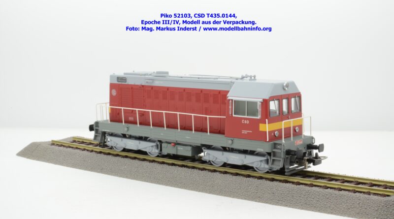 Piko entwickelt auch diese Modellkonstruktion weiter und legt als entsprechende Ausführung eine rot/gelb-lackierte Diesellokomotive, welche die Loknummer 720 046-2 trägt und beim Depot Pilsen stationiert ist. Neben der Computernummer ist an den Drehgestellen sowie an der Pufferbrust noch die alte Betriebsnummer T435.0046 angeschrieben. Am Führerhaus steht das Datum Ng. 16.10.89. Das davor stehende Wort deutet auf eine Verwiegung zu diesem Datum statt. Piko bietet das Modell in drei Modellausführungen an. Die Analogversion (52431) hat den UVP von € 190,–. Die Gleichstrom-Ausführung mit Decoder mit der Artikelnummer 52432 kostet UVP € 299,–, gleich teuer ist die Wechselstrom-Ausführung mit Loksound (Artikelnummer 52433).