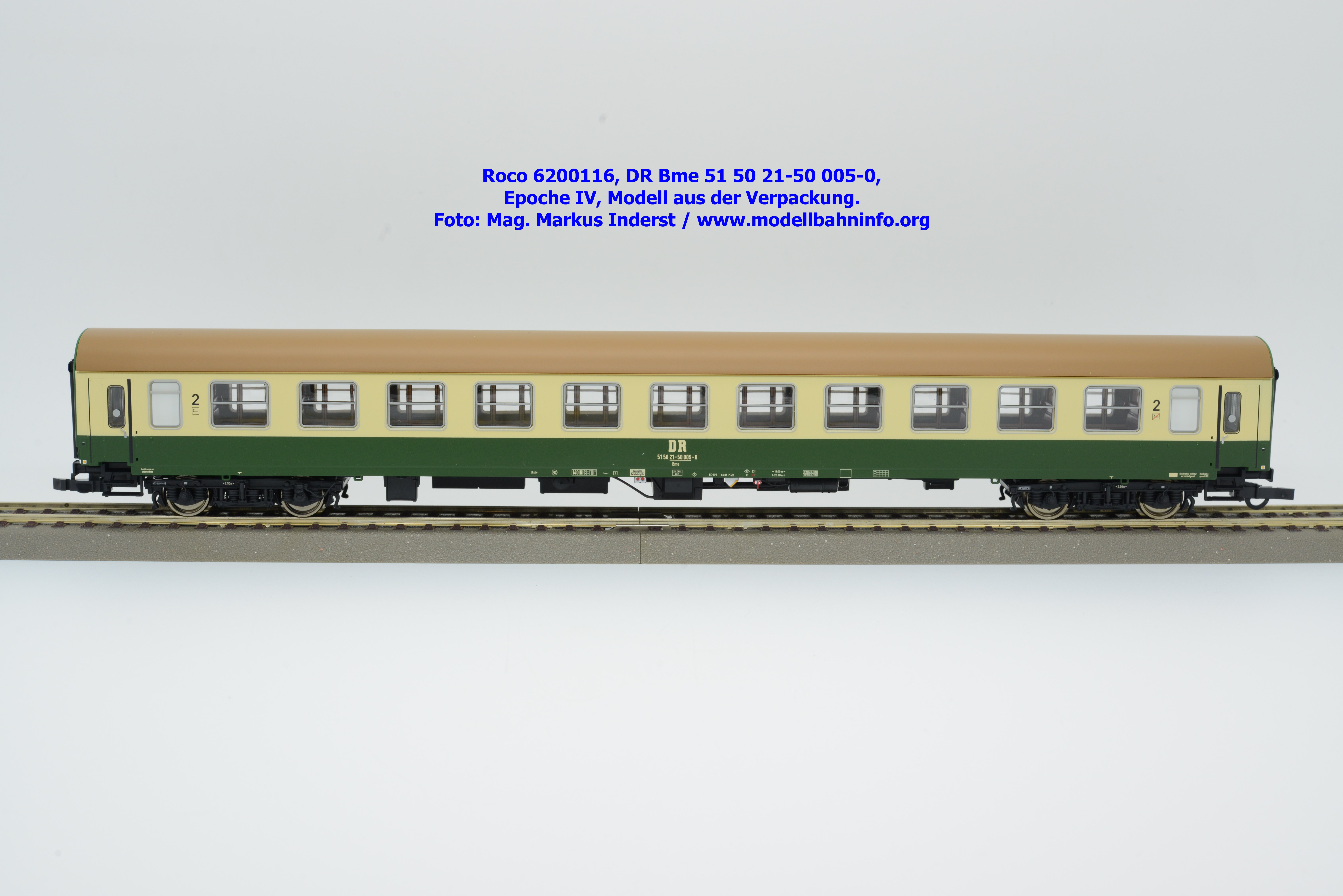 Gleichzeitig zum 1./2. Klasse Schnellzugwagen gelangte auch der erste von beiden 2. Klasse Schnellzugwagen in den Fachhandel. Das Modell trägt die Anschriften Bme 51 50 21-50 005-0 bei gleichen Angaben zur Heimatdienststelle. Die Untersuchungsdaten lauten auf REV Hlb 30.10.84 bzw. Unt Hlb 30.10.84. Der UVP beträgt für dieses Modell auch € 76,90.