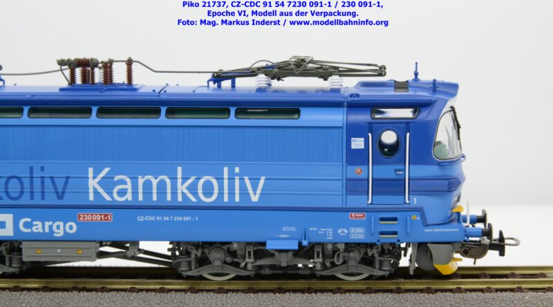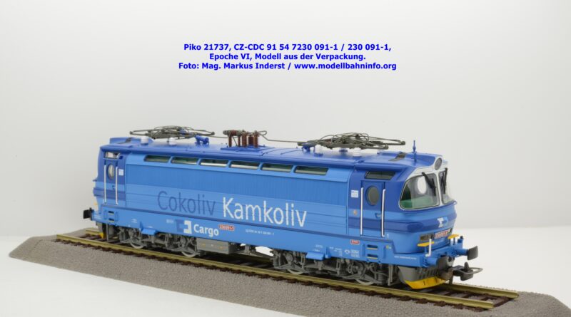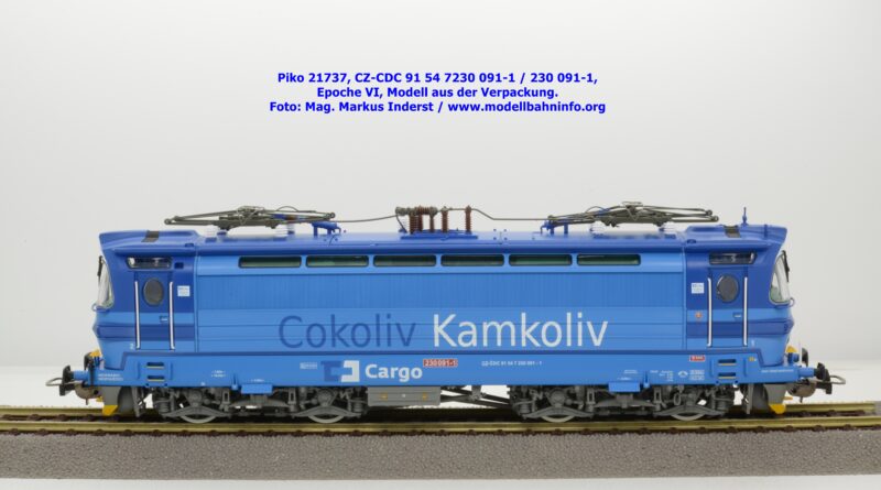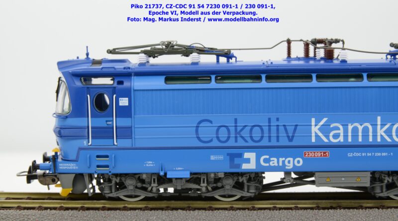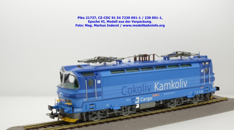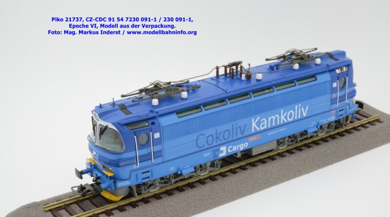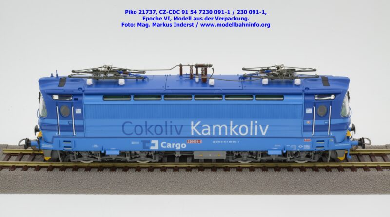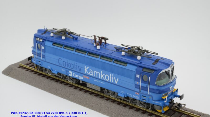 Die Herbstneuheiten bringen zwei weitere Varianten der Laminatka auf den Markt, wobei dieses Modell schon zuvor in der Baugröße TT zuerst erschienen ist. Mit diesem Modell erscheint eine weitere Vertreterin der Laminatka in blauer Farbgebung von CD Cargo, wobei sich das gegenständliche Modell von der vorigen Variante optisch schon unterscheidet. Die Firmenanschrift CD Cargo ist auf den Fahrzeugrahmen gewandert, am Lokkasten ist nun der Schriftzug „Cokoliv Kamkoliv“ in dunkelblauer/weißer Farbe zu lesen. Was damit zum Ausdruck gebracht werden will, ist unbekannt. Die Lok befindet sich im Erscheinungsbild der Epoche VI. Sie ist weiterhin mit der alten CD-Nummer 230 091-1 und der NVR-Nummer CZ-CDC 91 54 7230 091-1 bedruckt. Sie ist beim Depot Ceské Budéjovice beheimatet. Die letzten Untersuchungsdaten werden mit REV SP 15.09.07 bzw. Vázano SP 14.09.07 angegeben. Das Modell ist in drei Ausführungen erhältlich. Unter der oben angeführten Artikelnummer ist zum UVP von € 269,– die analoge Zweileiter-Gleichstromausführung verfügbar. Die digitale Ausführung für das Zweileiter-Gleichstromsystem weist die Artikelnummer 21738 und den UVP von € 379,– auf. Das Dreileiter-Wechselstrom-Modell wird unter der Artikelnummer 21739 geführt.