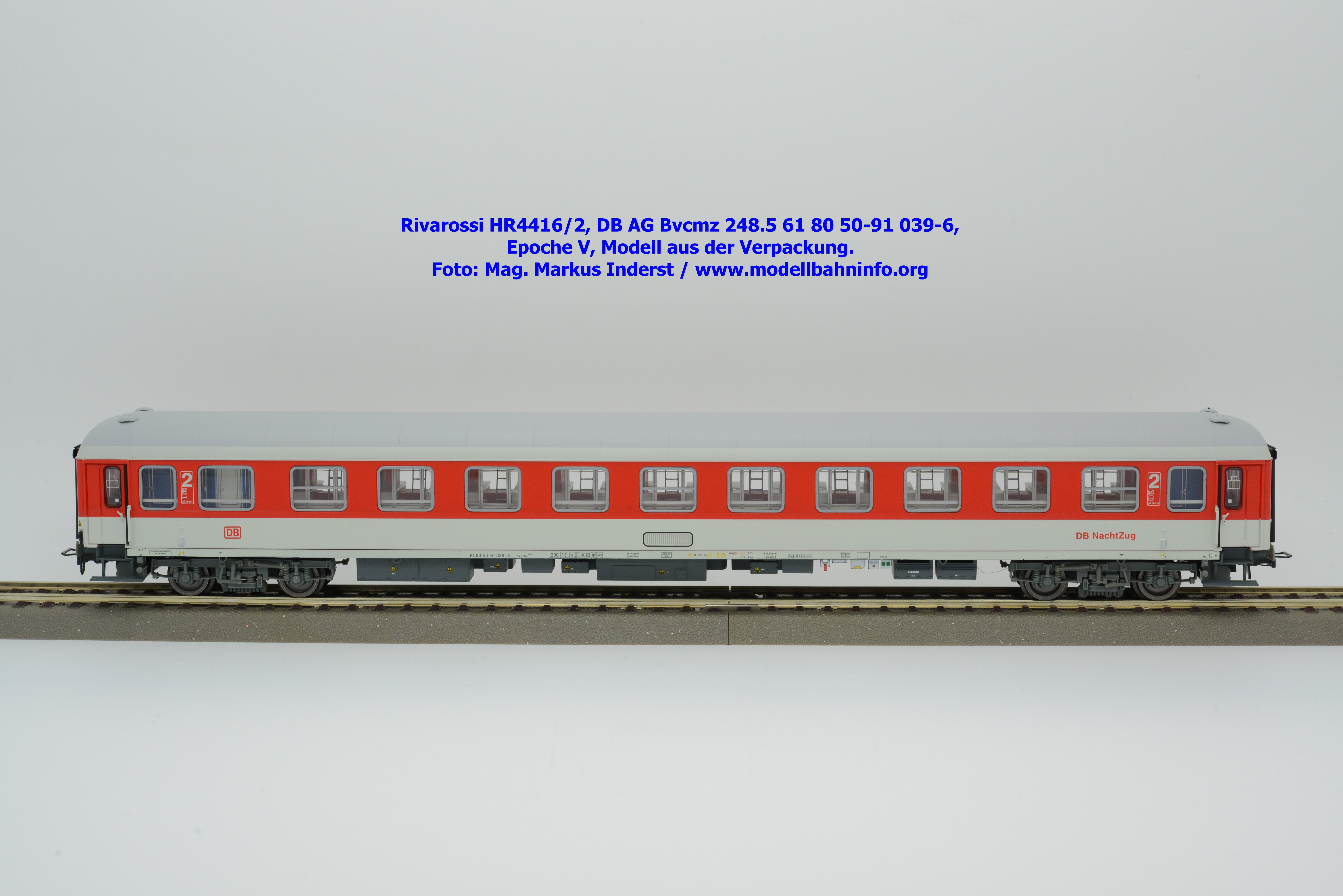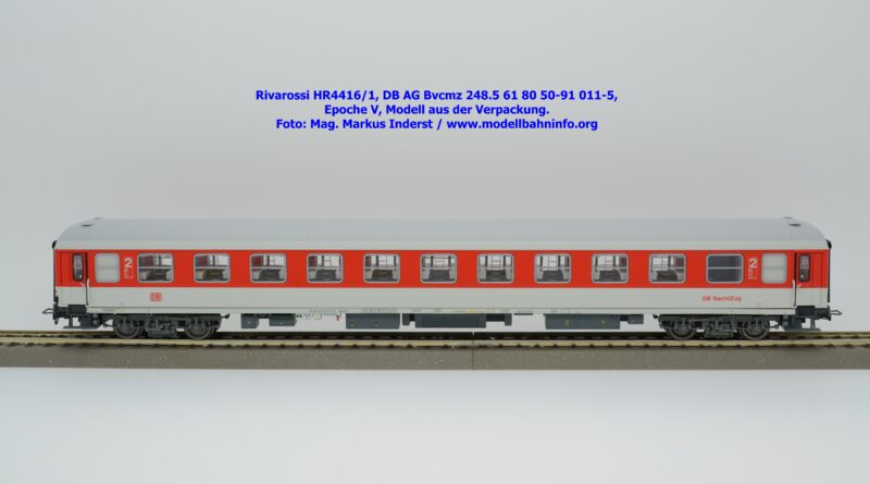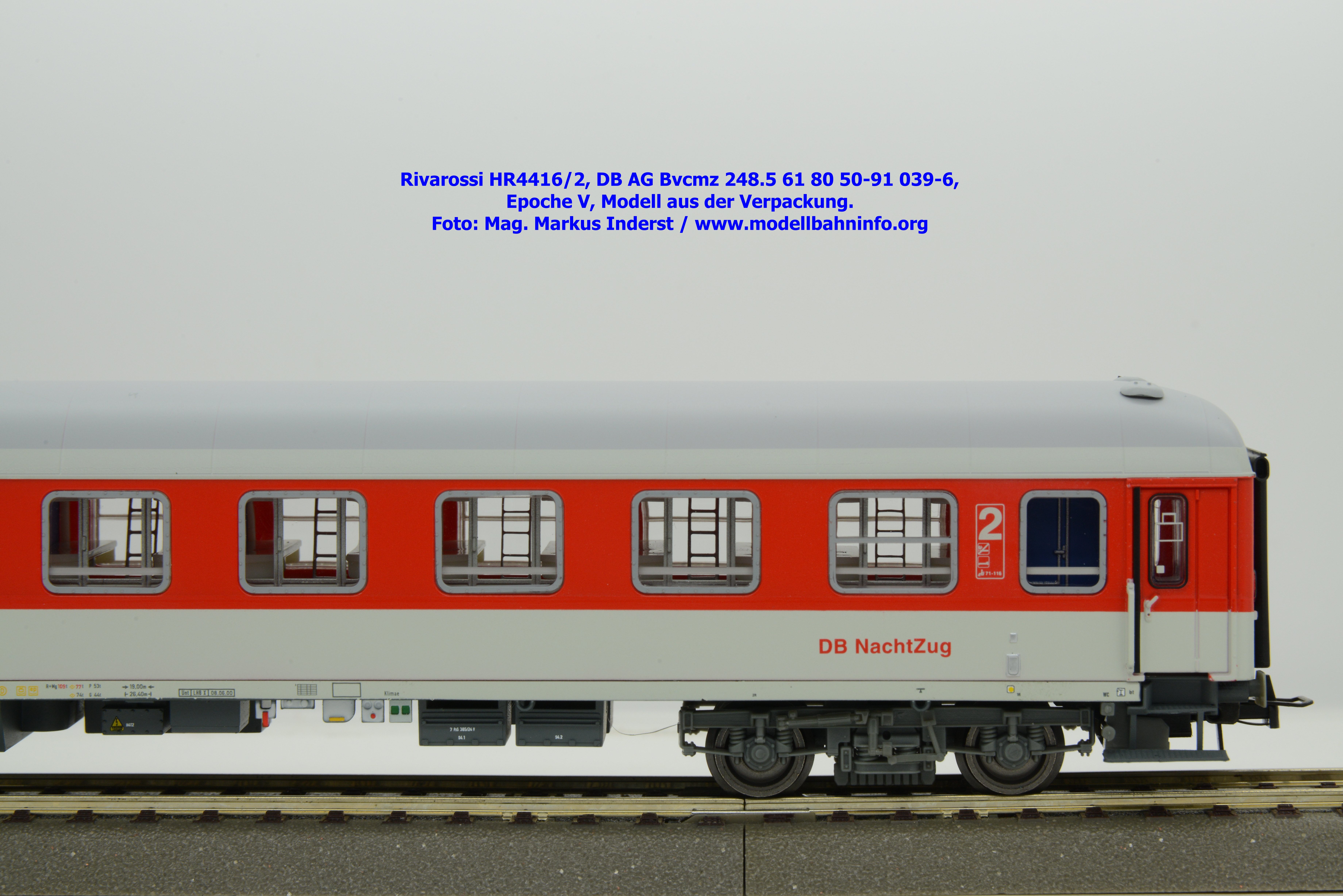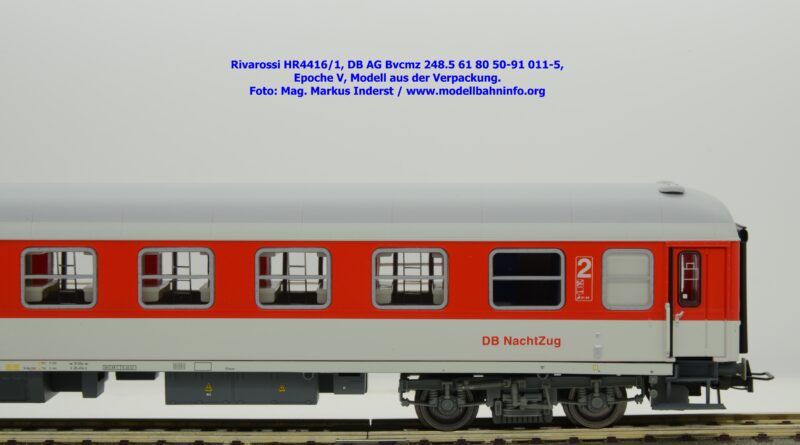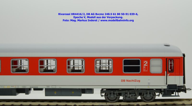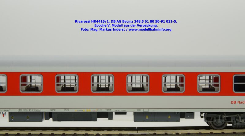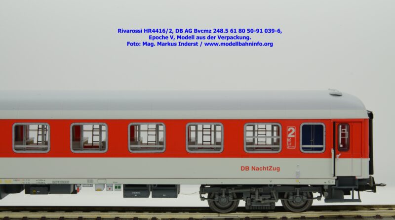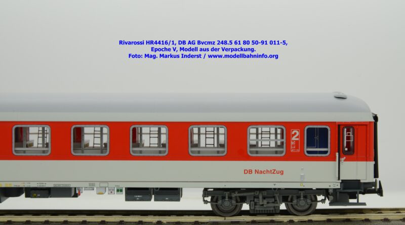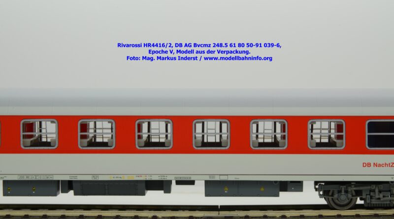 Die DB AG hat aus den früheren Liegewagen der Bauart Bcom 243 eine modernisierte Variante für neue Verkehre mit der neuen Gattungsbezeichnung Bvcmz 248.5 geschaffen. Diese Liegewagen standen sowohl im Verkehr bei CityNightLine (CNL) als auch bei DB Nachtzug im Einsatz, letztere hatten eine lichtgraue Farbgebung mit verkehrsrotem Fensterband. Rivarossi hat im Zuge dieser Modellumsetzung auch die Folgeverwendung beim Vorbild ins Modell umgesetzt und dabei ein Zweierset in den Neuheitenkatalog von 2025 aufgenommen. Die Modelle gelten als Neukonstruktion und reihen sich in die Epoche V ein. Der Blick in das Wageninnere offenbart auch die aufwendige Nachbildung der Inneneinrichtung, wobei in jedem Abteil die aufgestellten Leitern zu stehen sind. Der UVP für das Set beträgt € 166,90.