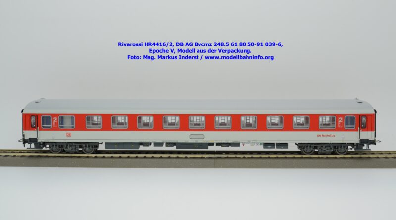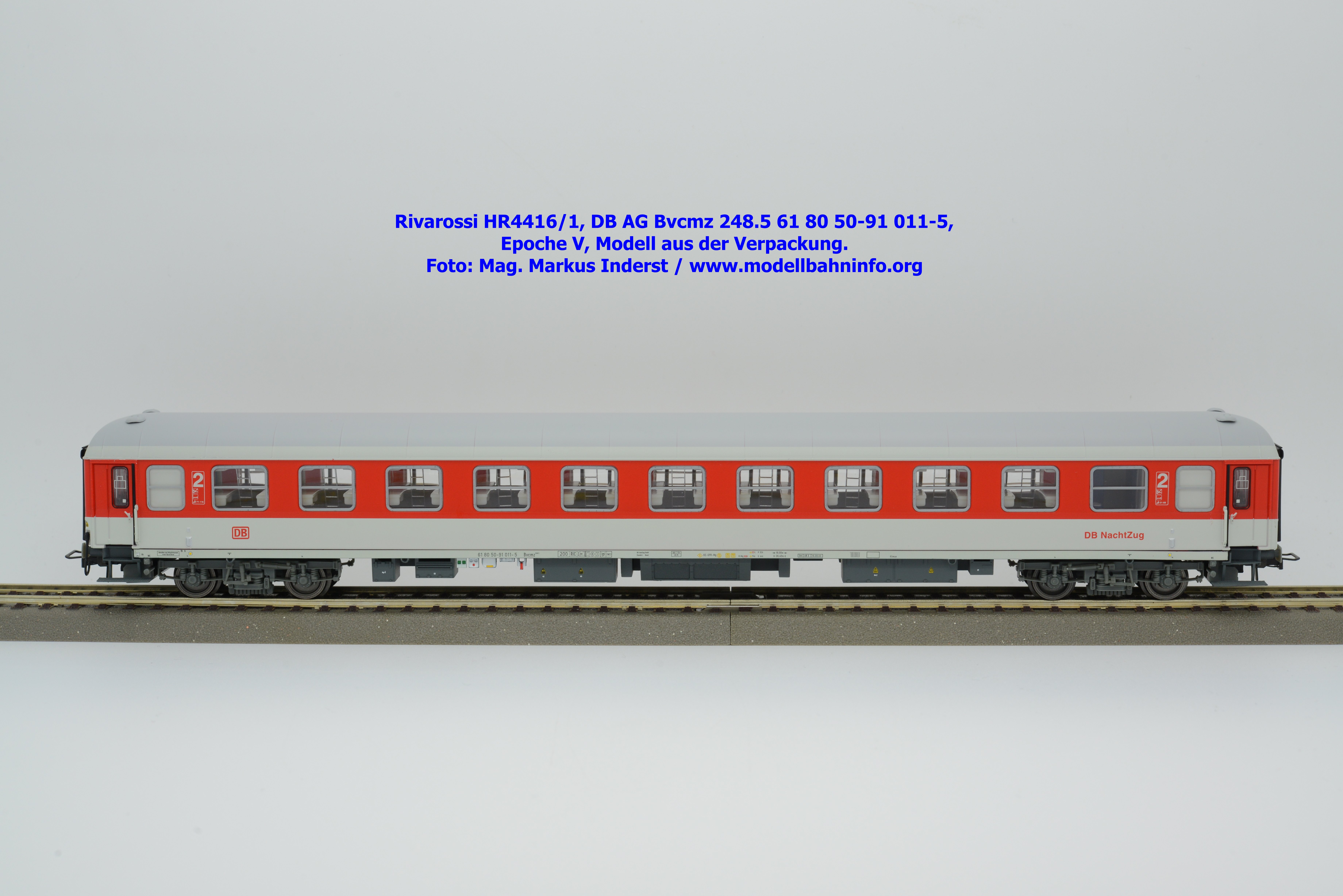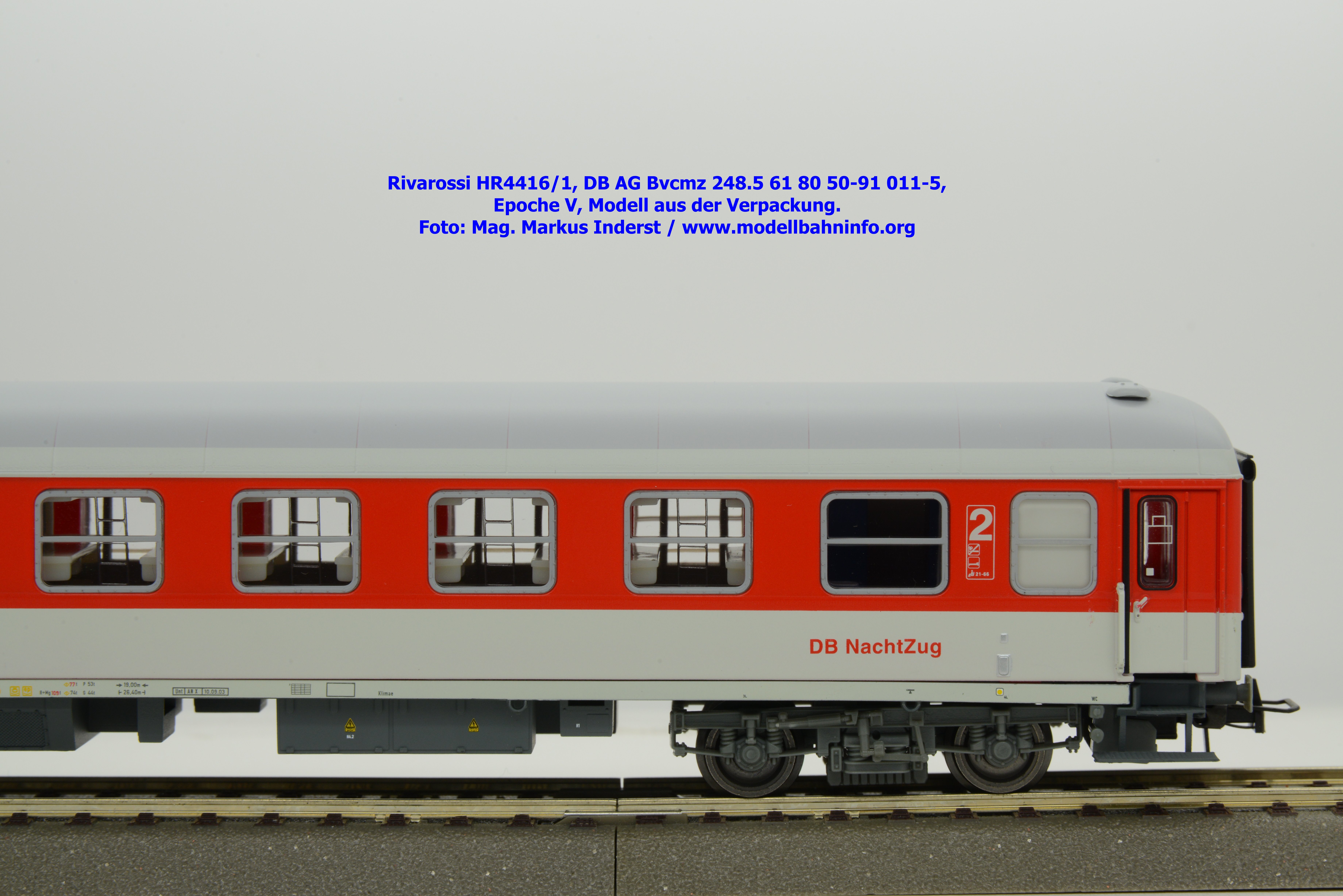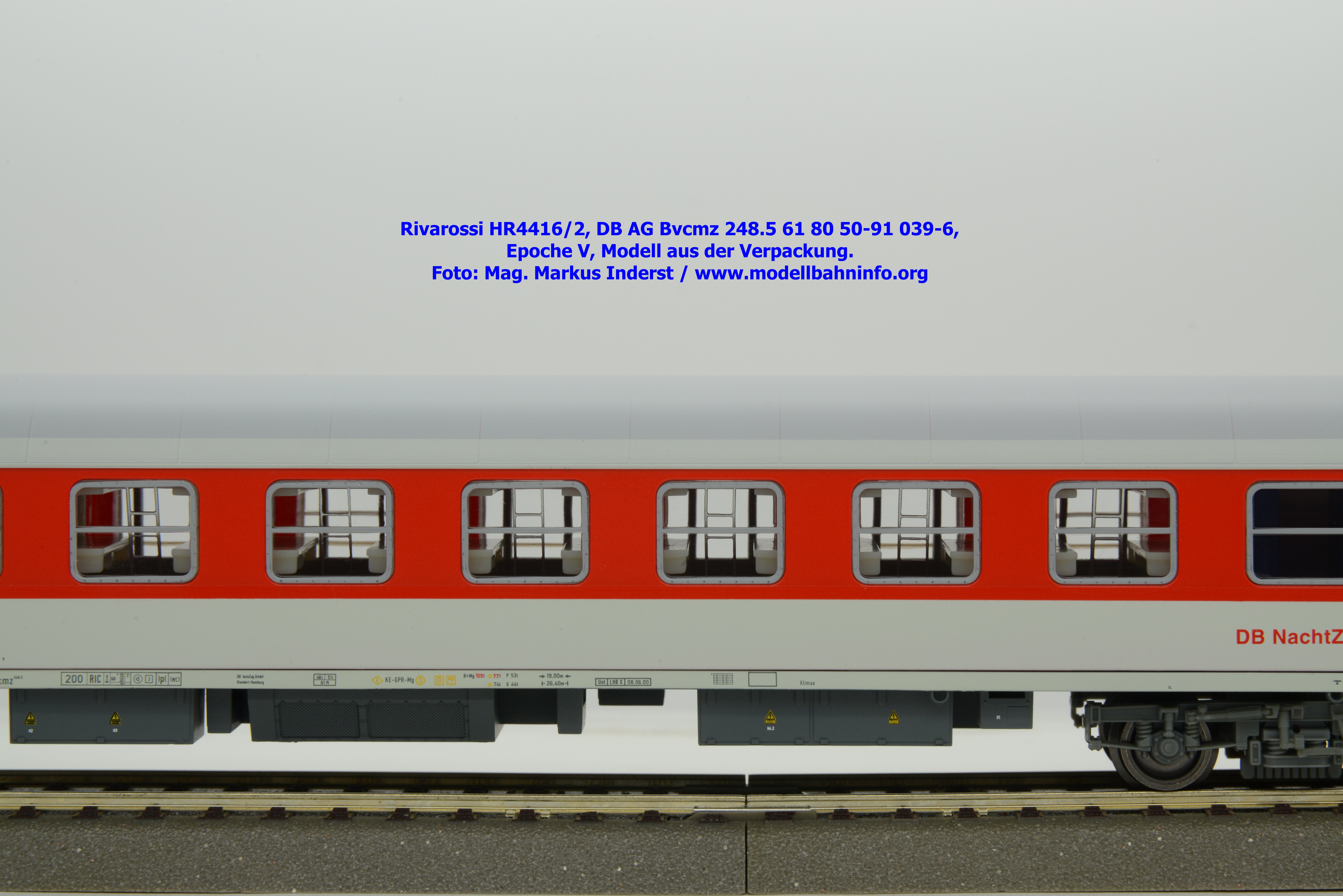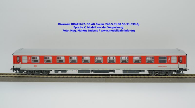 Die DB AG hat aus den früheren Liegewagen der Bauart Bcom 243 eine modernisierte Variante für neue Verkehre mit der neuen Gattungsbezeichnung Bvcmz 248.5 geschaffen. Diese Liegewagen standen sowohl im Verkehr bei CityNightLine (CNL) als auch bei DB Nachtzug im Einsatz, letztere hatten eine lichtgraue Farbgebung mit verkehrsrotem Fensterband. Rivarossi hat im Zuge dieser Modellumsetzung auch die Folgeverwendung beim Vorbild ins Modell umgesetzt und dabei ein Zweierset in den Neuheitenkatalog von 2025 aufgenommen. Die Modelle gelten als Neukonstruktion und reihen sich in die Epoche V ein. Der Blick in das Wageninnere offenbart auch die aufwendige Nachbildung der Inneneinrichtung, wobei in jedem Abteil die aufgestellten Leitern zu stehen sind. Der UVP für das Set beträgt € 166,90.