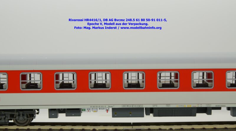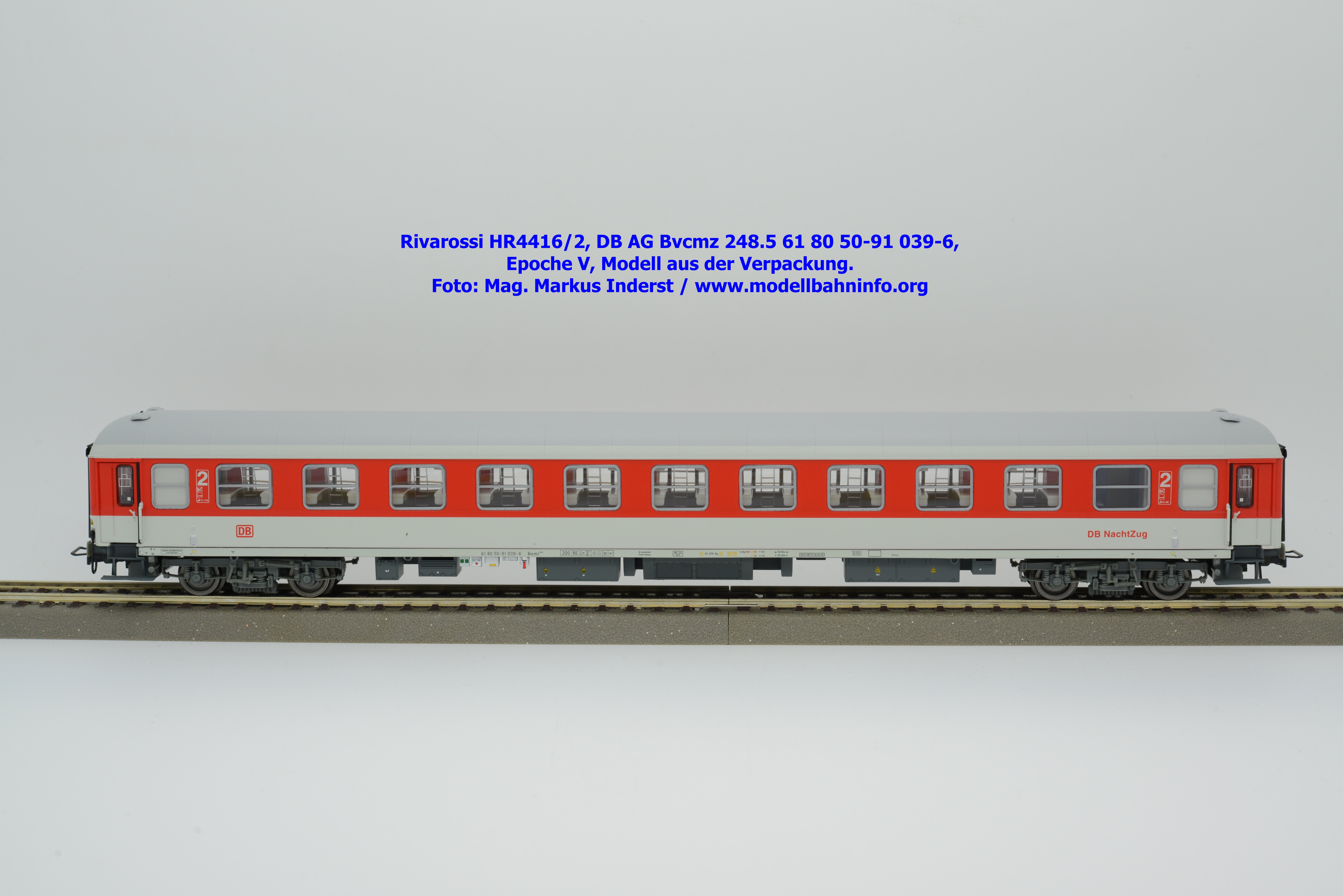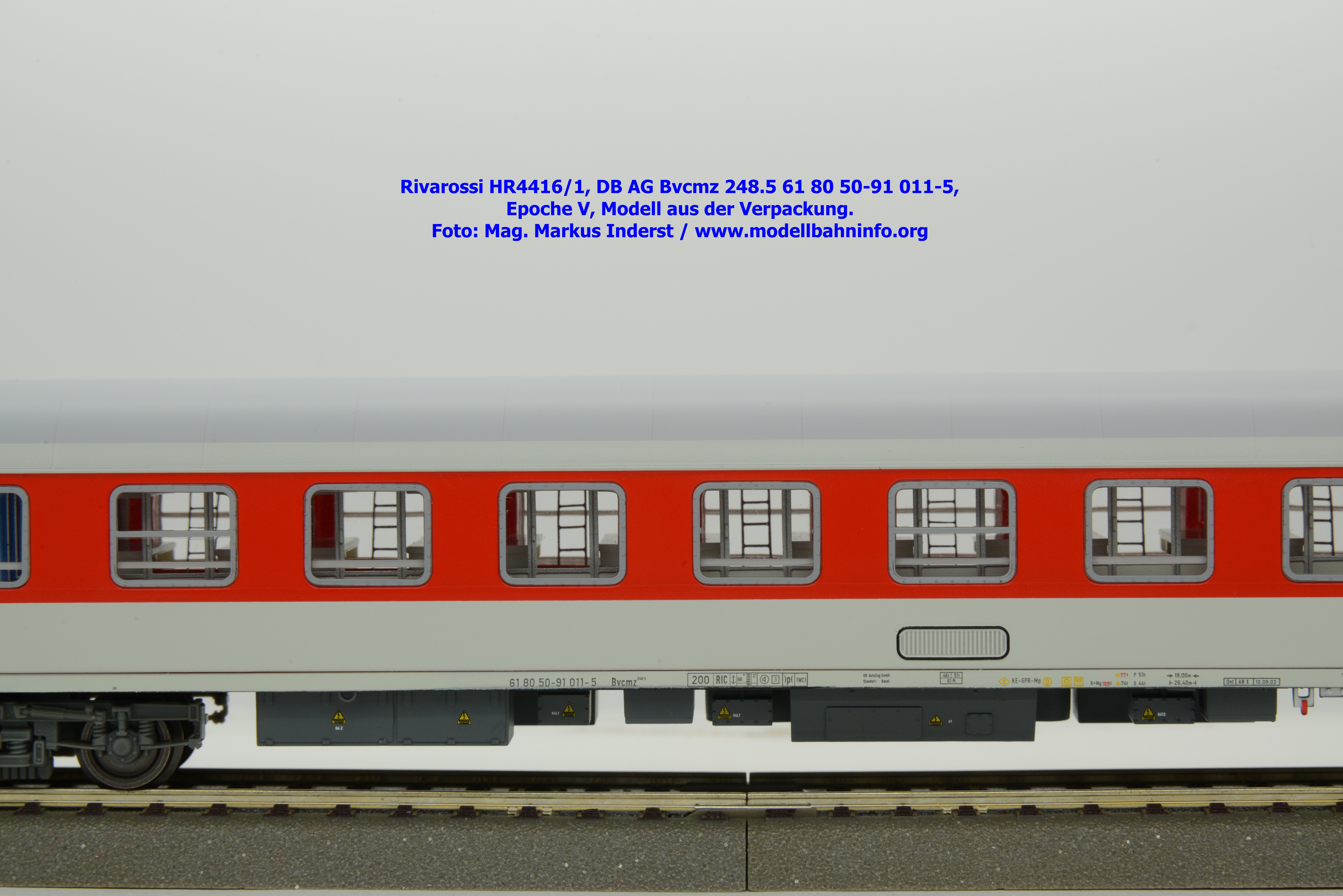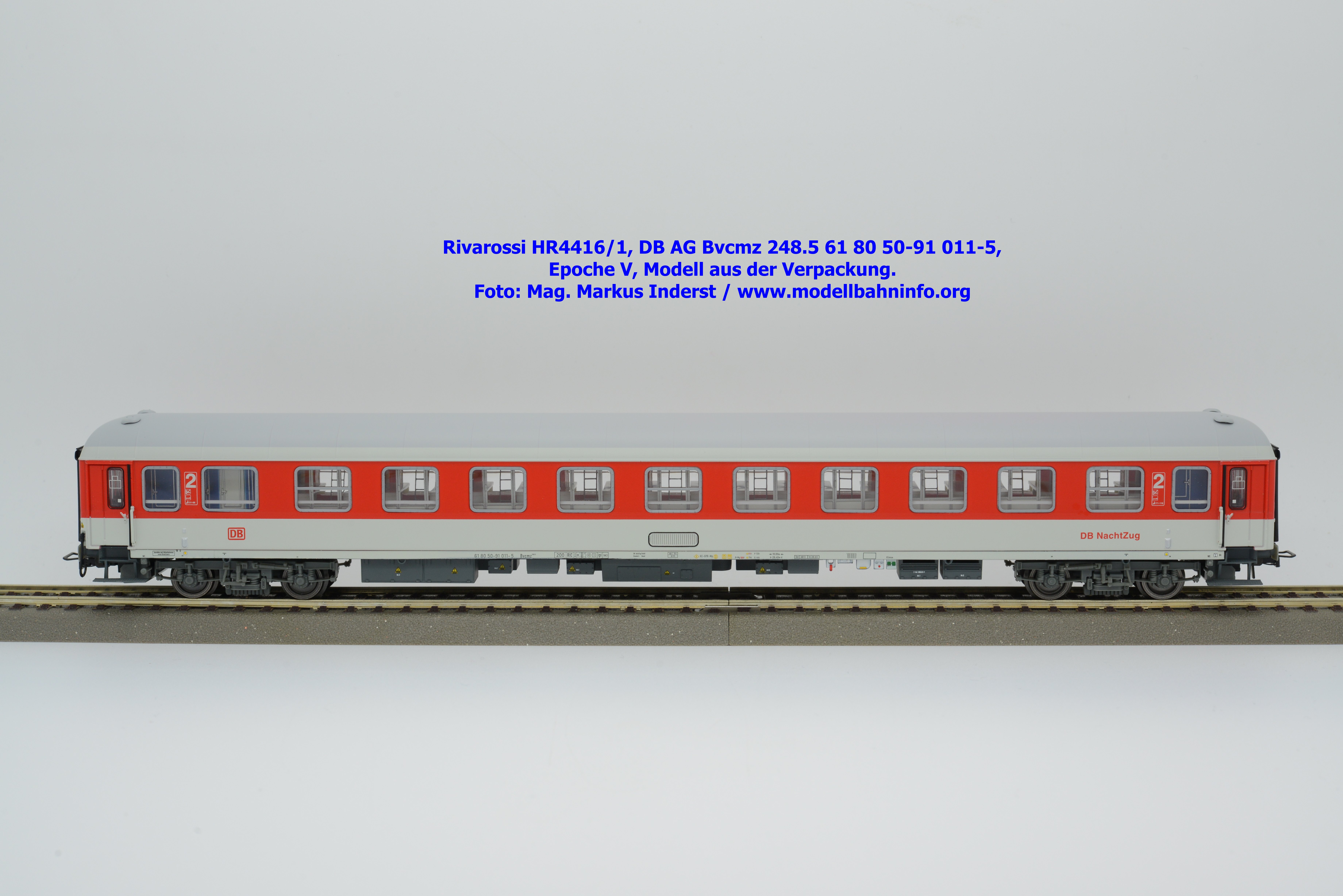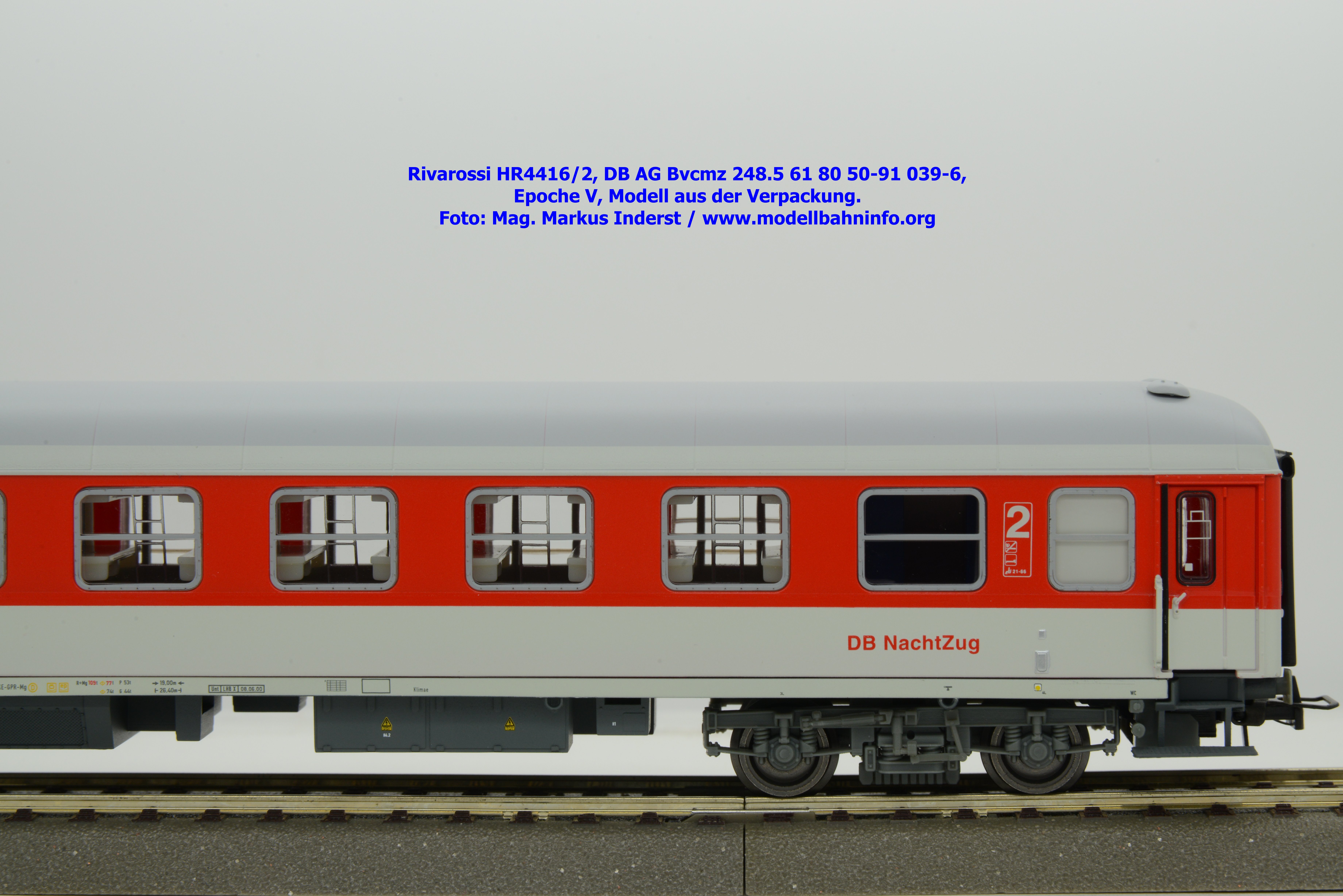 Die DB AG hat aus den früheren Liegewagen der Bauart Bcom 243 eine modernisierte Variante für neue Verkehre mit der neuen Gattungsbezeichnung Bvcmz 248.5 geschaffen. Diese Liegewagen standen sowohl im Verkehr bei CityNightLine (CNL) als auch bei DB Nachtzug im Einsatz, letztere hatten eine lichtgraue Farbgebung mit verkehrsrotem Fensterband. Rivarossi hat im Zuge dieser Modellumsetzung auch die Folgeverwendung beim Vorbild ins Modell umgesetzt und dabei ein Zweierset in den Neuheitenkatalog von 2025 aufgenommen. Die Modelle gelten als Neukonstruktion und reihen sich in die Epoche V ein. Der Blick in das Wageninnere offenbart auch die aufwendige Nachbildung der Inneneinrichtung, wobei in jedem Abteil die aufgestellten Leitern zu stehen sind. Der UVP für das Set beträgt € 166,90.