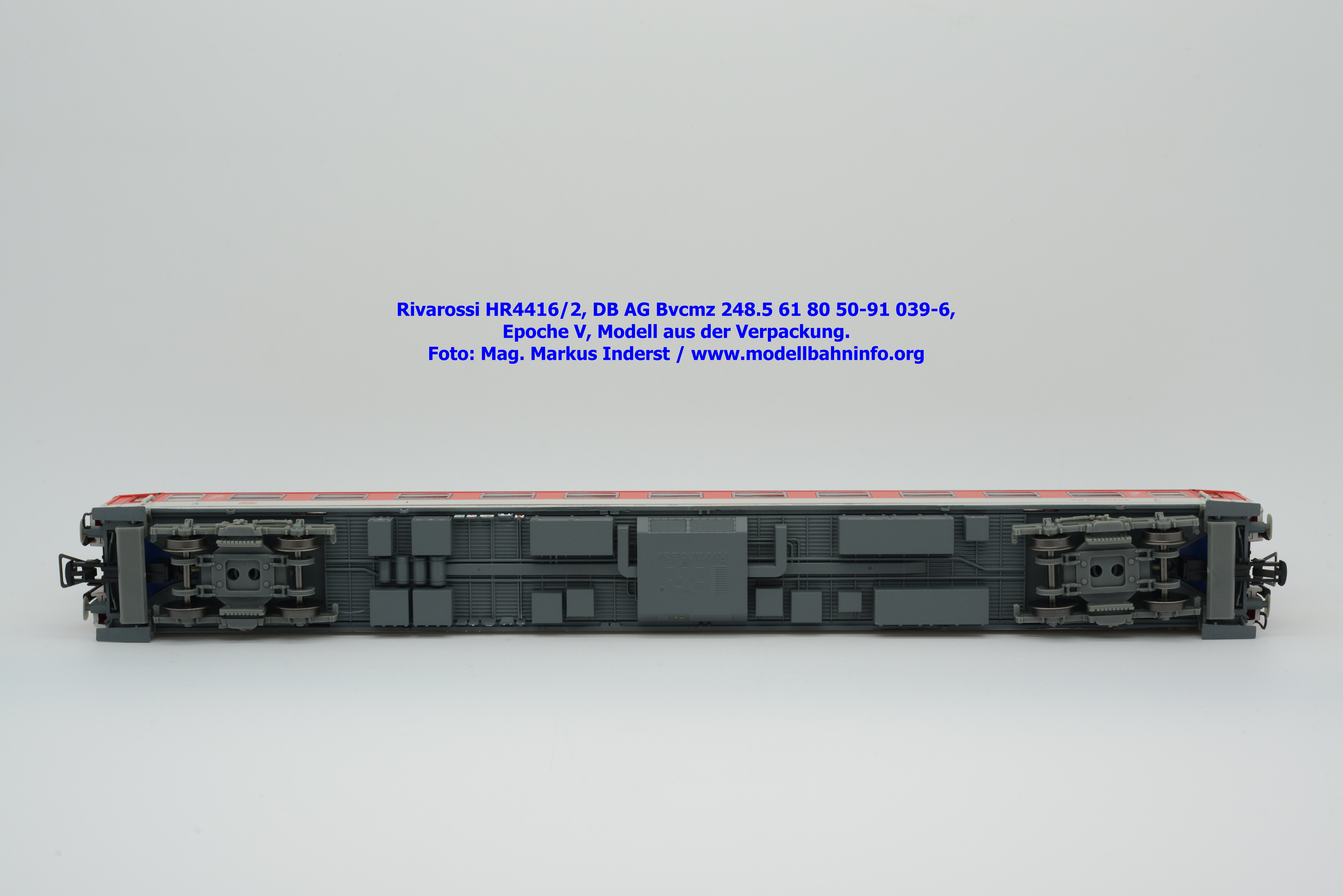 Das ansonsten glatte Dach wird durch Schweißnähte unterbrochen, die etwas überdimensioniert wirken. Über jedem Abteil ist ein Lüfter der Bauart Kuckuck erhaben dargestellt, jedoch wurden diese an der falschen Position platziert. Diese haben ihren korrekten Platz am Dachscheitel. Der Wagenboden ist mit einer vollständig nachgebildeten Bremsanlage versehen. Bei den Drehgestellen kam die Bauart Minden-Deutz zur Ausführung. Diese sind in den Wagenboden eingeklippst. Natürlich verfügt die Neukonstruktion über eine NEM-Kurzkupplungskulisse.